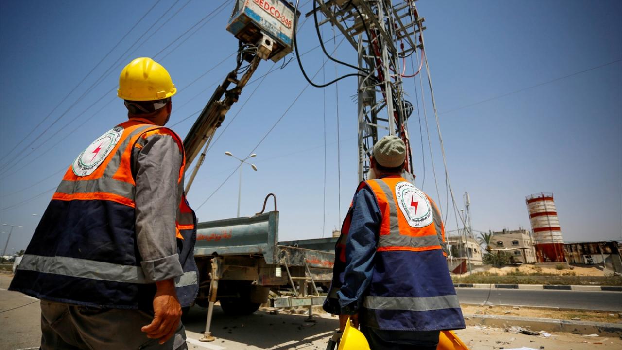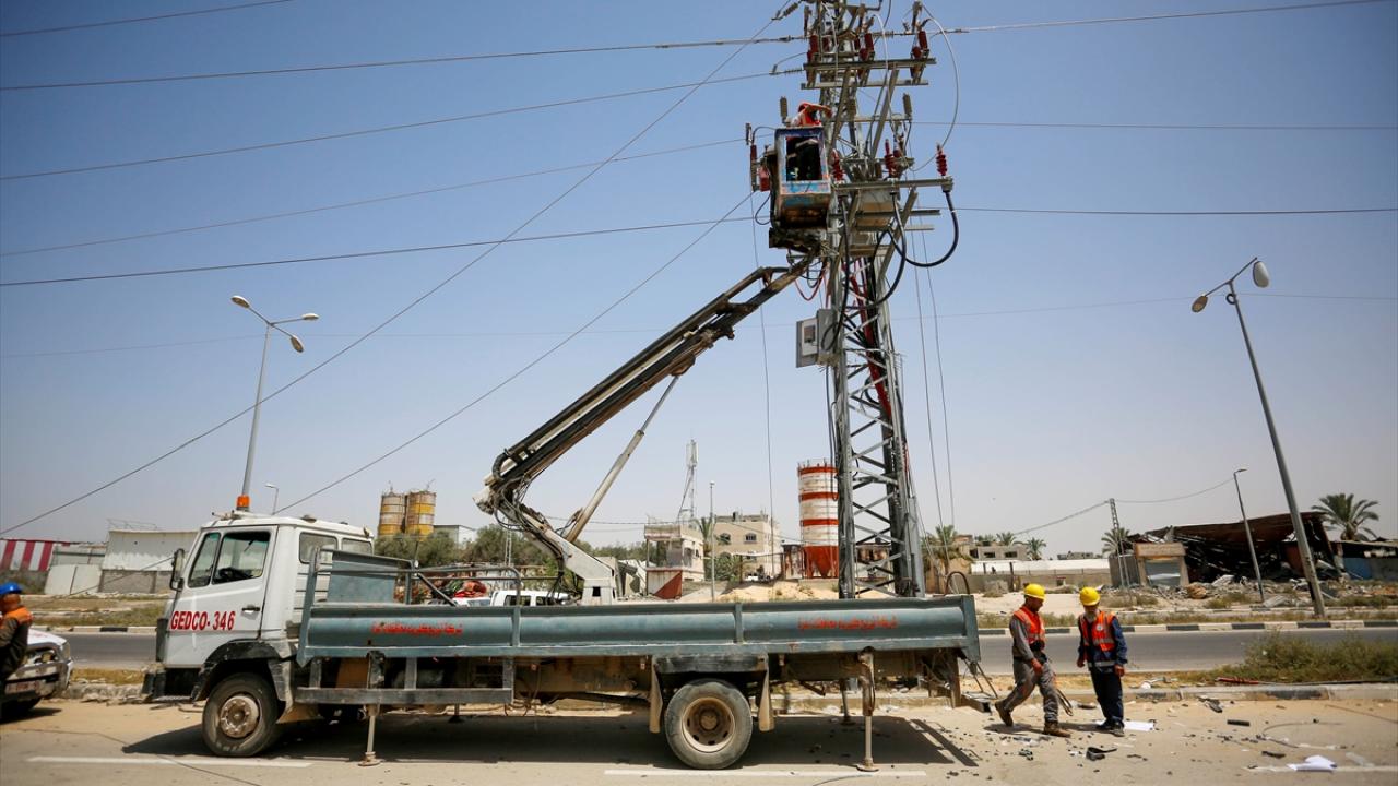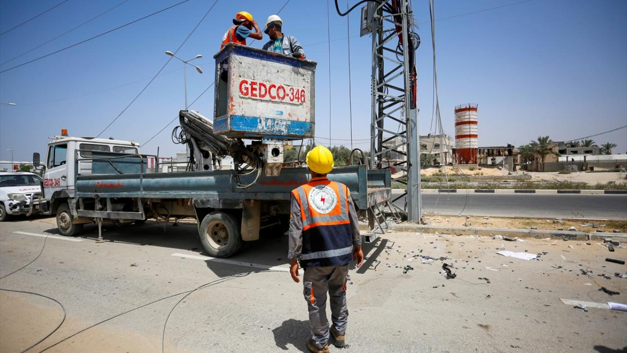 Görevliler, Deyr Balah kentindeki Salahaddin caddesinde hasar gören hatları onardı. Su arıtma istasyonları, İsrail`den sağlanacak enerji ile çalıştırılacak.