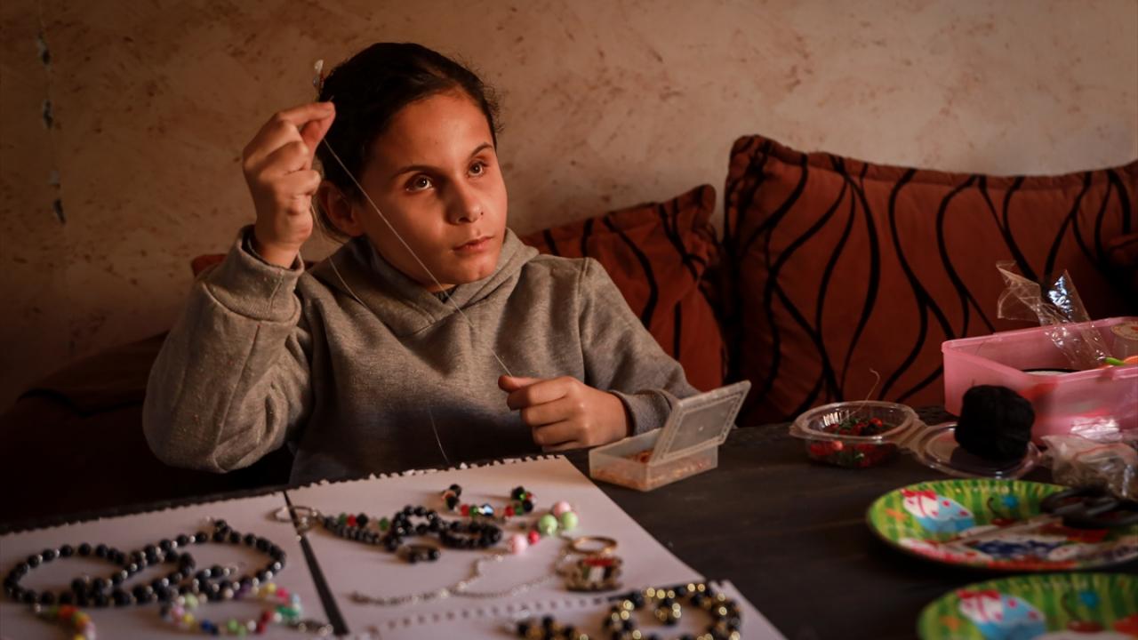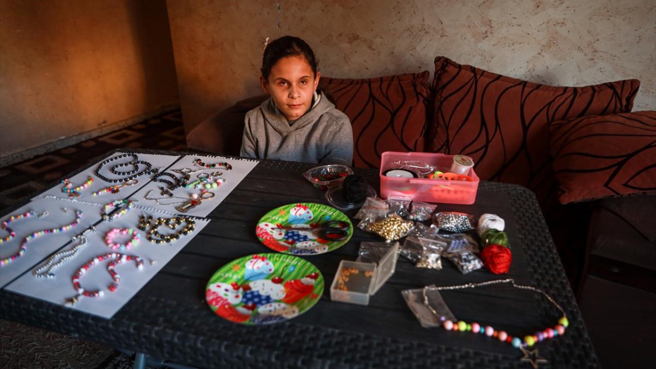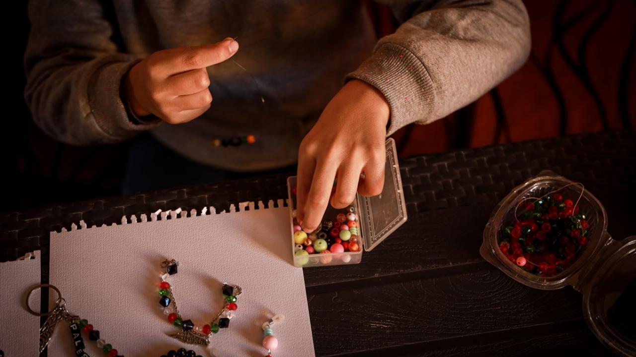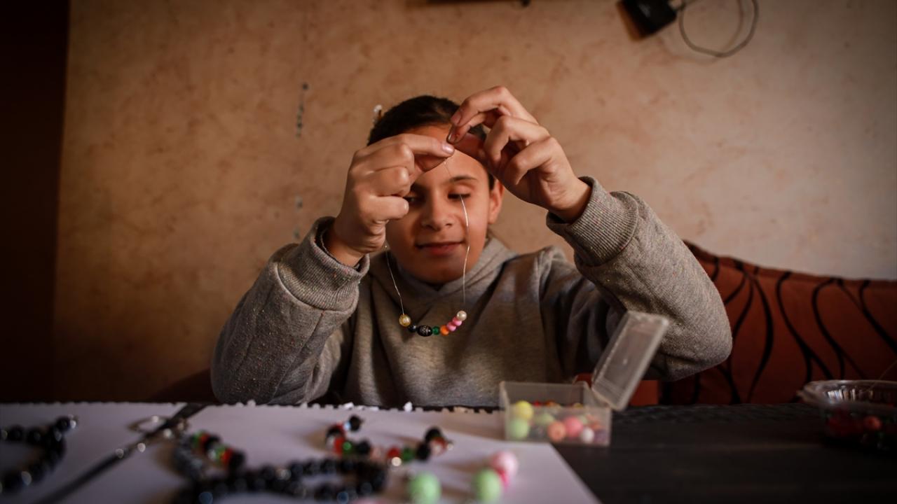 Gazze’de doğuştan görme engelli çocuk, boncuklardan yaptığı el işiyle umut buluyor