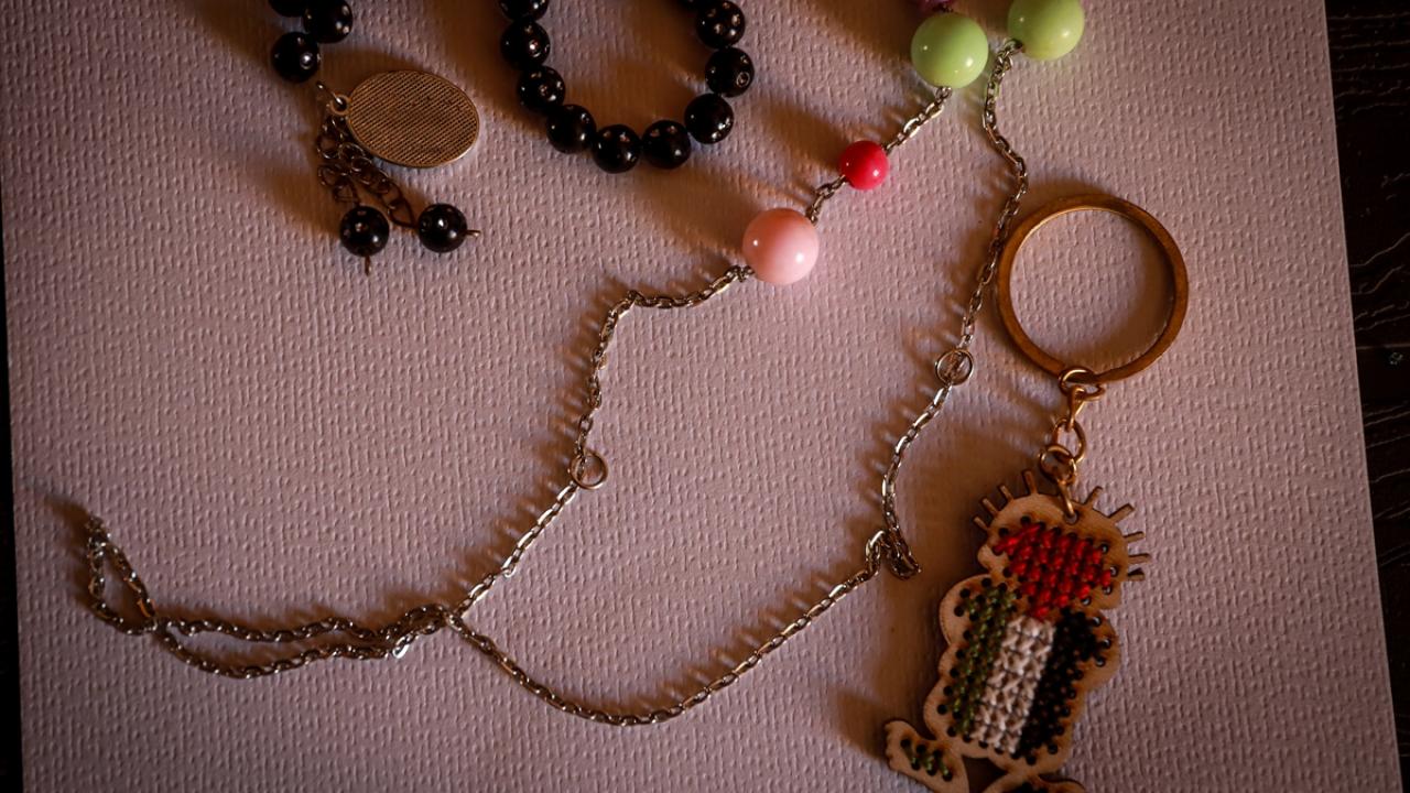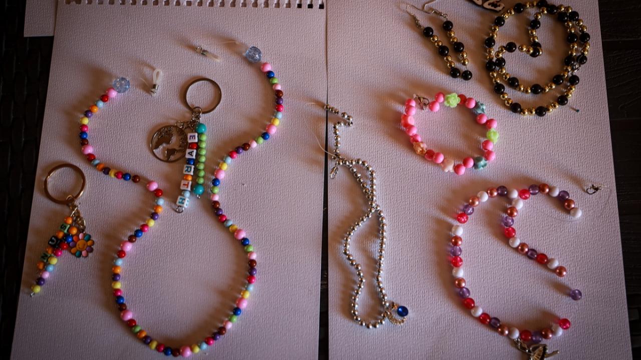 Savaşın yol açtığı zor koşullar altında boncuklardan aksesuarlar yaparak hem yeteneğini ortaya koyuyor hem de yaşadığı psikolojik baskılarla baş etmeye çalışıyor.