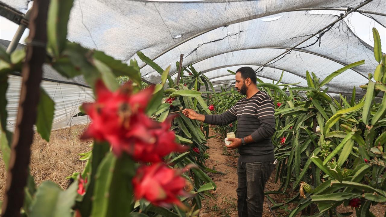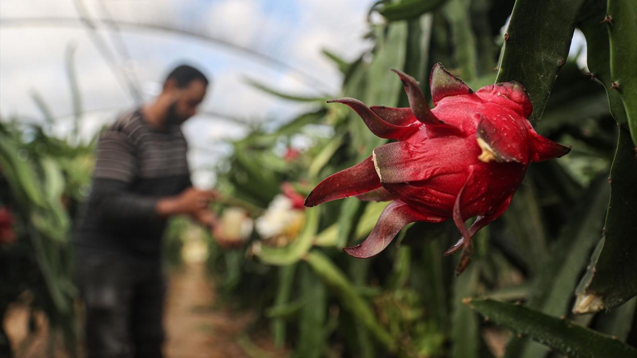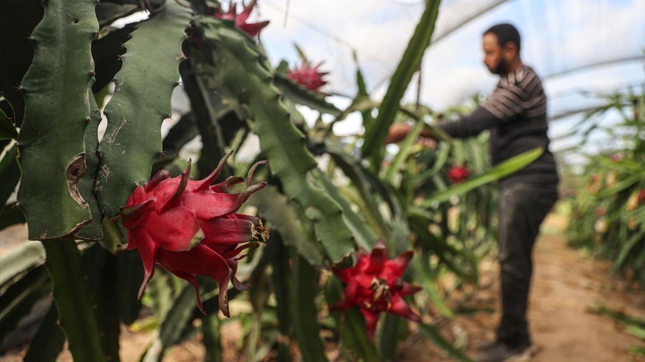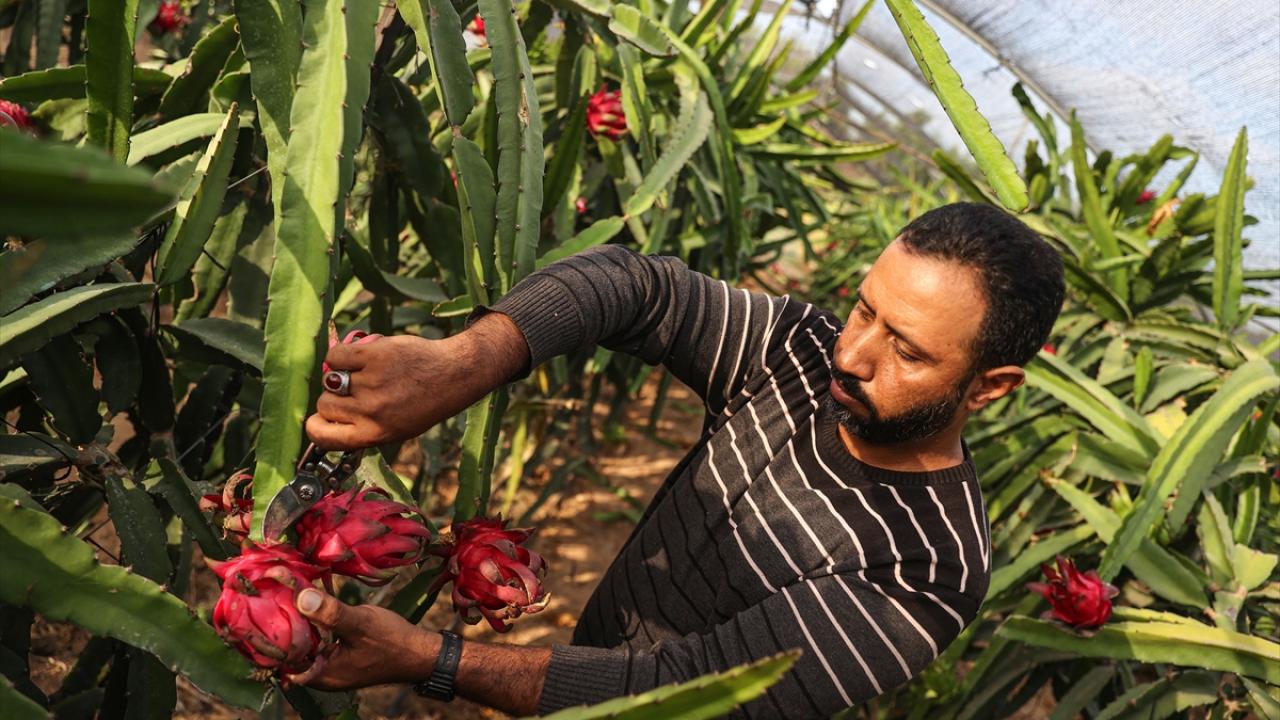 İsrail ablukası altındaki Gazze Şeridi'nin Beyt Hanun beldesindeki Filistinli çiftçiler, seralarda yetiştirdikleri tropikal ejder meyvesinin (pitaya) hasadına başladı.