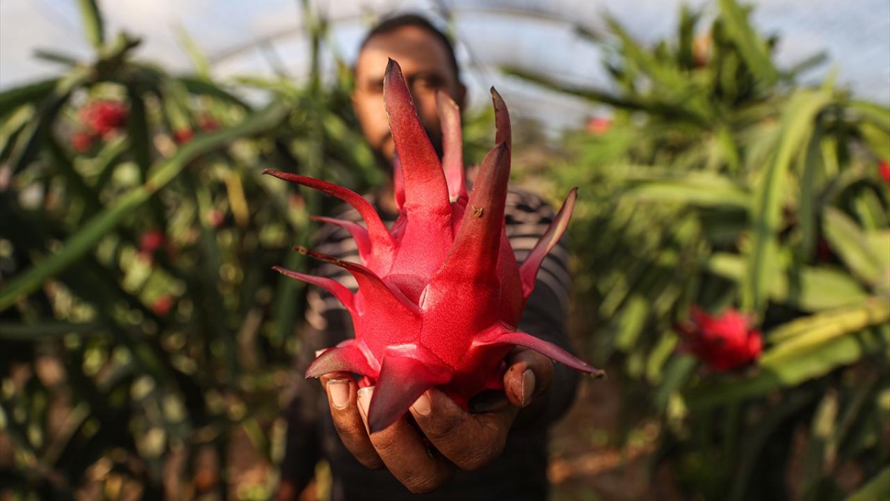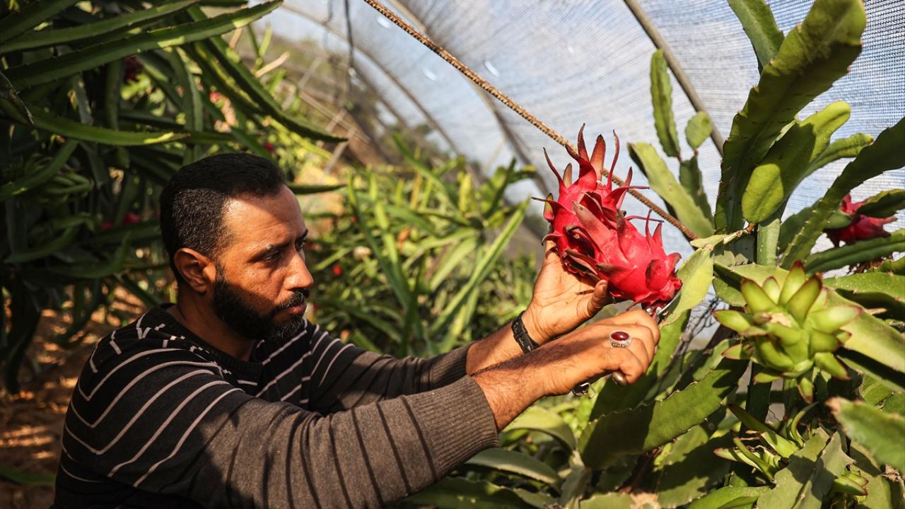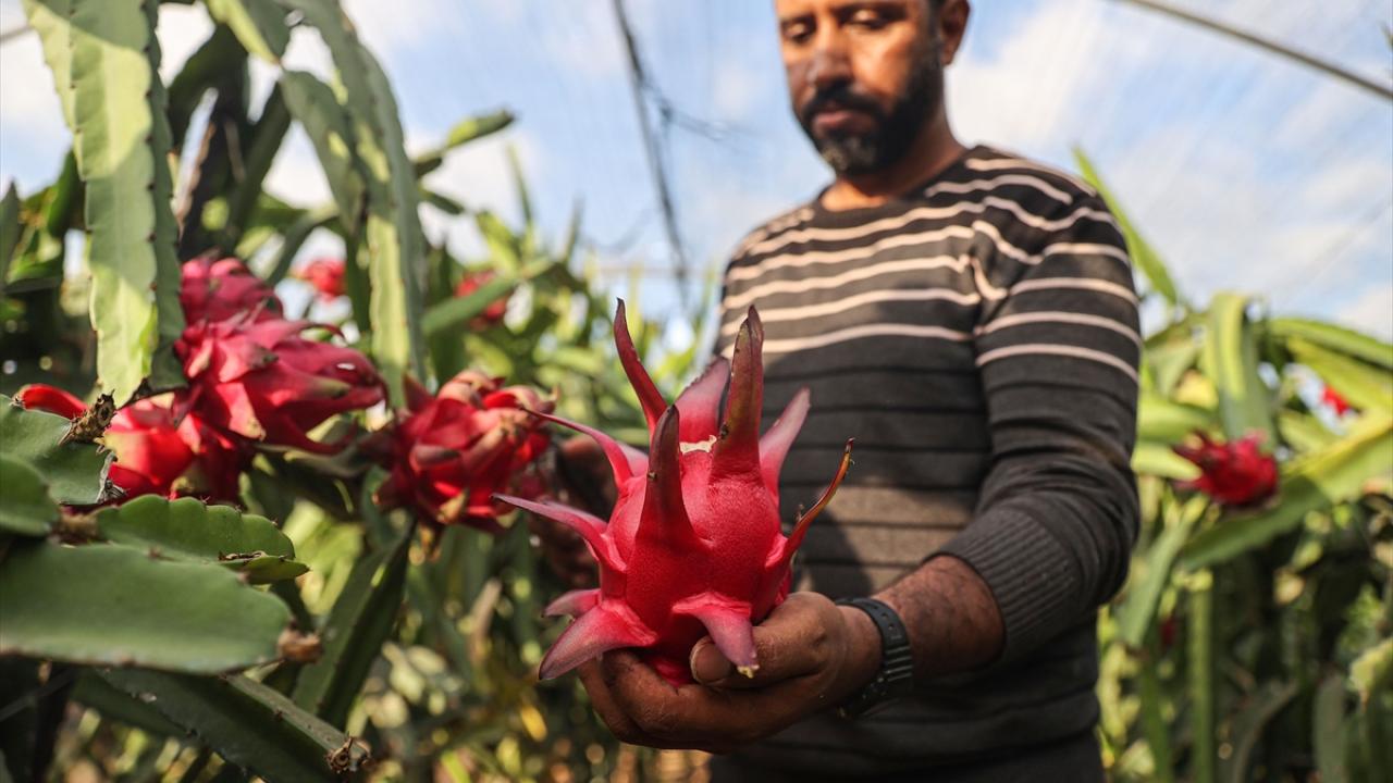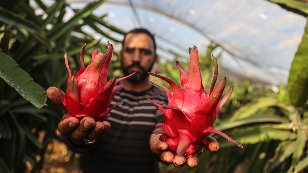 İsrail ablukası altındaki Gazze Şeridi'nin Beyt Hanun beldesindeki Filistinli çiftçiler, seralarda yetiştirdikleri tropikal ejder meyvesinin (pitaya) hasadına başladı.