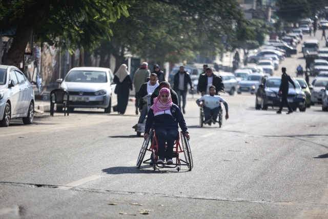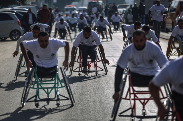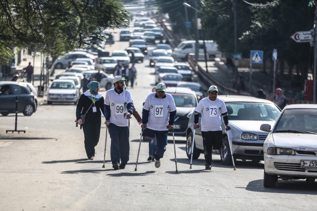 Dünya Engelliler Günü etkinlikleri kapsamında Gazze'deki Es-Saraya bölgesinde engelliler maratonu düzenlendi.