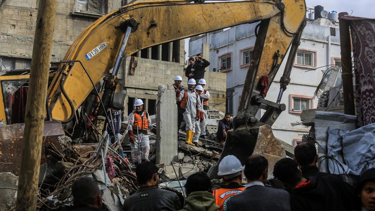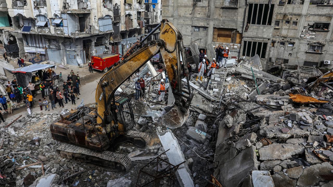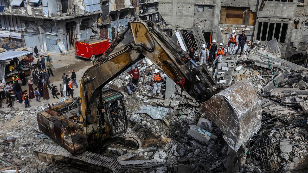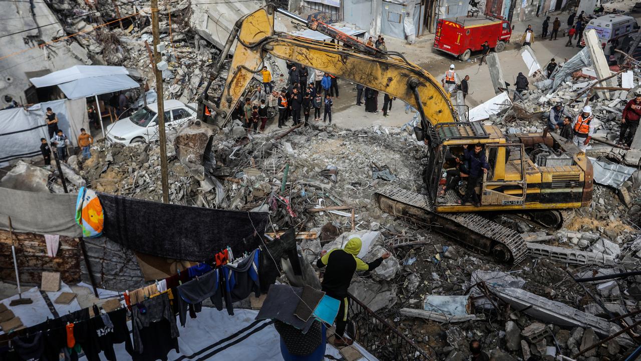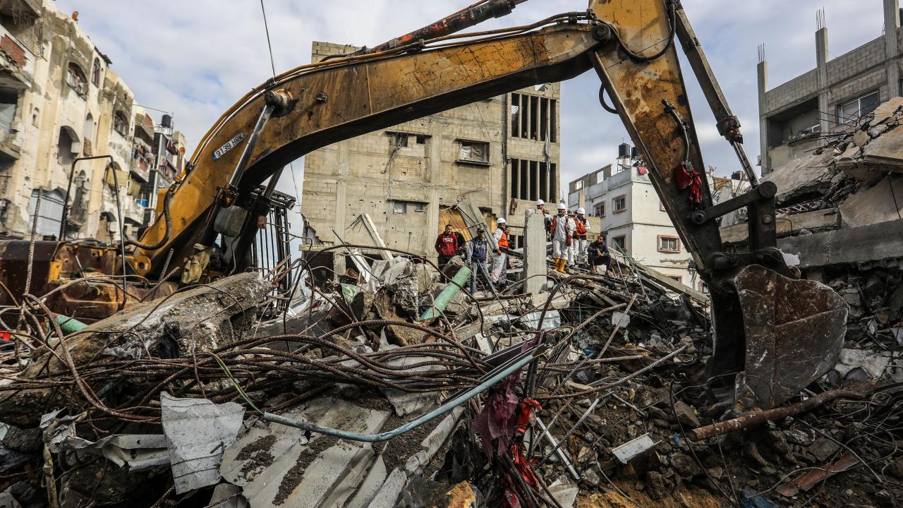 Gazze'deki sivil savunma ekipleri, Gazze Şeridi'nin Han Yunus kentindeki El-Emel Mahallesi’nde enkaz altındaki Filistinlilerin cenazelerini aramaya devam ediyor. İsrail saldırılarında yaşamını yitiren ve enkaz altında kalan cenazeler, sivil savunma ekipleri tarafından ağır iş makineleri kullanılarak aranıyor.