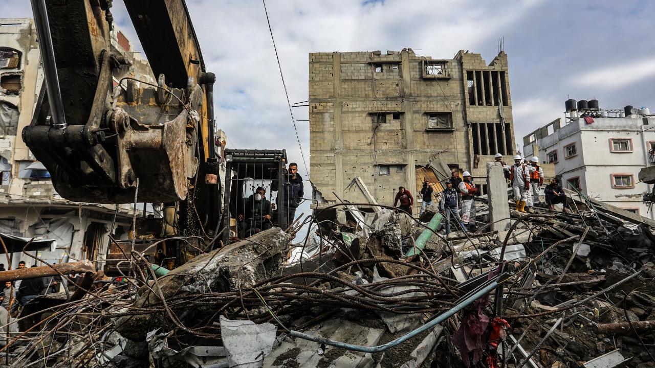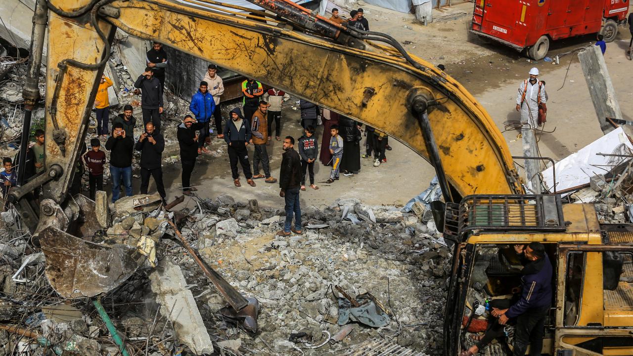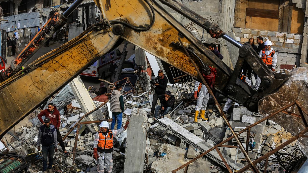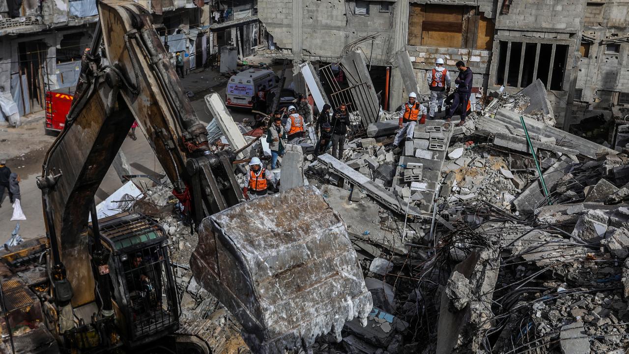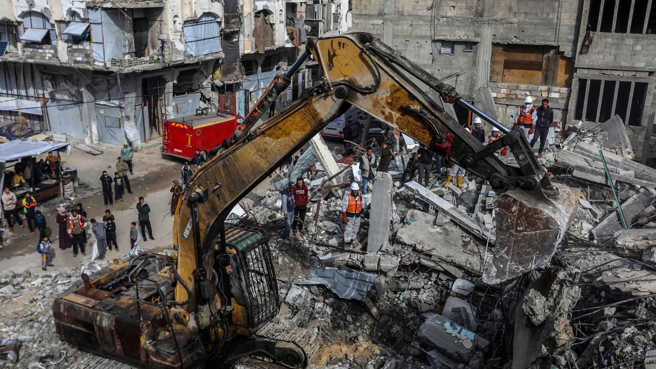 Gazze'deki sivil savunma ekipleri, Gazze Şeridi'nin Han Yunus kentindeki El-Emel Mahallesi’nde enkaz altındaki Filistinlilerin cenazelerini aramaya devam ediyor. İsrail saldırılarında yaşamını yitiren ve enkaz altında kalan cenazeler, sivil savunma ekipleri tarafından ağır iş makineleri kullanılarak aranıyor.