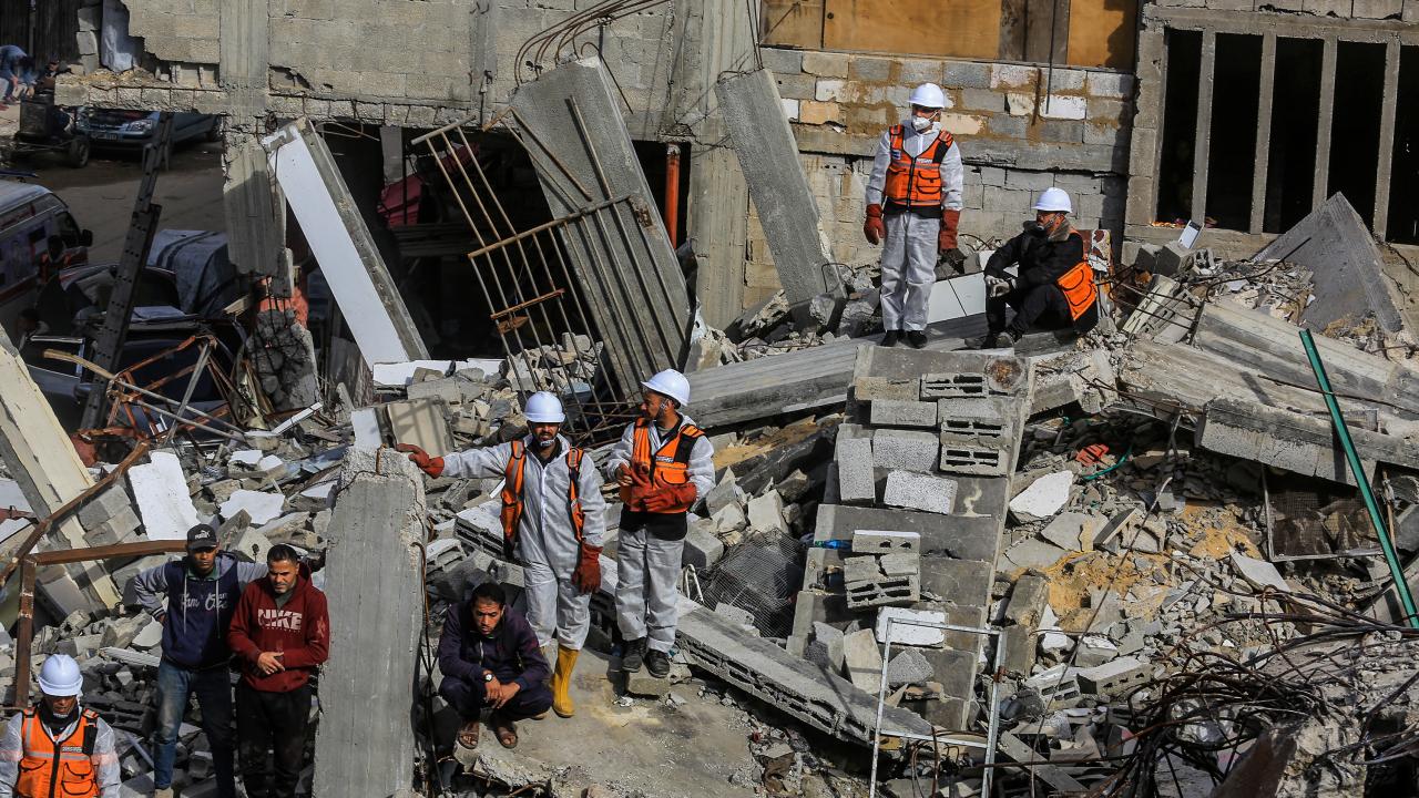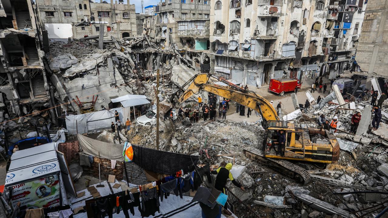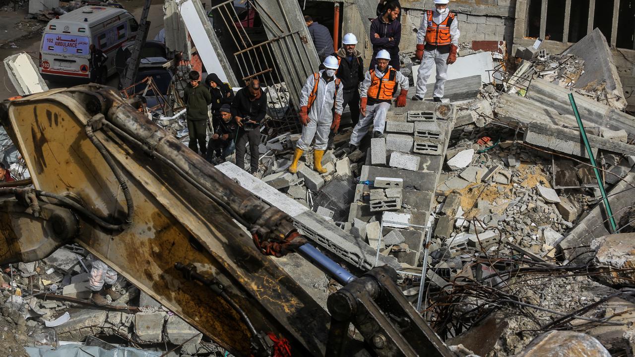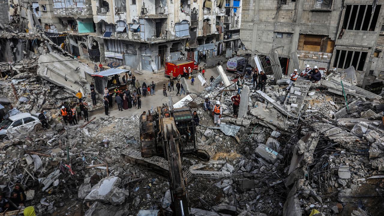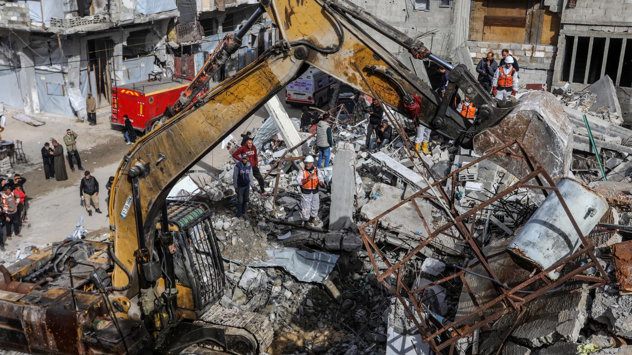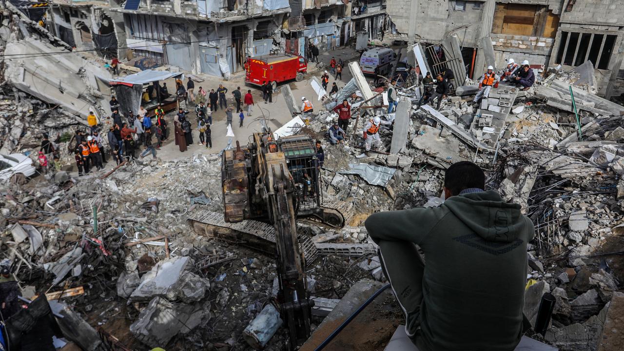 Gazze'deki sivil savunma ekipleri, Gazze Şeridi'nin Han Yunus kentindeki El-Emel Mahallesi’nde enkaz altındaki Filistinlilerin cenazelerini aramaya devam ediyor. İsrail saldırılarında yaşamını yitiren ve enkaz altında kalan cenazeler, sivil savunma ekipleri tarafından ağır iş makineleri kullanılarak aranıyor.