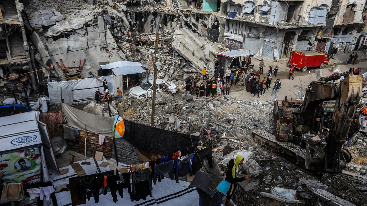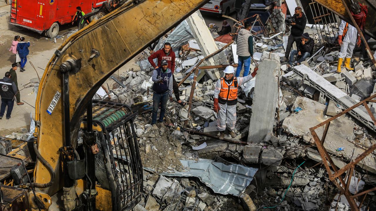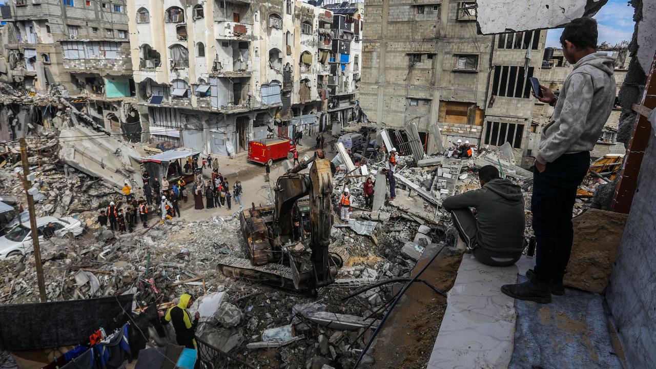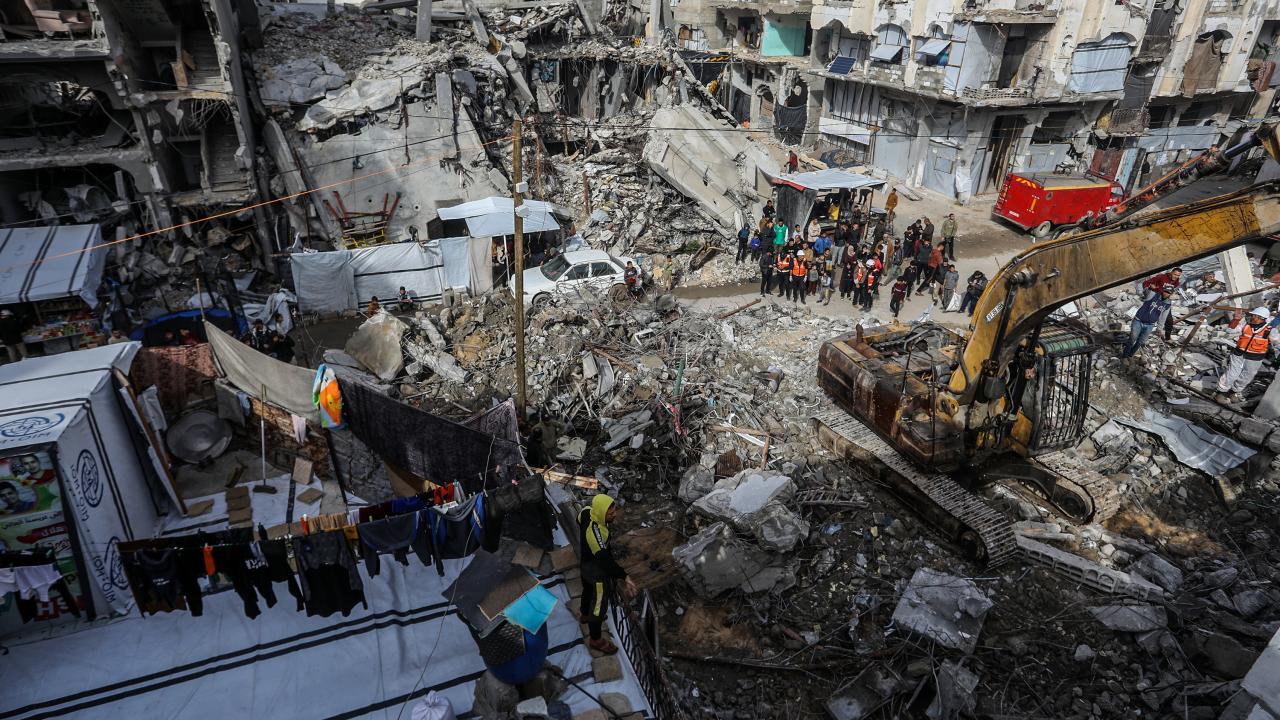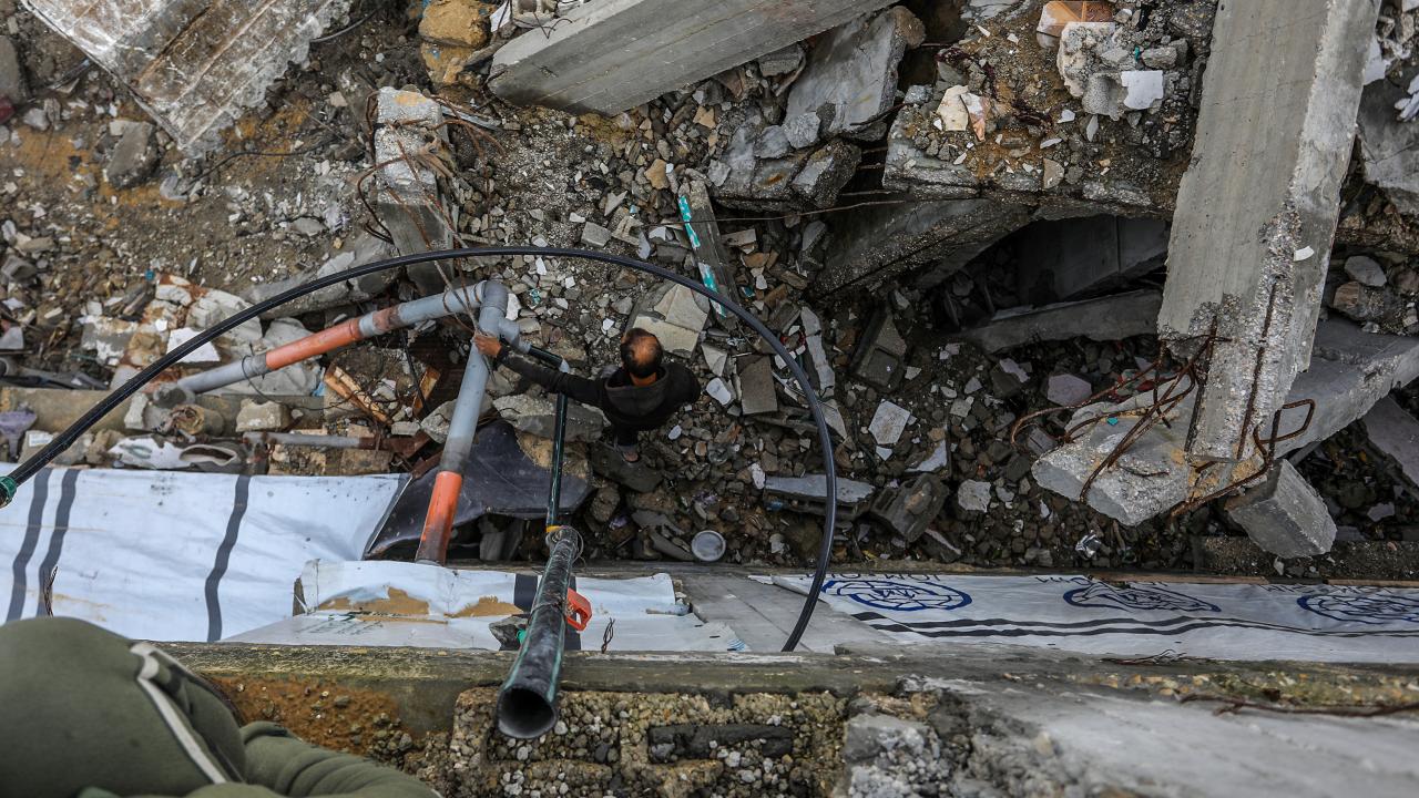 Gazze'deki sivil savunma ekipleri, Gazze Şeridi'nin Han Yunus kentindeki El-Emel Mahallesi’nde enkaz altındaki Filistinlilerin cenazelerini aramaya devam ediyor. İsrail saldırılarında yaşamını yitiren ve enkaz altında kalan cenazeler, sivil savunma ekipleri tarafından ağır iş makineleri kullanılarak aranıyor.