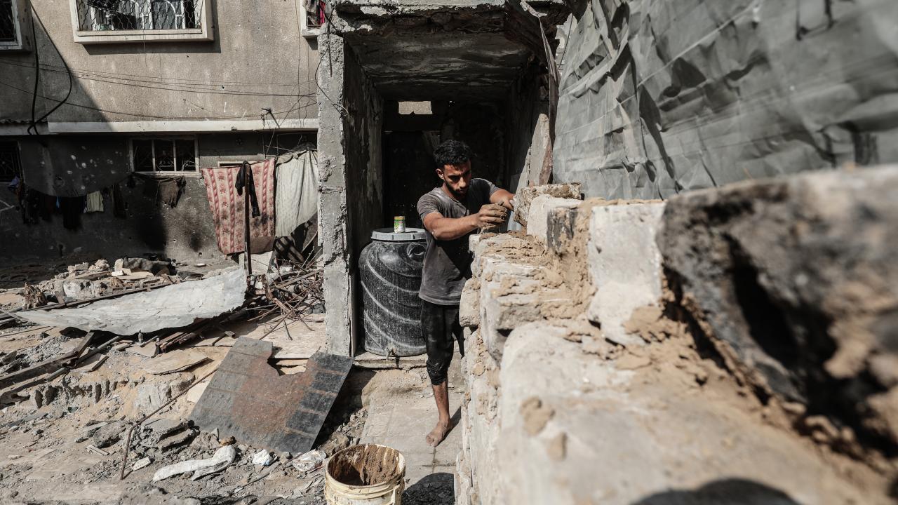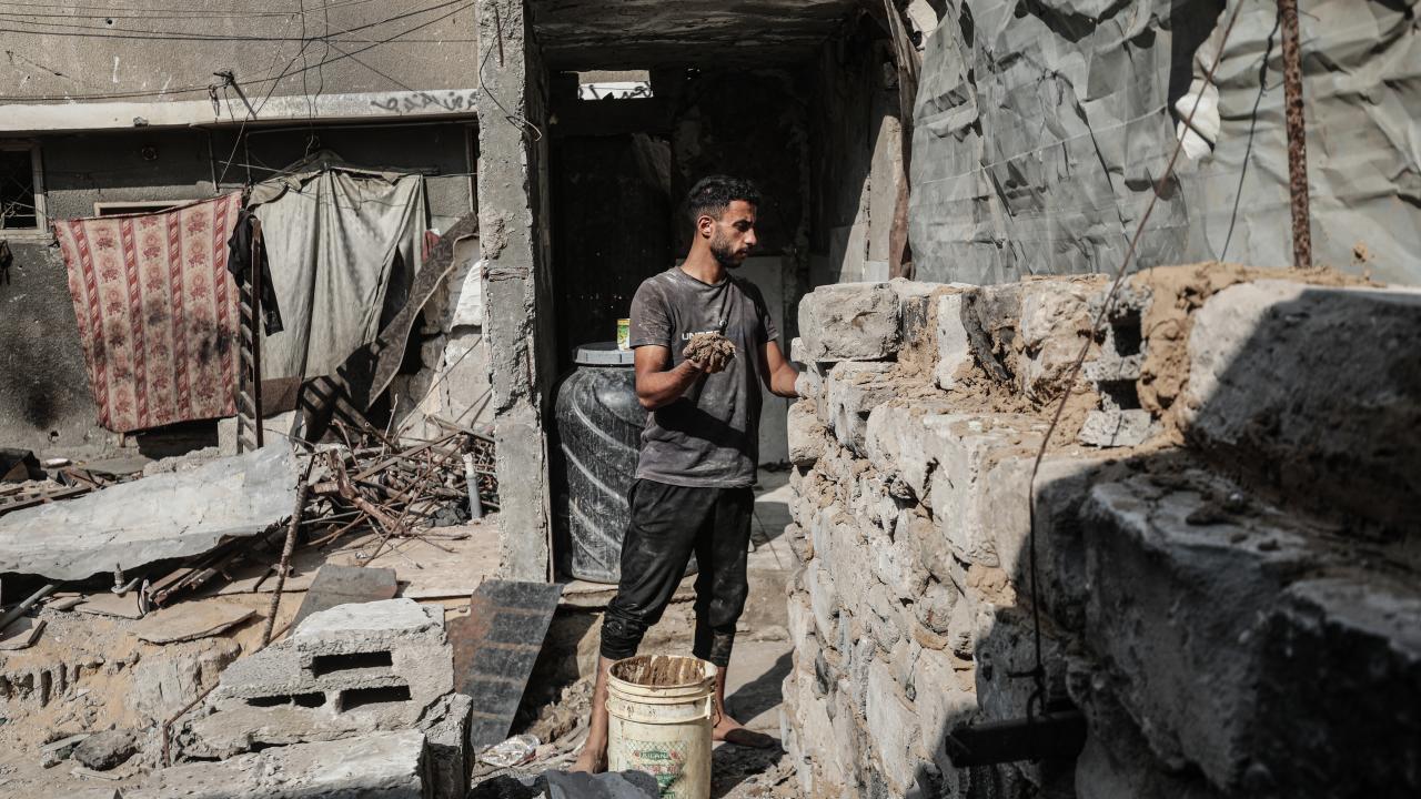 Gazze Şeridi’nin orta kesimindeki Bureyc Mülteci Kampı’ndan 22 yaşındaki Hasan Cihad Halife, ateşkes anlaşmasının ardından İsrail saldırısında yıkılan evine geri döndü. Saldırılarda ailesini de kaybeden Halife, yıkılan evinin kalıntılarından çamur ve taşlarla küçük bir barınak inşa ederek tek başına hayatını yeniden kurmaya çalışıyor.