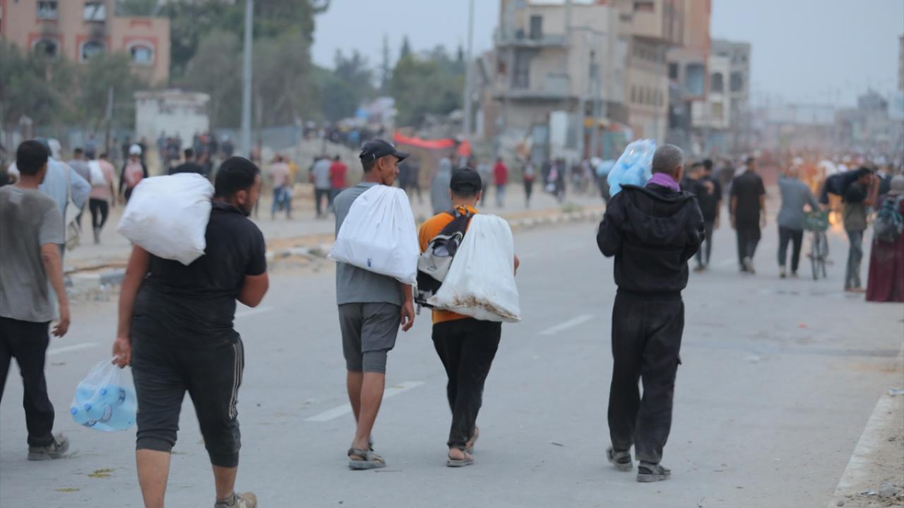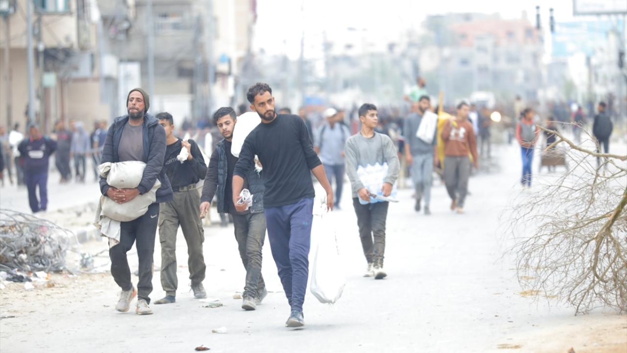 Soykırımcı İsrail'in Gazze Şeridi'ne uyguladığı abluka ve sınır kapılarının kapalı olması nedeniyle gıda sıkıntısının yaşandığı bölgede, binlerce Filistinli, insani yardım ve gıda temin edebilmek için ABD yardım noktalarının bulunduğu Netzarim bölgesine akın etti.