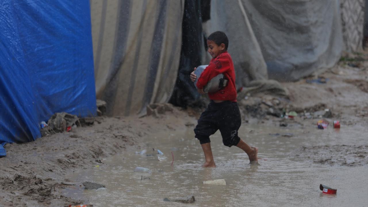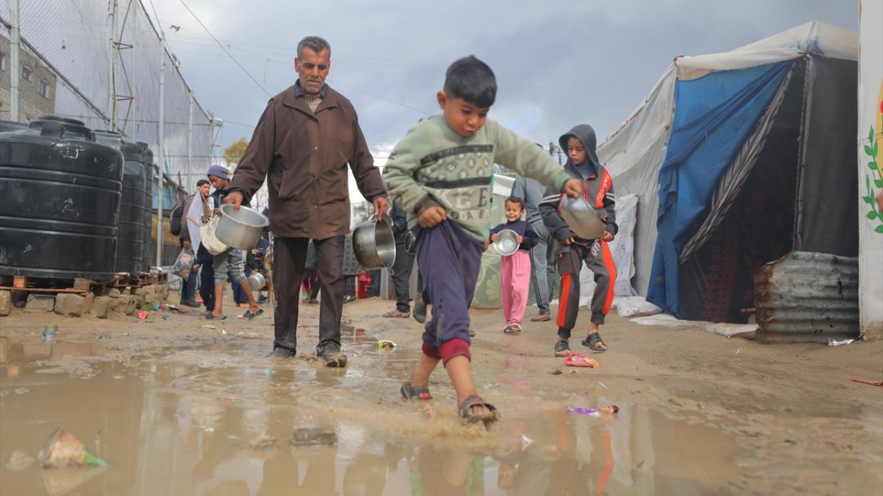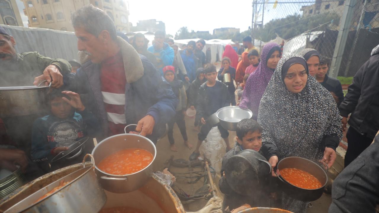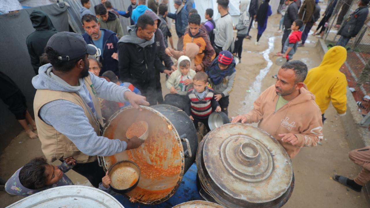 Hamas ve İsrail arasında mutabakata varılan Gazze'de ateşkesin yürürlüğe girmesinin ardından, Gazze Şeridi'nin orta kesiminde yer alan Nuseyrat Mülteci Kampı'ndaki Filistinlilere, hayır kurumları tarafından yemek dağıtımı yapıldı.