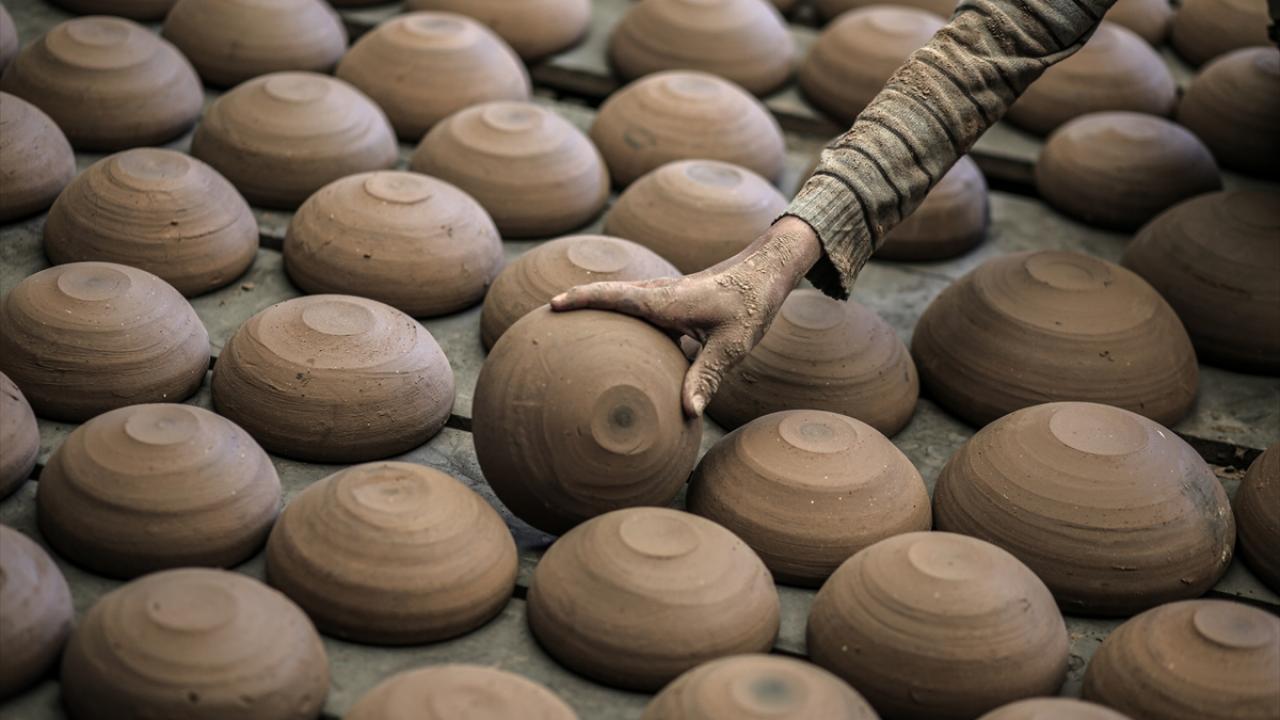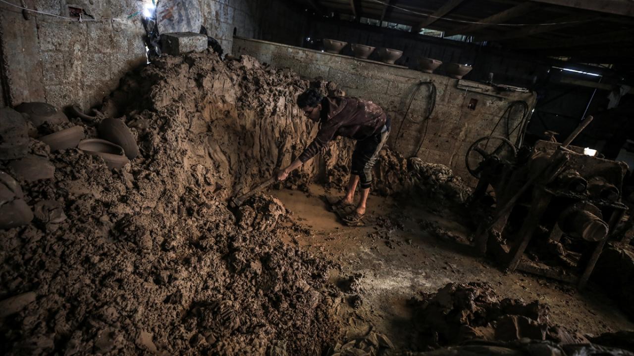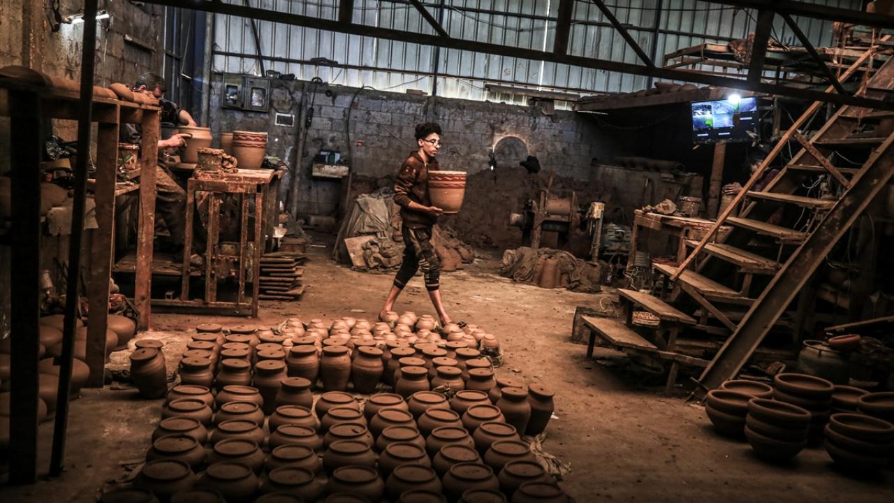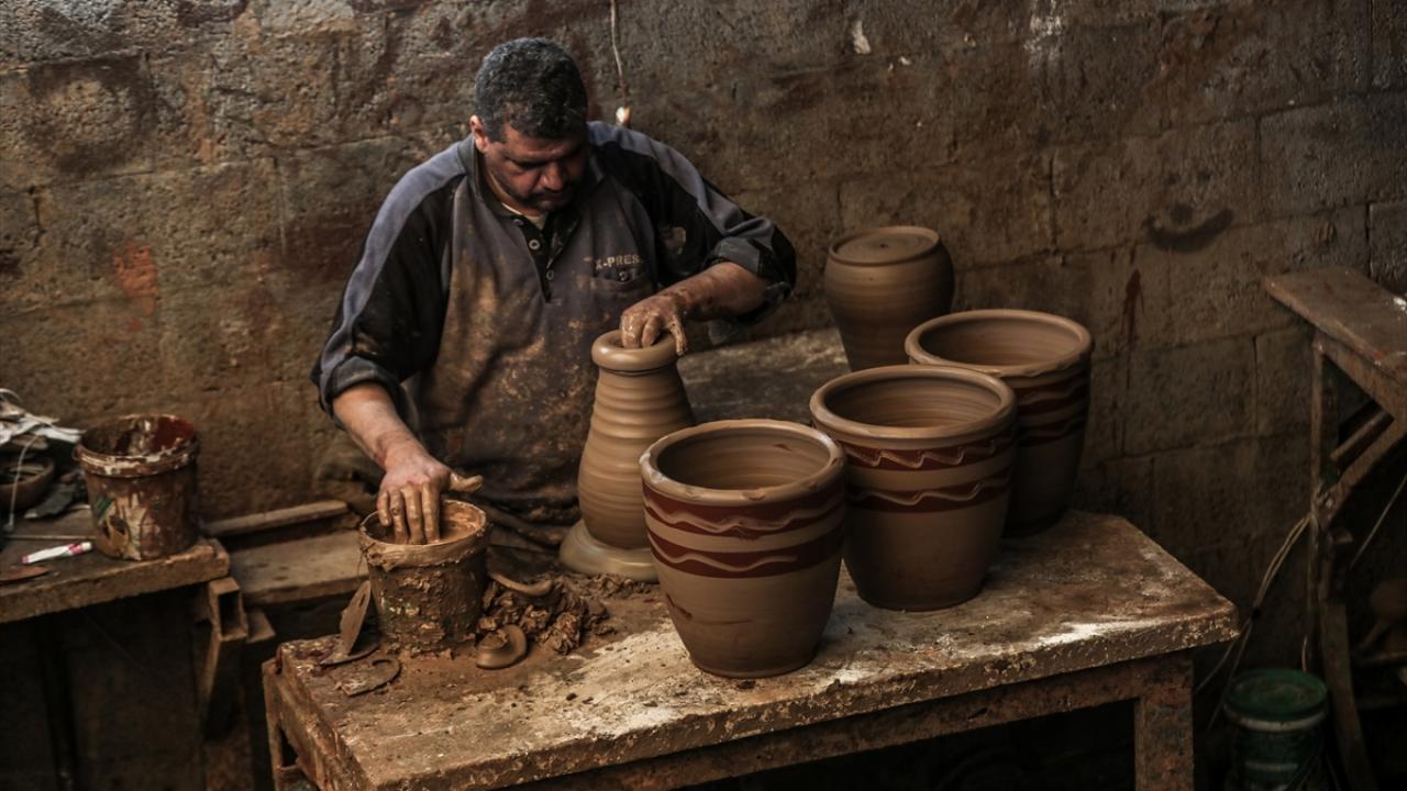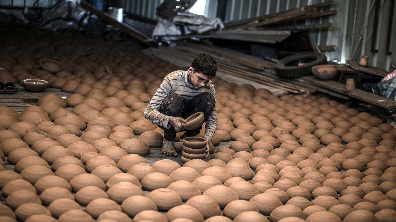 Abluka altındaki Gazze Şeridi'nin Deyr El Balah kentinde yaşayan Seyid Atallah ve aile fertleri, geleneksel yöntemlerle çömlek imalatı yaparak geçimlerini sağlıyor.