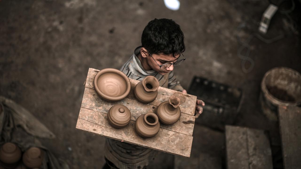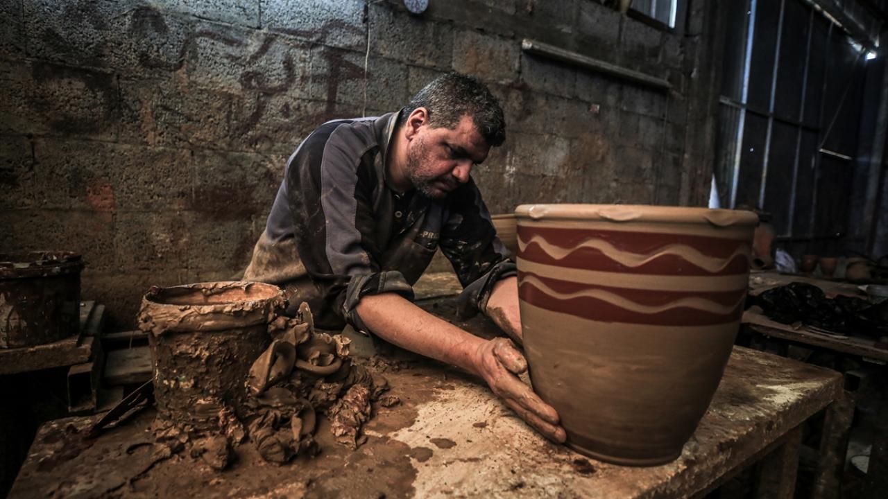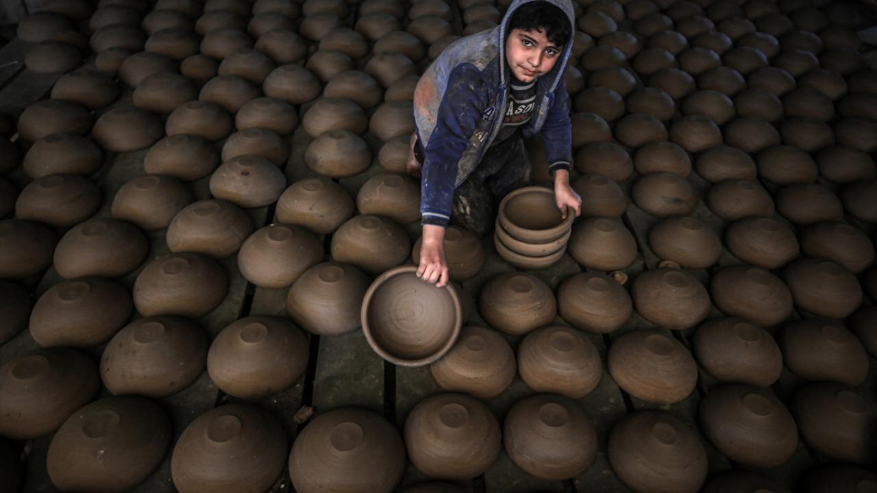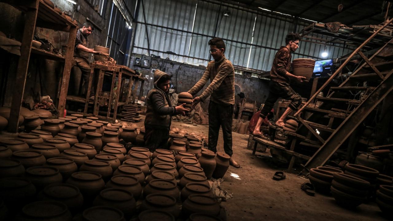 Abluka altındaki Gazze Şeridi'nin Deyr El Balah kentinde yaşayan Seyid Atallah ve aile fertleri, geleneksel yöntemlerle çömlek imalatı yaparak geçimlerini sağlıyor.