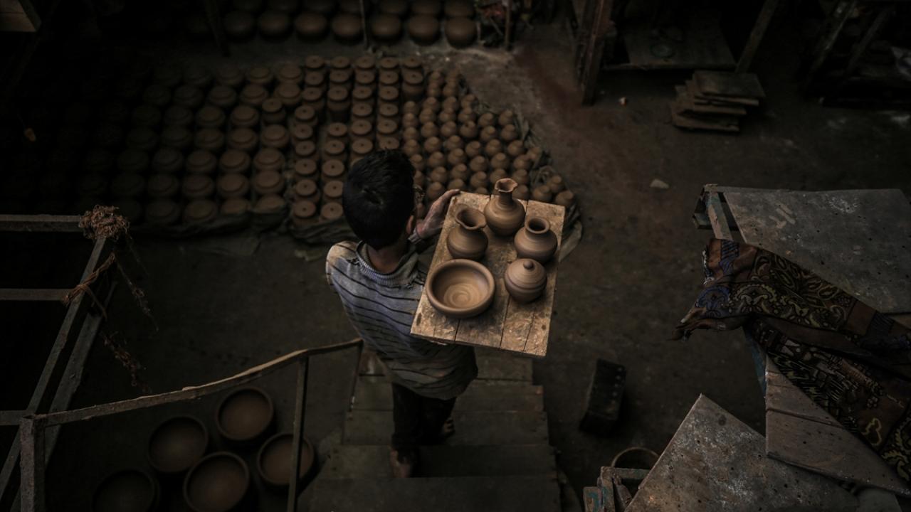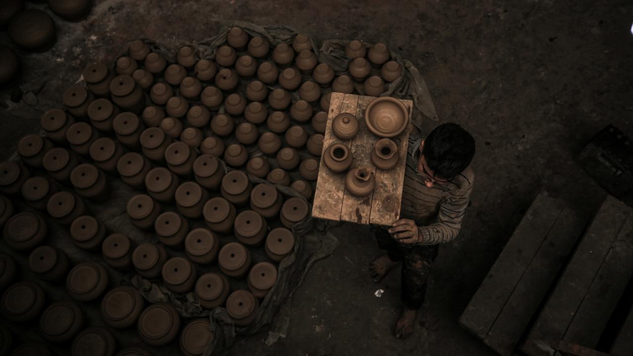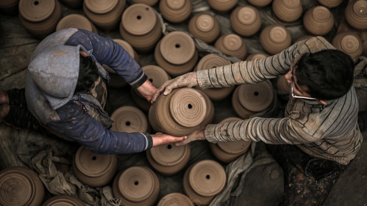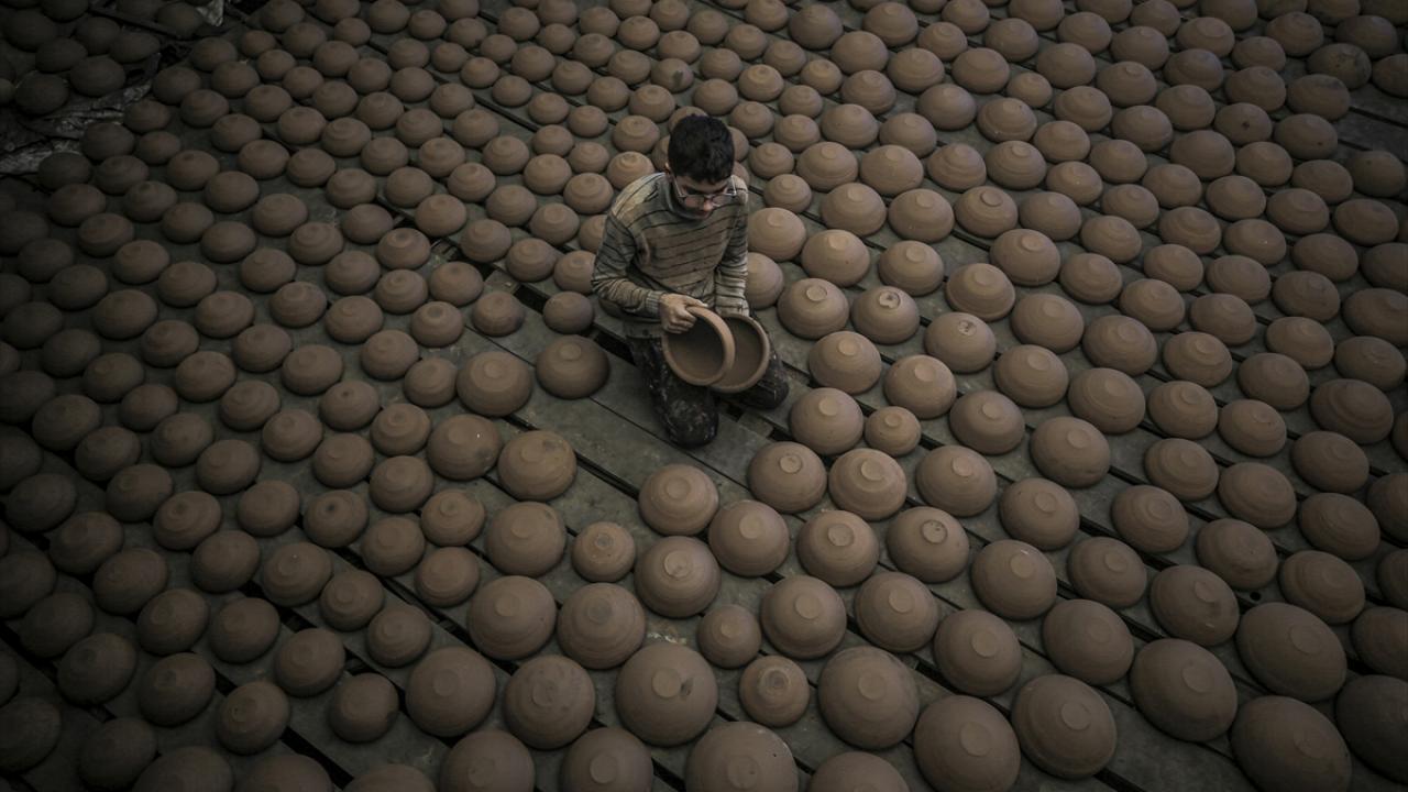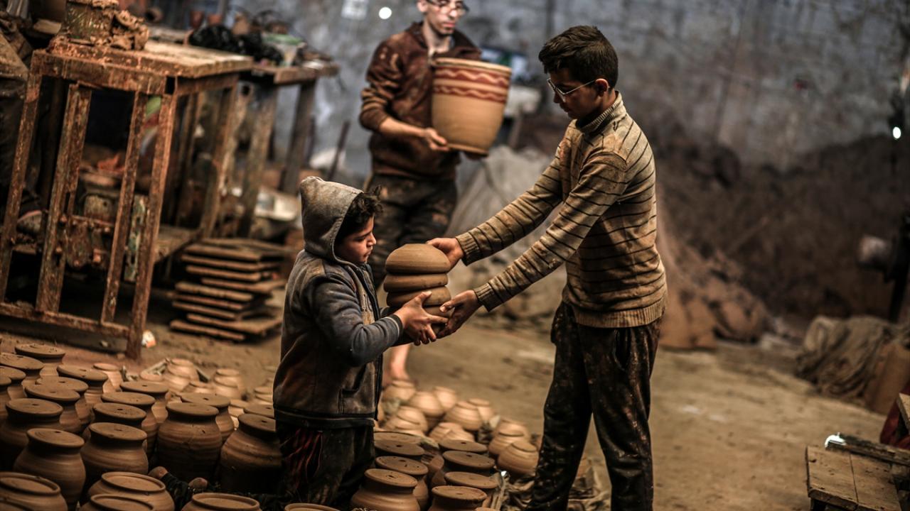 Abluka altındaki Gazze Şeridi'nin Deyr El Balah kentinde yaşayan Seyid Atallah ve aile fertleri, geleneksel yöntemlerle çömlek imalatı yaparak geçimlerini sağlıyor.
