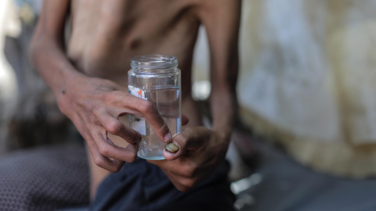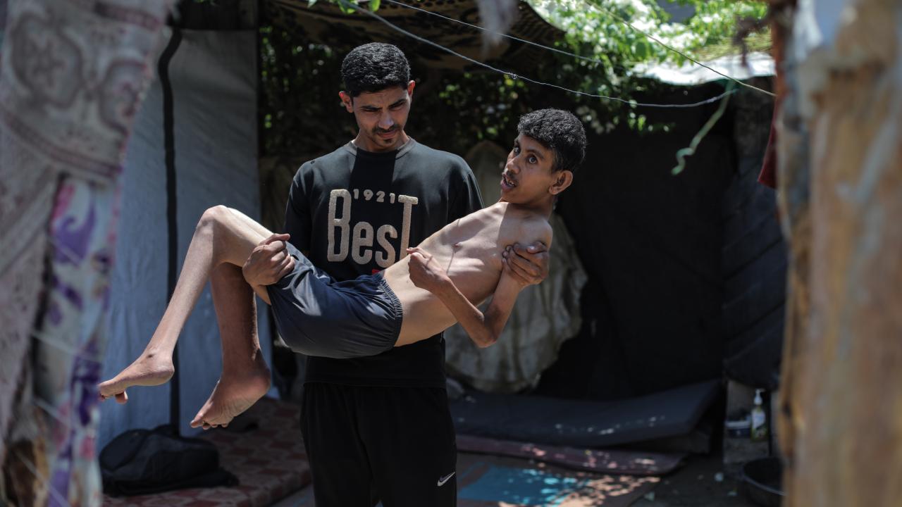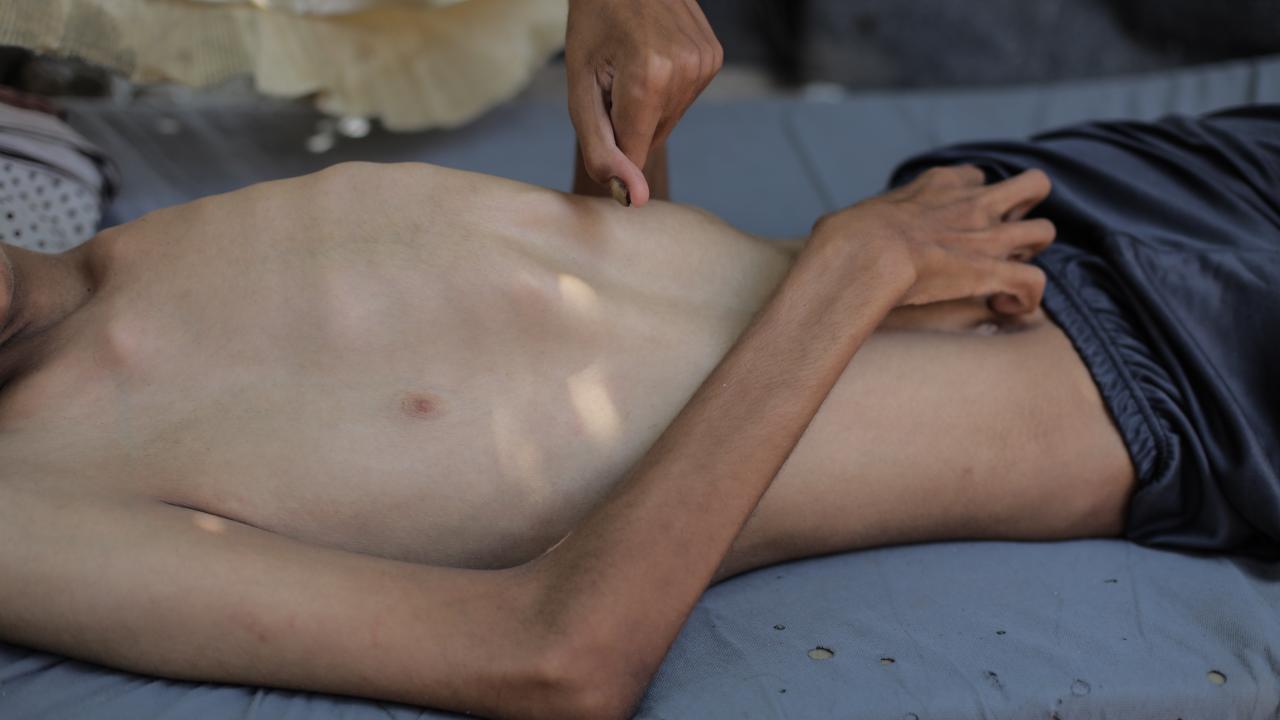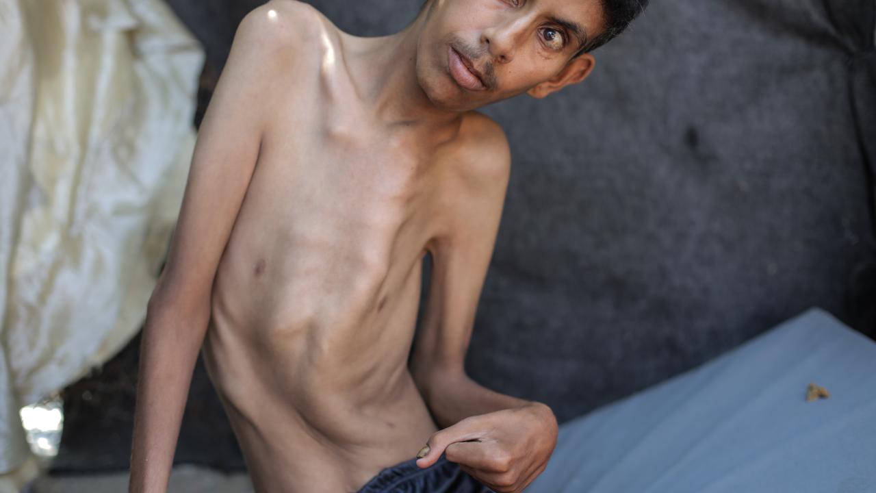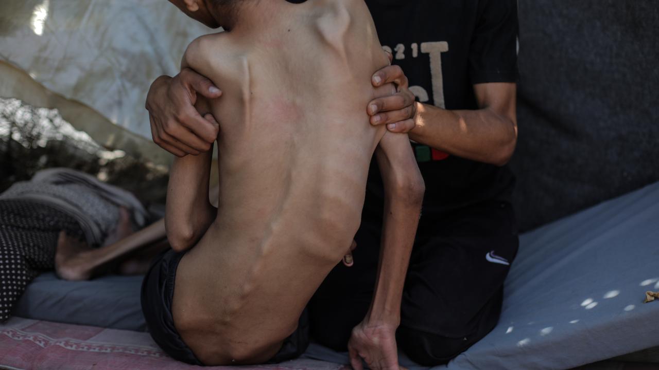 Gazze Şeridi’nin orta kesimindeki Nusayrat Mülteci Kampı’nda yaşayan 25 yaşındaki Hamza Mişmiş, bölgede yaygınlaşan açlık nedeniyle ciddi beslenme yetersizliği ve kemik erimesi yaşıyor.