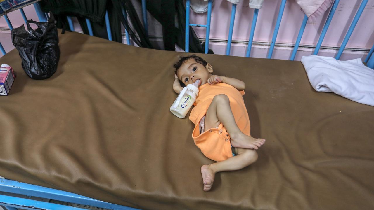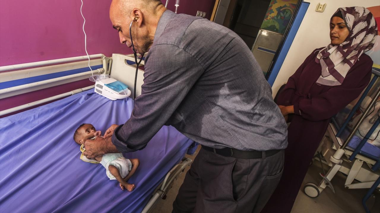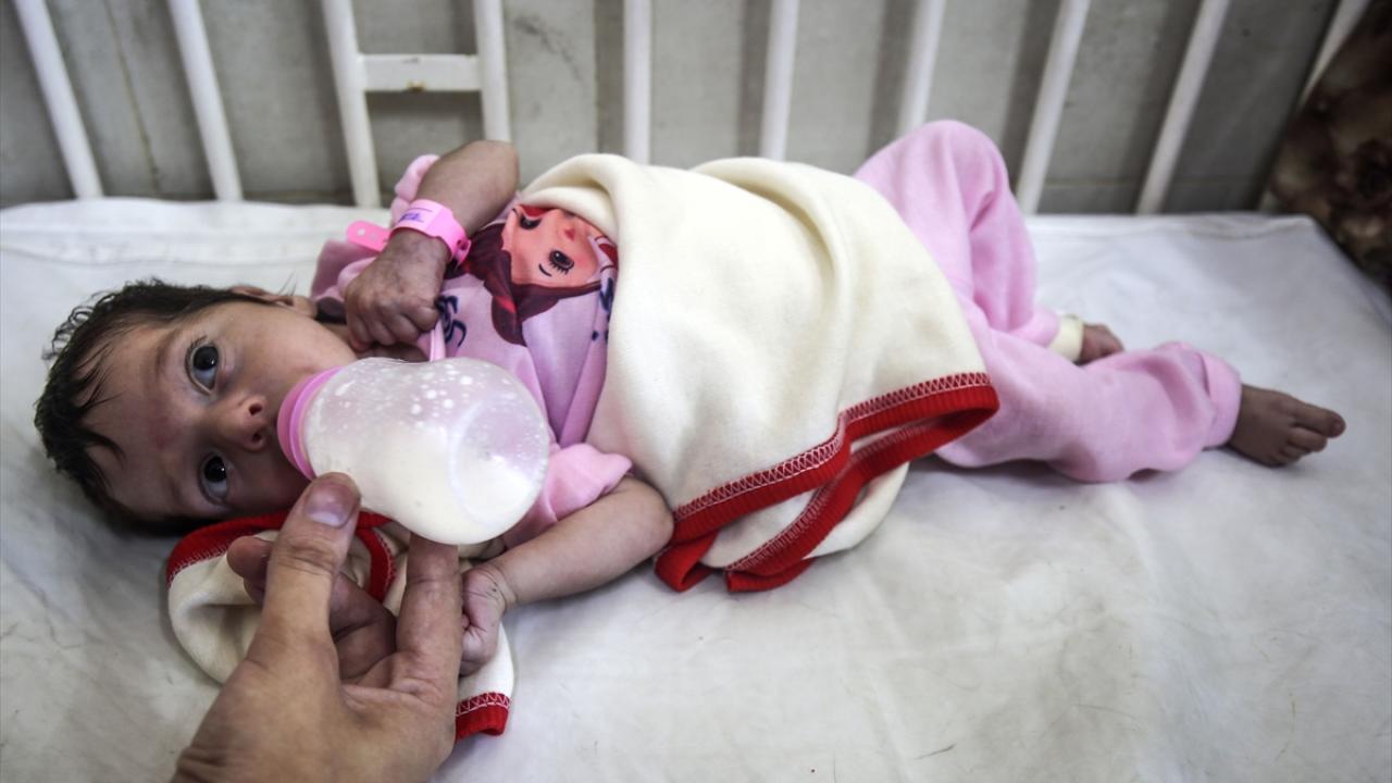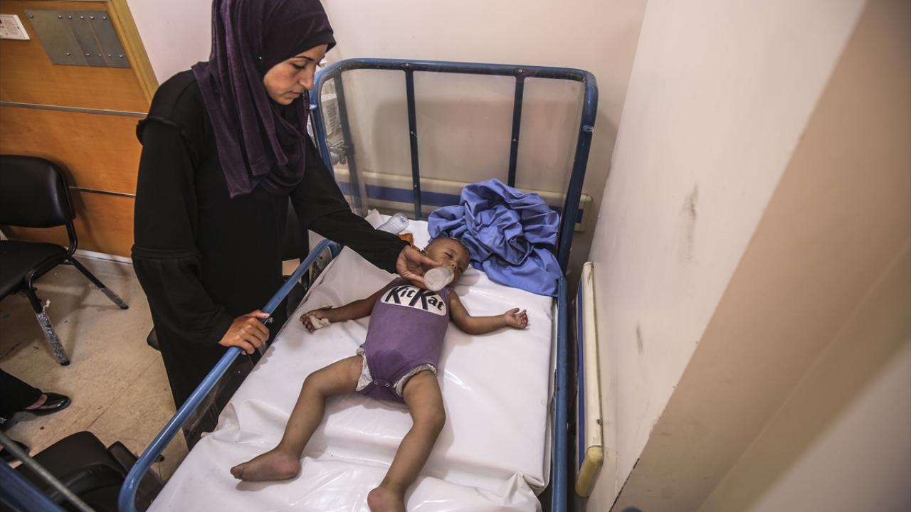 İsrail'in Gazze'de uyguladığı sistematik aç bırakma politikası yüzünden hastaneler yetersiz beslenme sonucu bir deri bir kemik kalmış, ölümle pençeleşen bebeklerle dolup taşıyor.