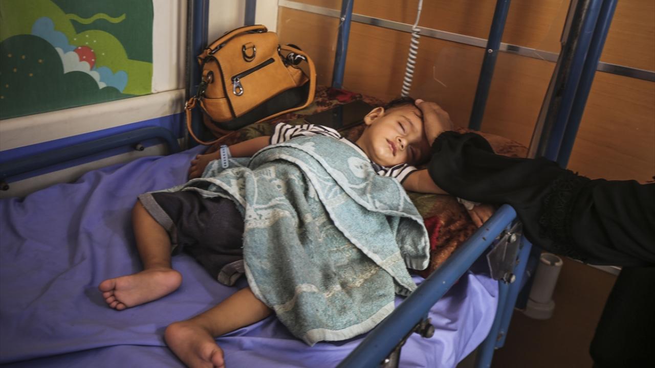 Gazze`deki Abdulaziz er-Rantisi Çocuk Hastanesinde çaresiz annelerin kucaklarındaki bitkin ve zayıf çocuklar görüntülendi.