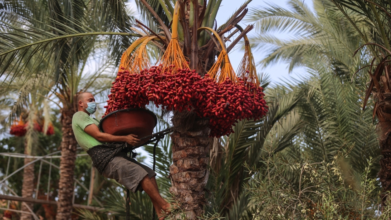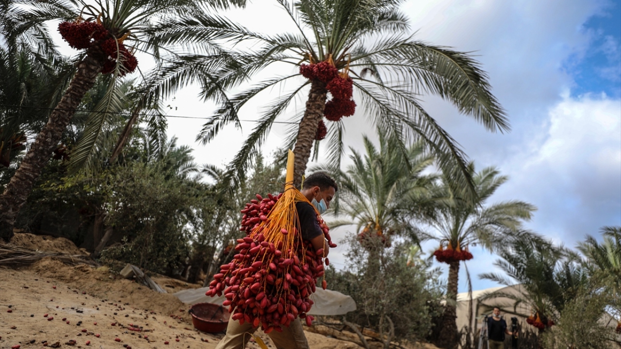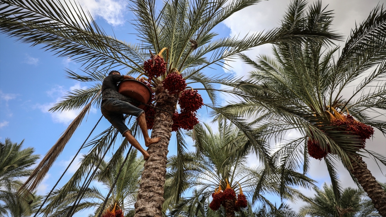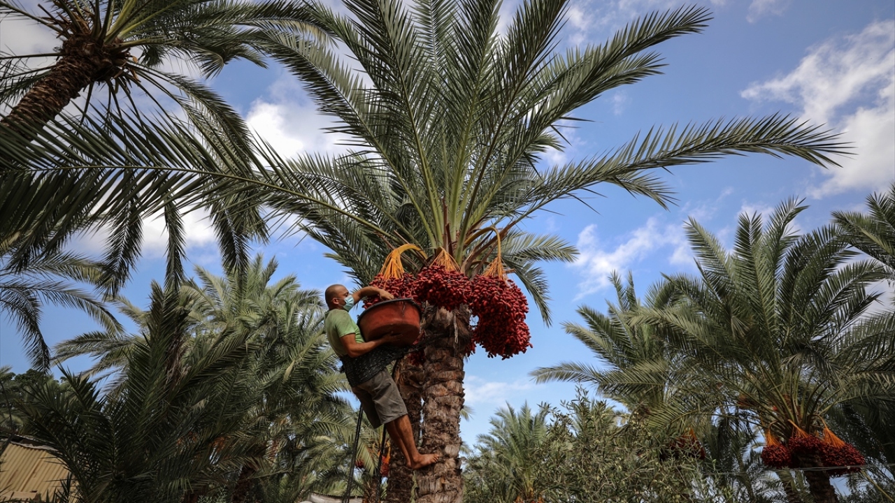 Gazze'deki Tarım Bakanlığı, hurma hasadı için sezonun açıldığını duyurdu. Gazze Şeridi'nin Deyr El Balah kentindeki Filistinli çiftçiler, duyurunun ardından hurma hasadına başladı.