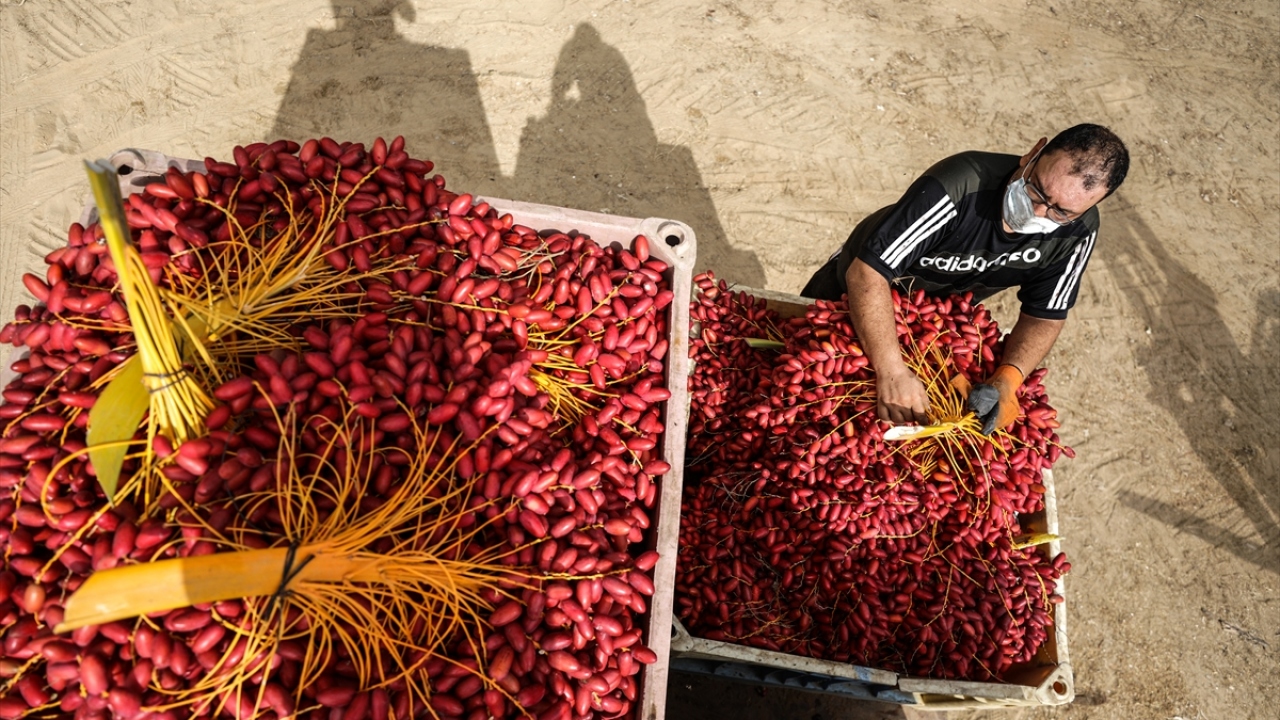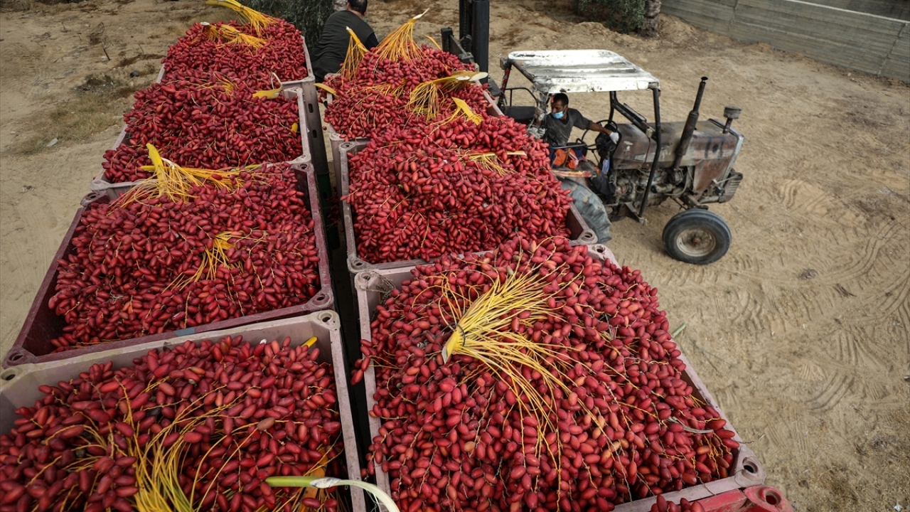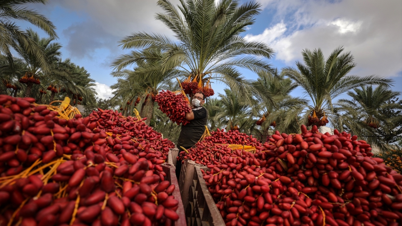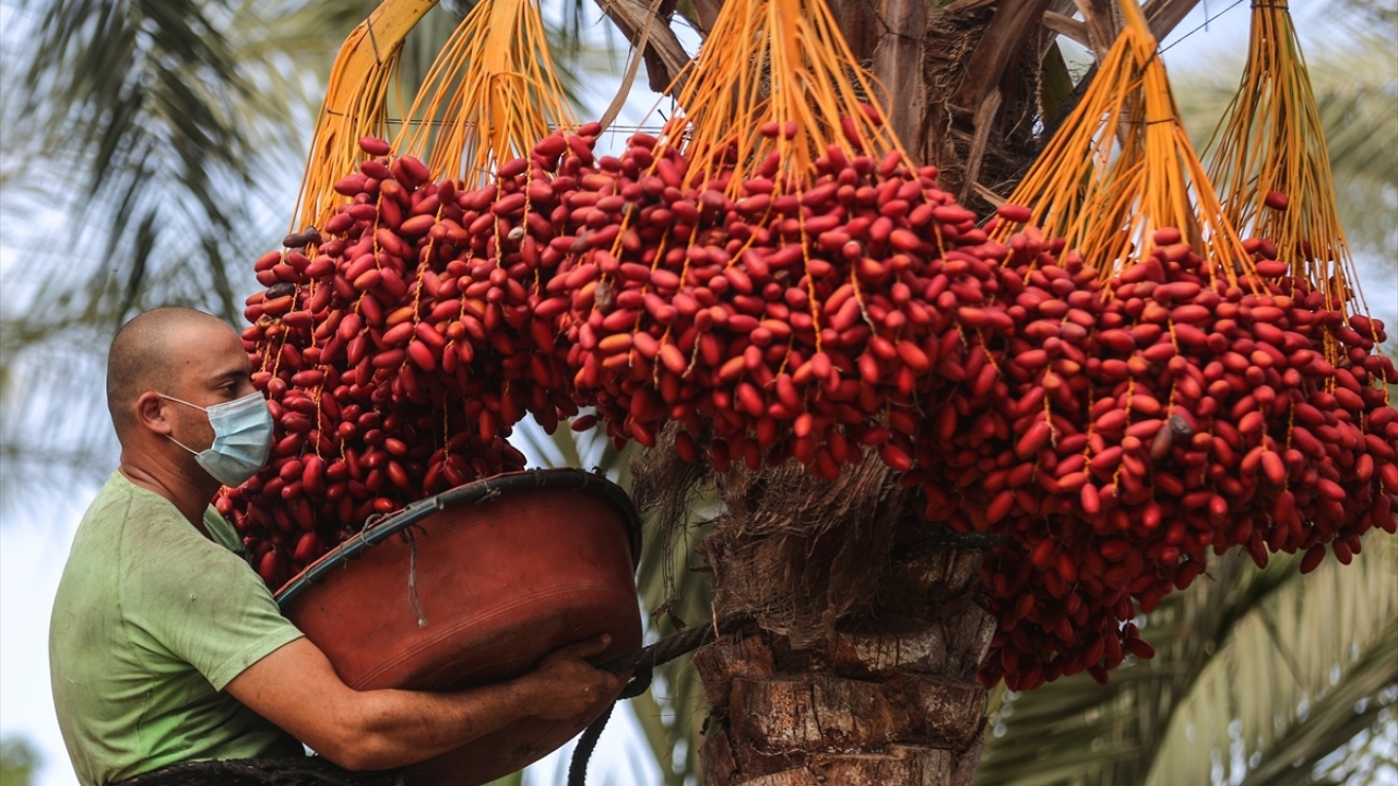 Gazze'deki Tarım Bakanlığı, hurma hasadı için sezonun açıldığını duyurdu. Gazze Şeridi'nin Deyr El Balah kentindeki Filistinli çiftçiler, duyurunun ardından hurma hasadına başladı.