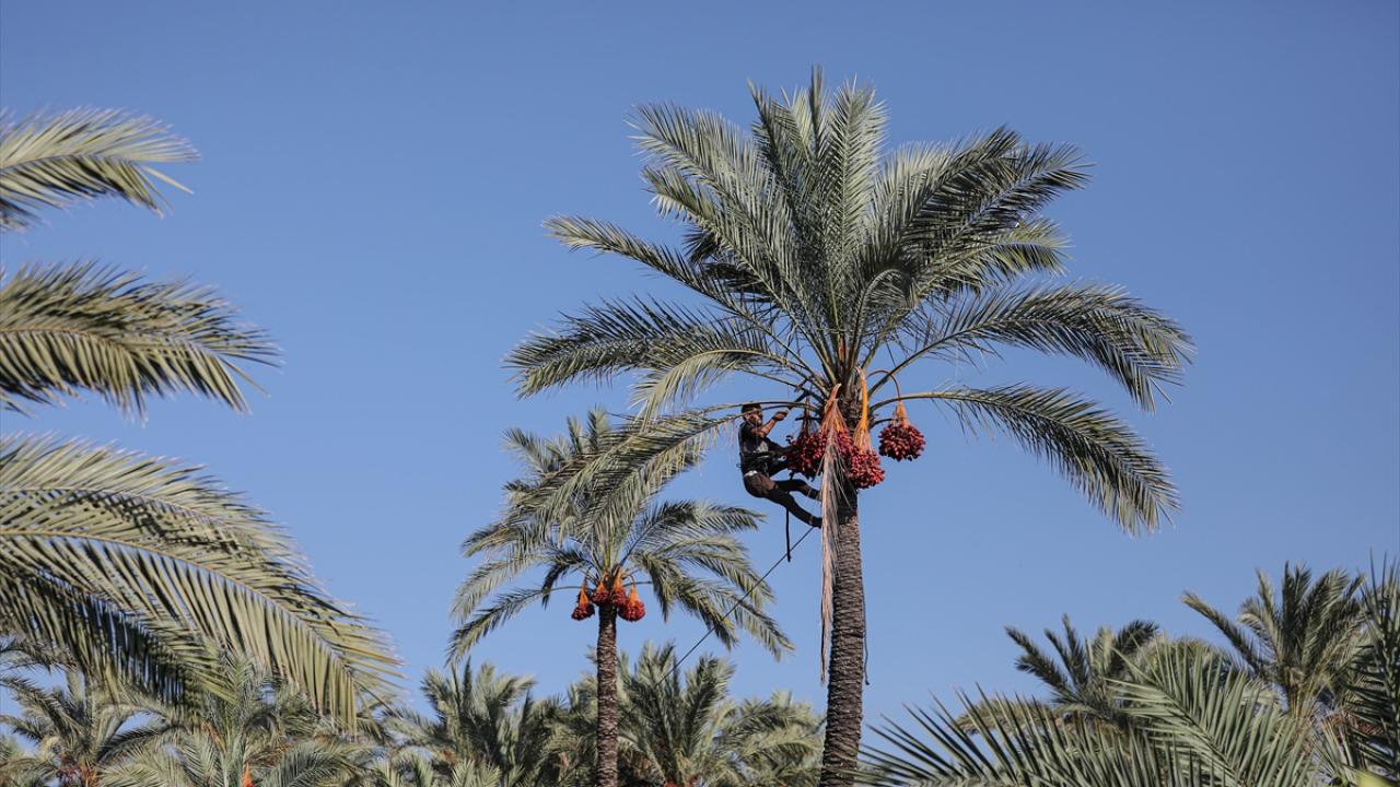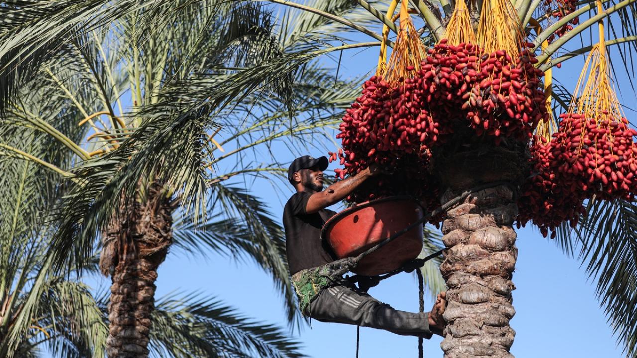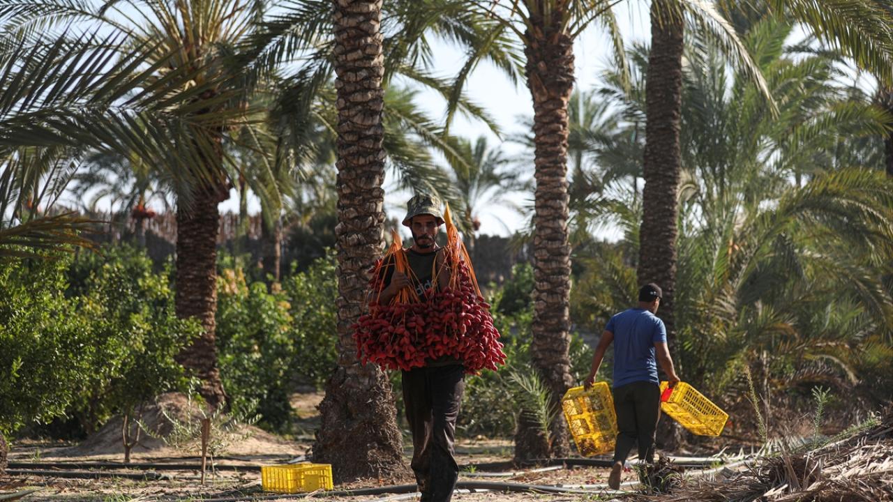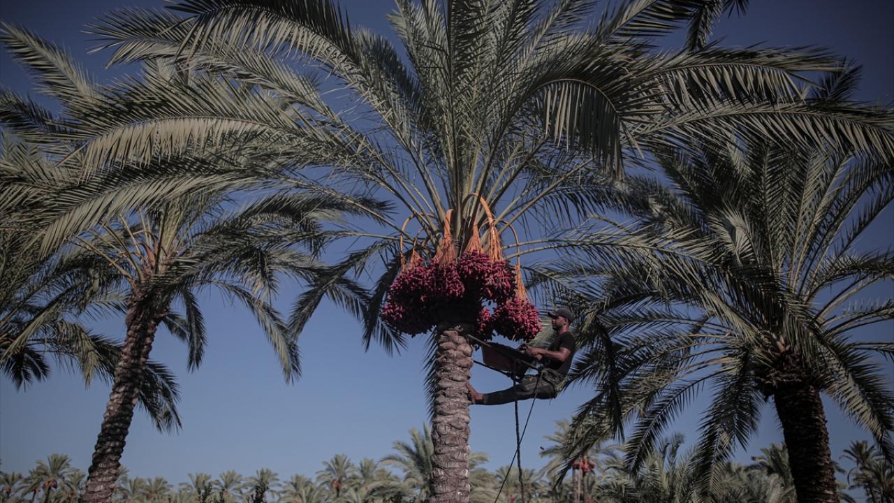 Gazze Şeridi'nin Han Yunus kentinde yaşayan Filistinli çiftçiler, hurma hasadına başladı.