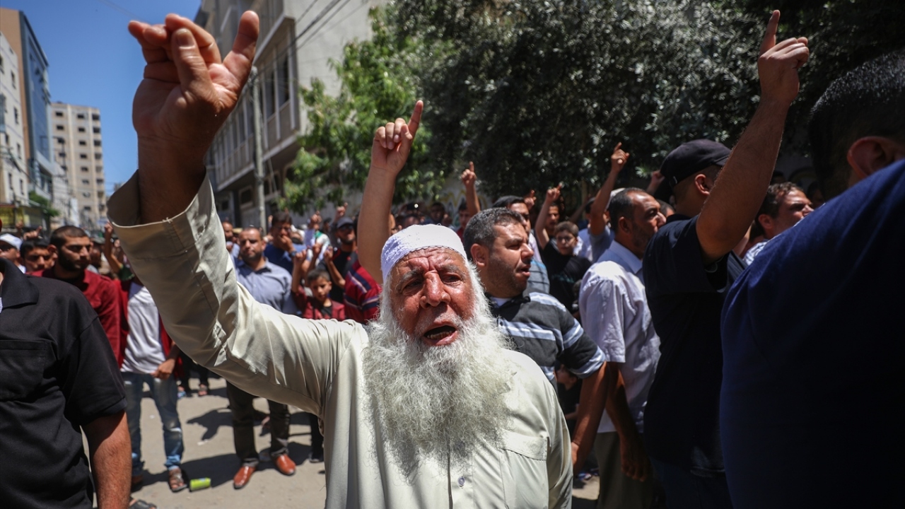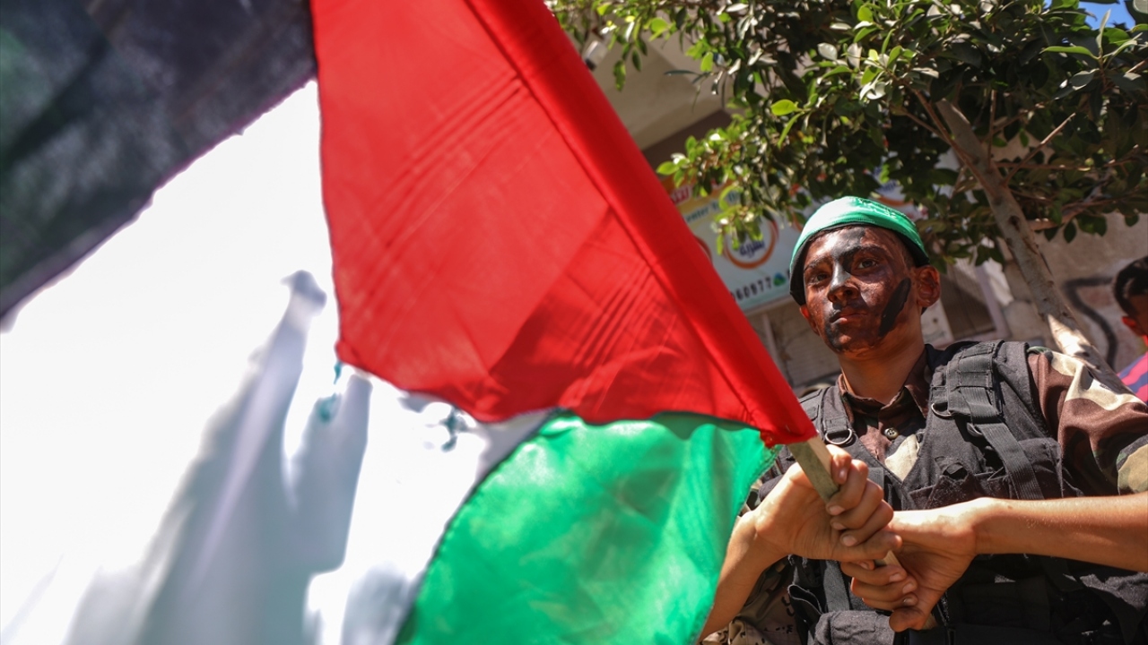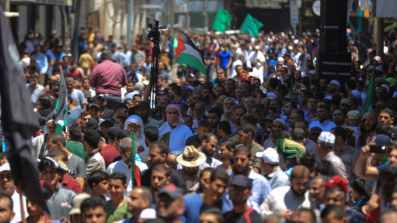 Hamas'ın çağrısıyla Gazze'nin Han Yunus kentinde toplanan binlerce Filistinli, İsrail'in Batı Şeria'daki bazı bölgelerin "ilhak" planı ve ABD'nin Yüzyılın Anlaşması'na karşı gösteri düzenledi.