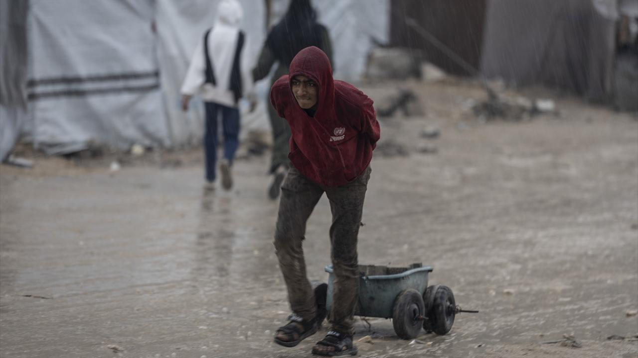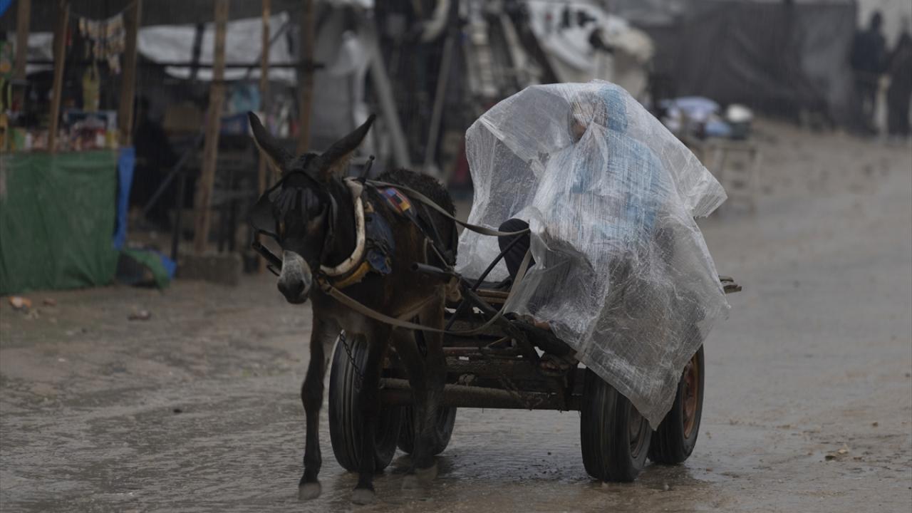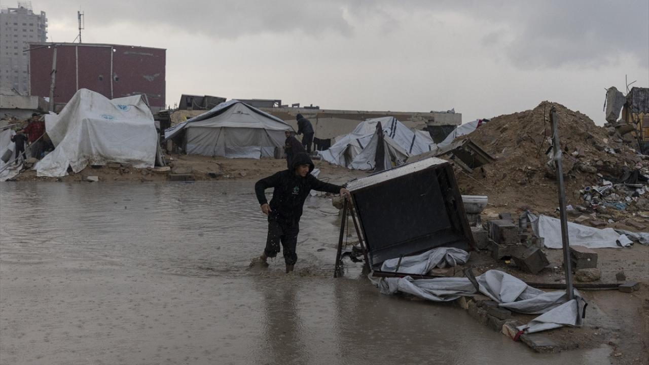 Olumsuz hava koşulları, ağır insani şartlar altında yaşayan yerinden edilmiş Filistinlilerin yaşadığı sıkıntıları daha da artırdı.
