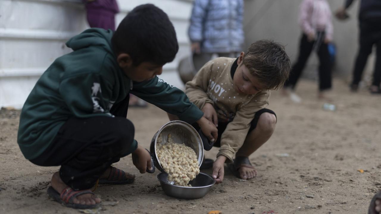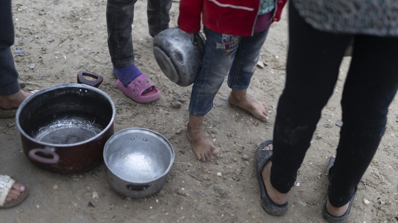 Gazze'nin Mevasi bölgesindeki Filistinlilere sıcak yemek dağıtımı