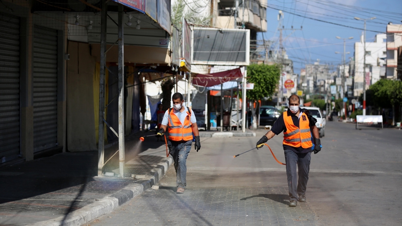 Duyurunun ardından Deyr Balah kentindeki cadde ve sokaklarda dezenfekte çalışması yapıldı.
