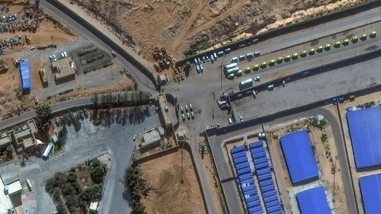 İnsani yardım tırlarının uzayıp giden ve Refah Sınır Kapısı yakınlarında yığılan görüntüleri ile Gazze'ye düzenlenen saldırıların görüntüleri uyduya yansıdı.