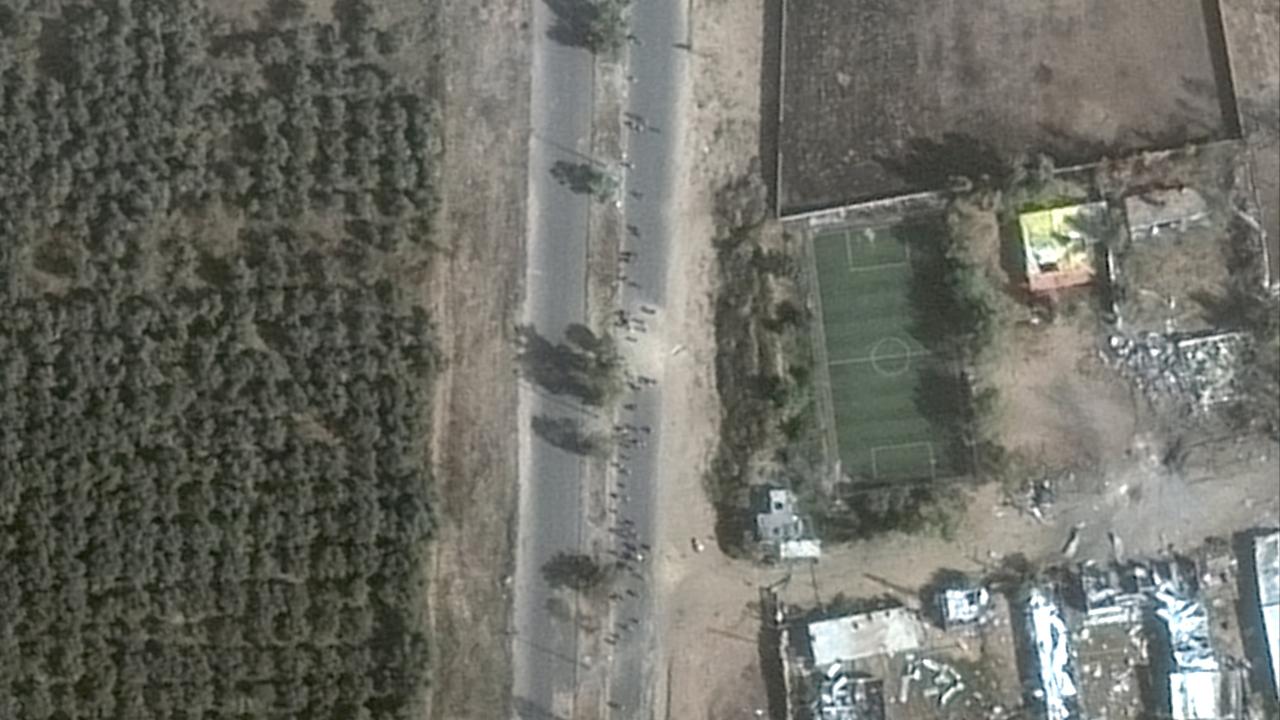 Uydu görüntülerinde, Gazze Şehri`nden güneye doğru tahliye edilen, Sal al-Din yolu boyunca yürüyen insan grupları da yer aldı.
