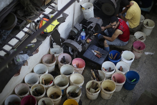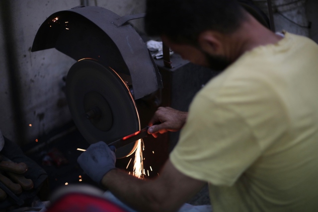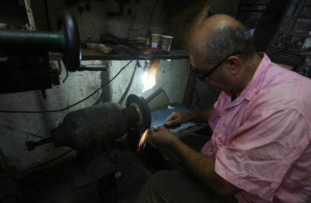 Kurban Bayramı'na sayılı günler kala Gazze'deki bıçak bileyicileri, bayram öncesi gelen talepleri yetiştirmeye çalışıyor.
