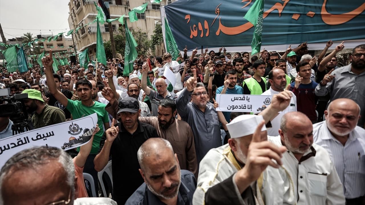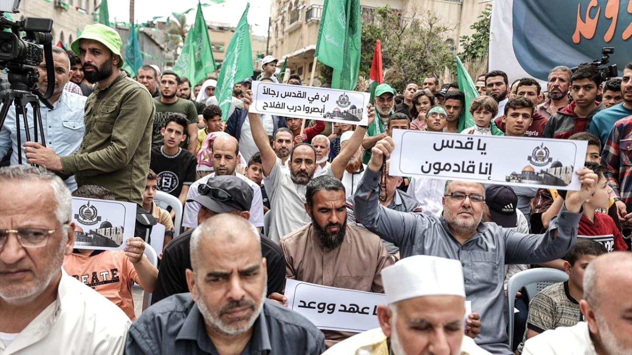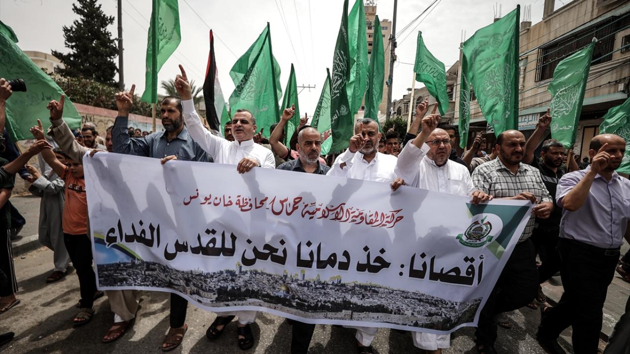 Gazze'nin Han Yunus kentinde cuma namazı sonrası toplanan Filistinliler, aşırı sağcı Yahudilerin baskın ve ihlallerine karşı Doğu Kudüs’teki Mescid-i Aksa'ya destek gösterisi düzenledi.