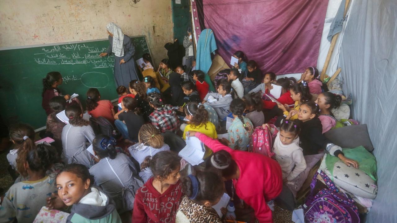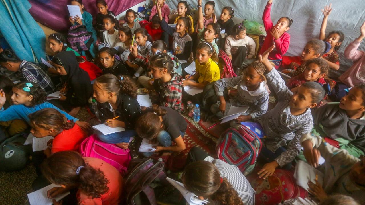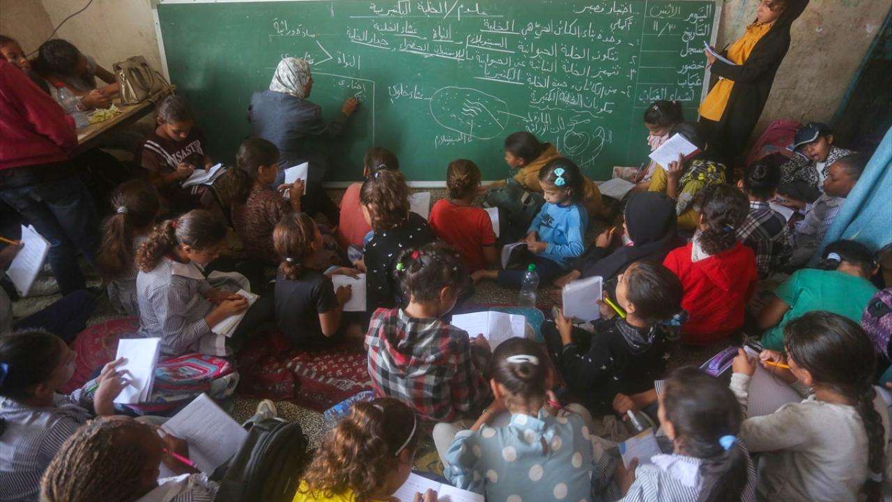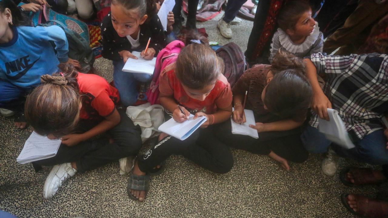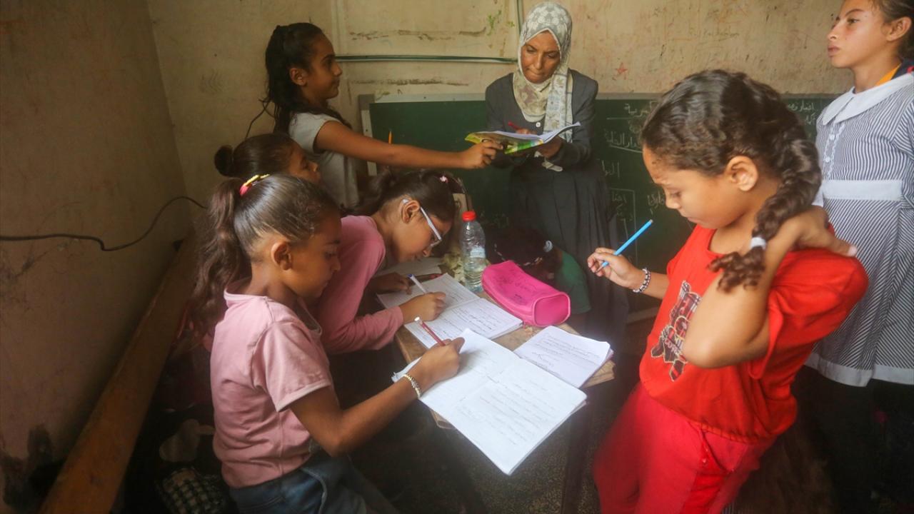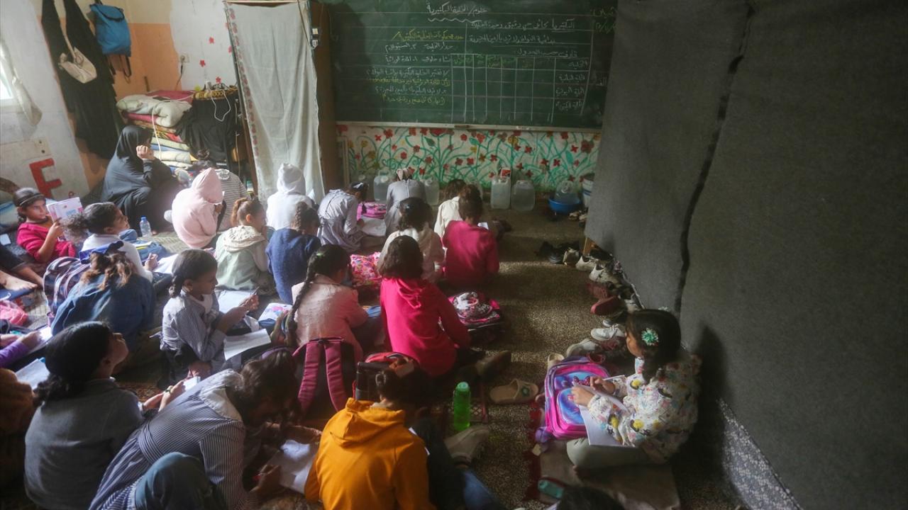 Gazze’de öğrenciler barınma merkezine dönüşen okullarda eğitim hayatına dönmeye çalışıyor