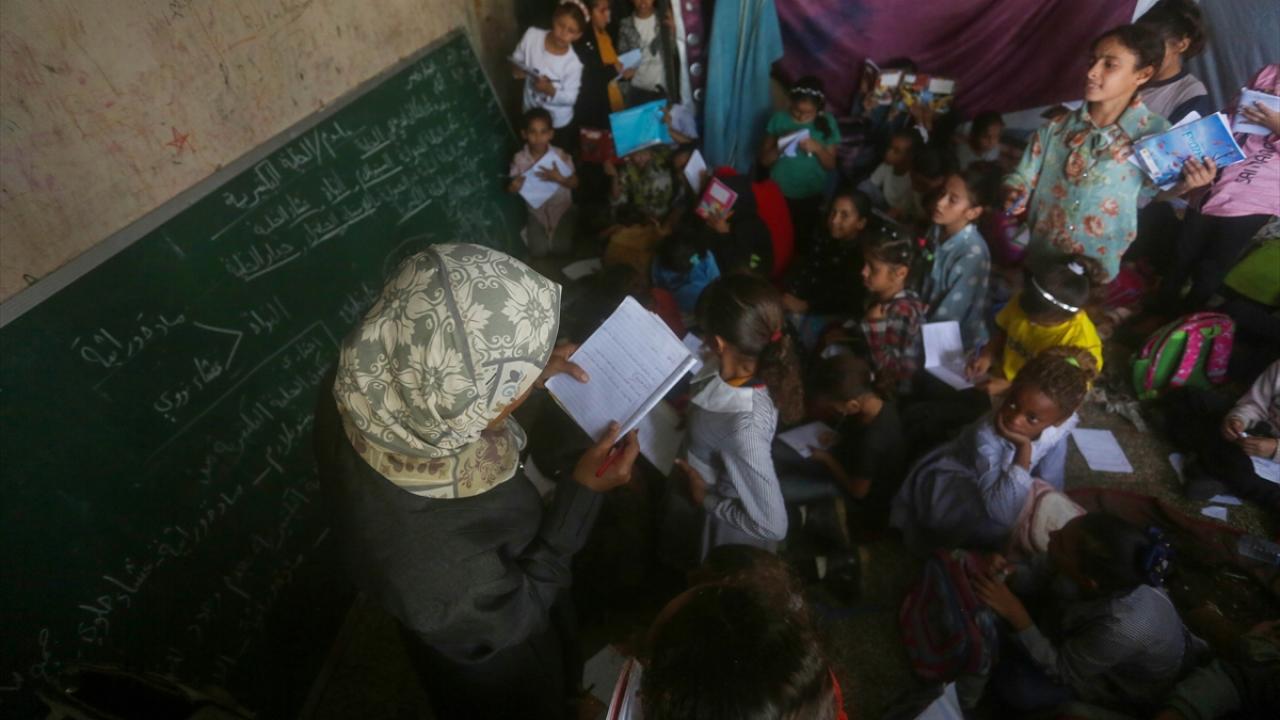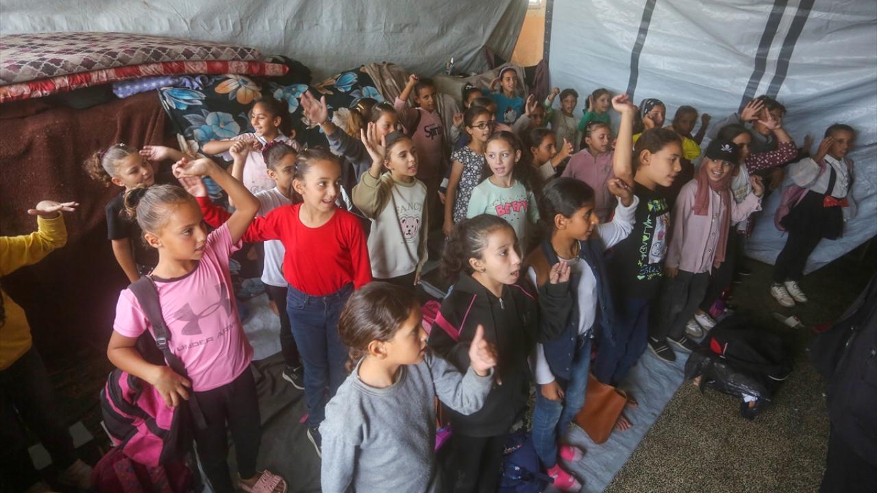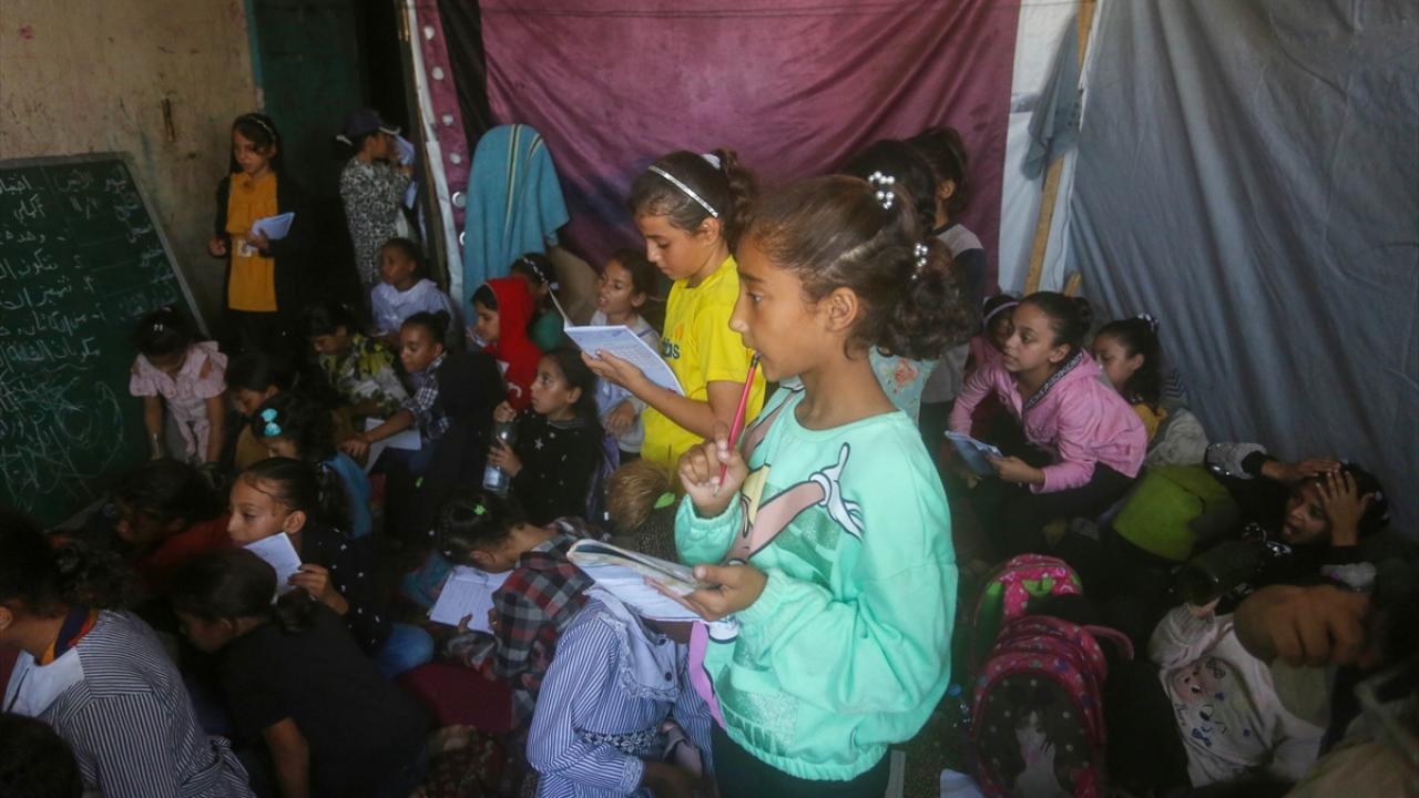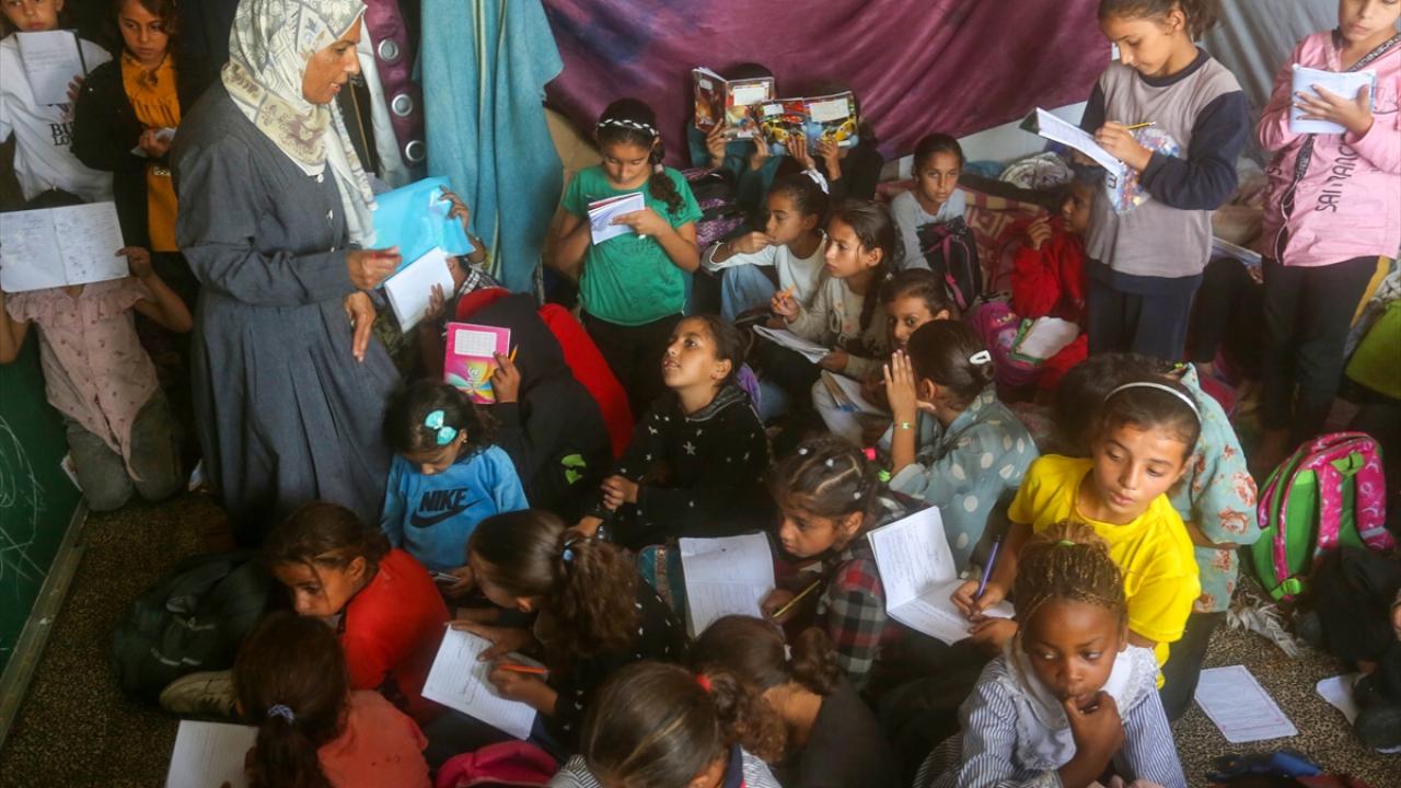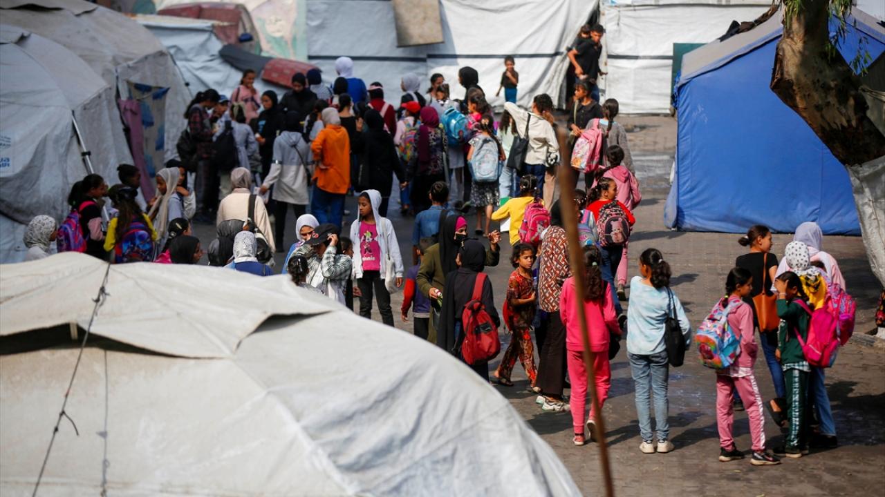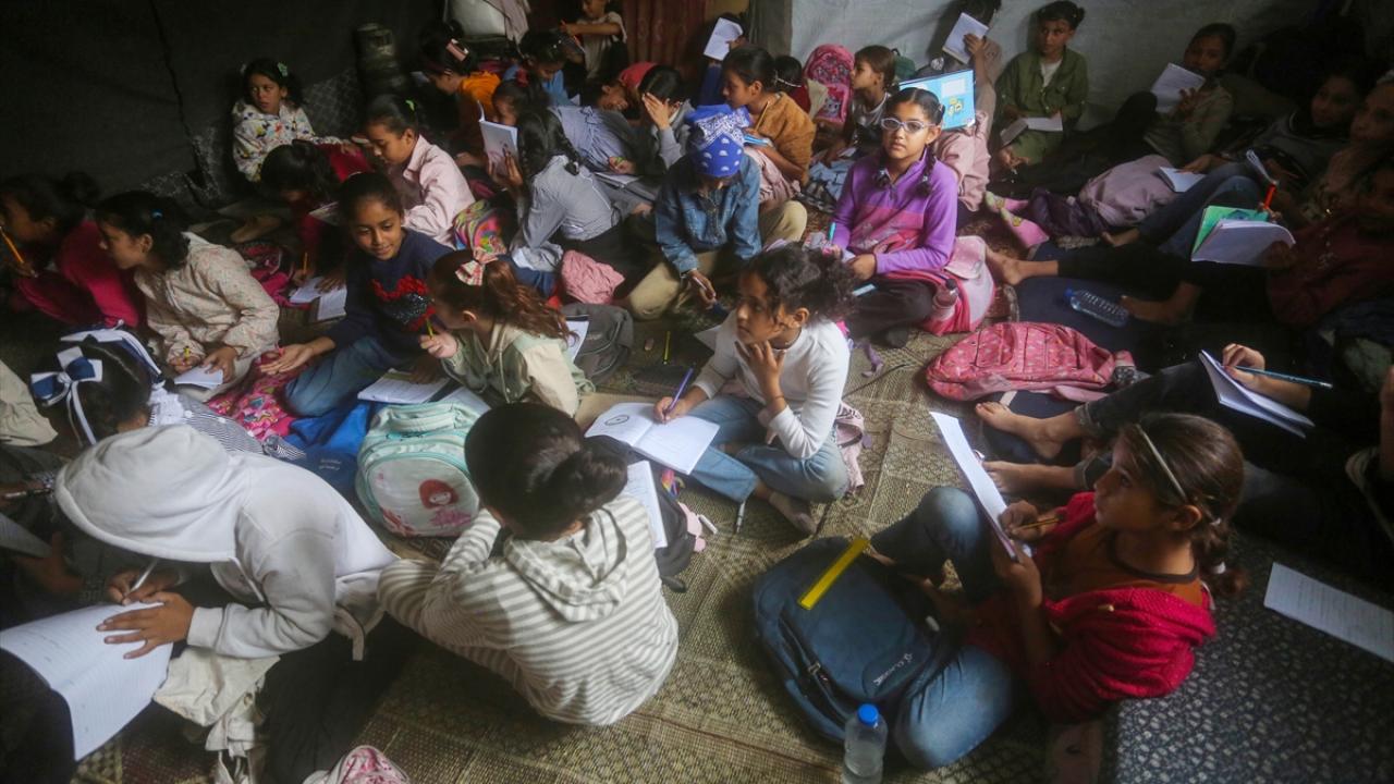 Gazze’de öğrenciler barınma merkezine dönüşen okullarda eğitim hayatına dönmeye çalışıyor