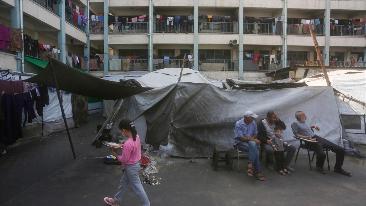 İsrail saldırıları sonucu, Gazze Şeridi’nin orta kesimindeki Deyr Belah'ta bulunan Birleşmiş Milletler Filistinli Mültecilere Yardım Ajansı'na (UNRWA) ait bir ilkokul, evleri yıkılan Filistinlilerin barınma merkezine dönüşmüştü.
