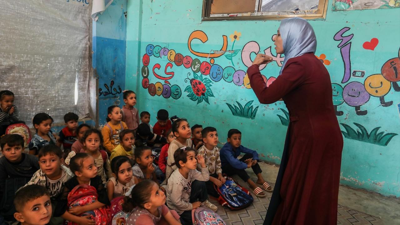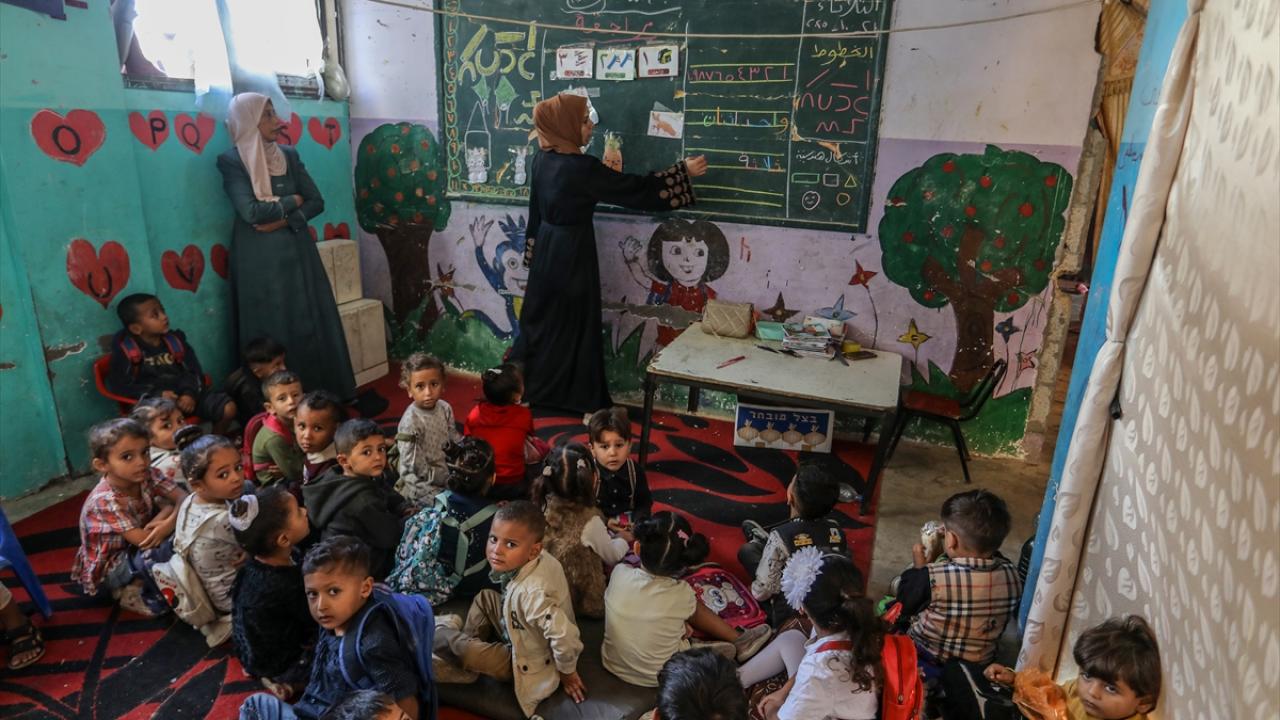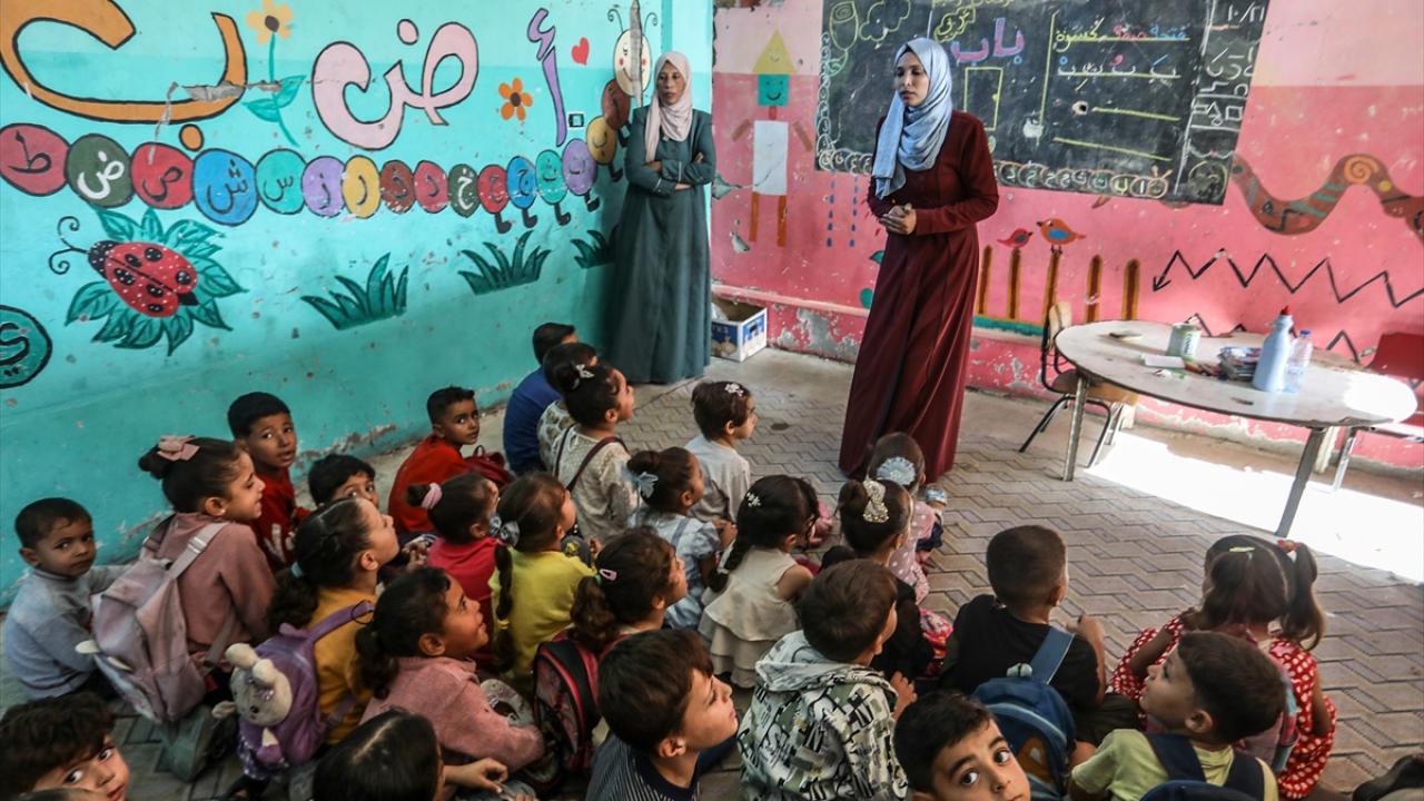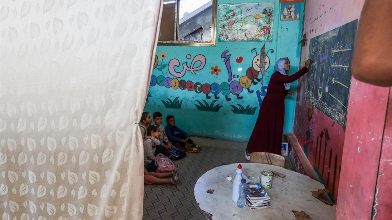 İsrail ordusunun Gazze Şeridi'nin Han Yunus’un kuzeyindeki El-Emel Mahallesi’nden çekilmesinin ardından, okulları kullanılamaz hale gelen Filistinli öğretmenler, eğitime devam edebilmek için öğrencileri kendi evlerinde ağırlamaya başladı.