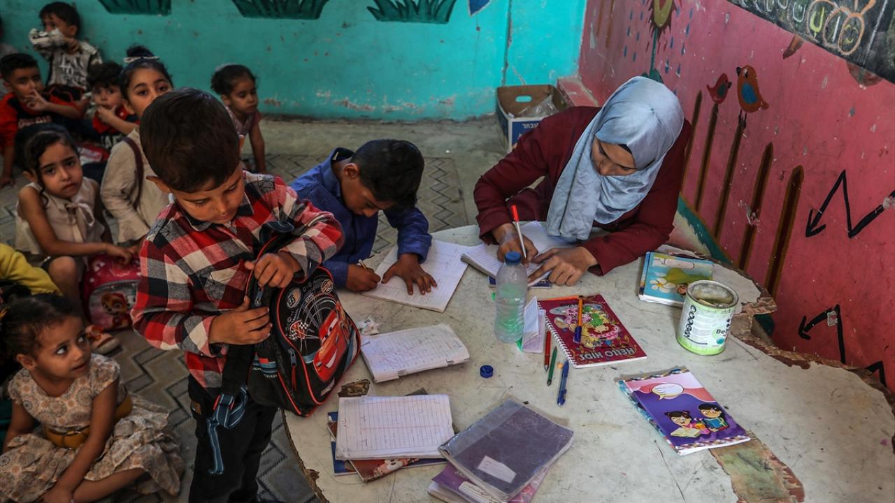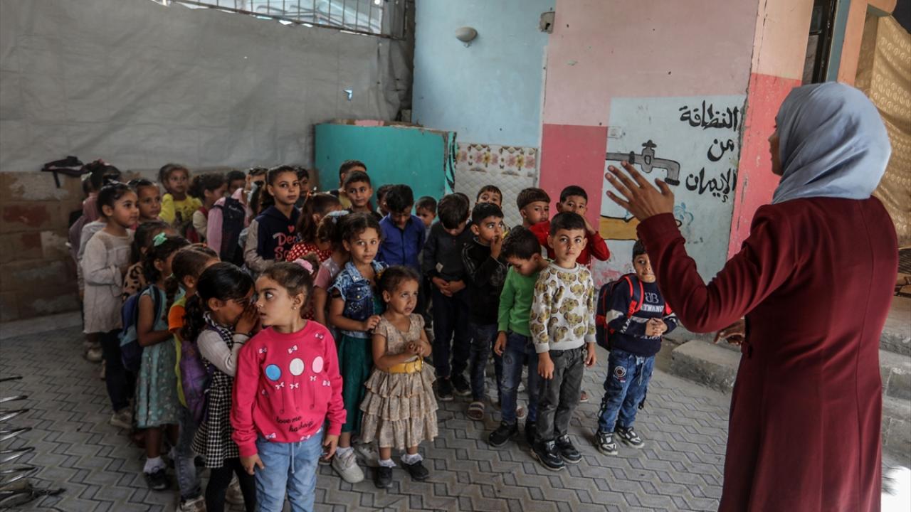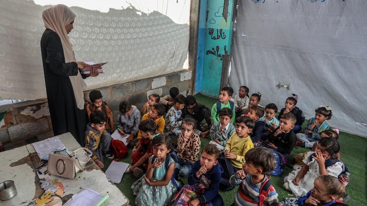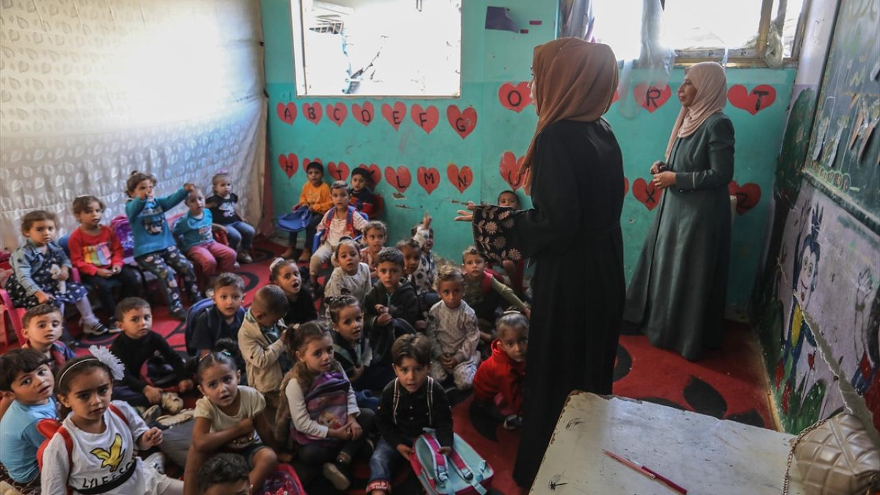 İsrail ordusunun Gazze Şeridi'nin Han Yunus’un kuzeyindeki El-Emel Mahallesi’nden çekilmesinin ardından, okulları kullanılamaz hale gelen Filistinli öğretmenler, eğitime devam edebilmek için öğrencileri kendi evlerinde ağırlamaya başladı.
