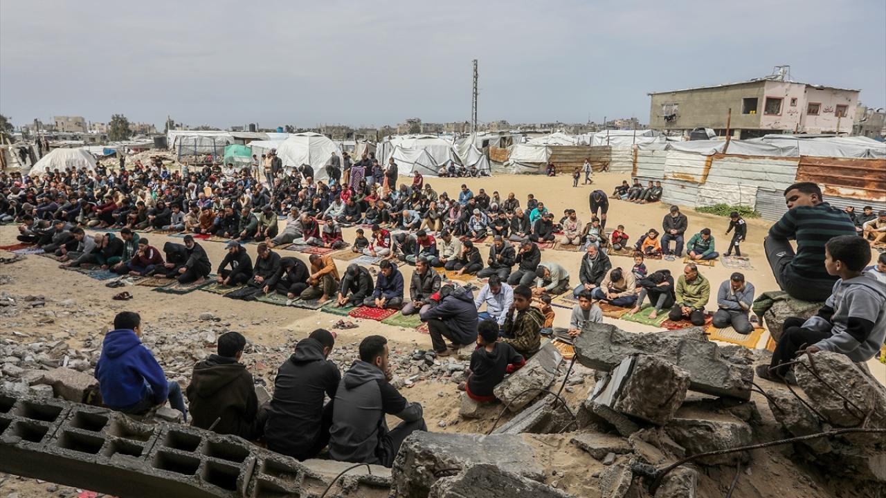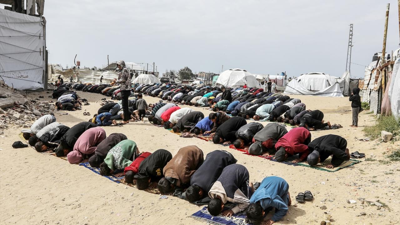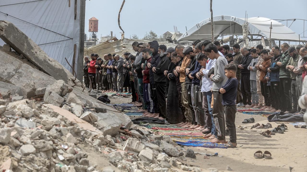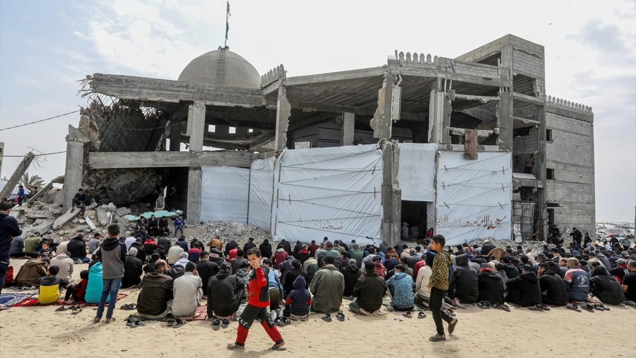 Gazze Şeridi'nin güneyindeki Han Yunus kentinde yaşayan Filistinliler, ramazan ayının son cuma namazını el-Elbani Camii enkazında ve çevresinde kıldı.