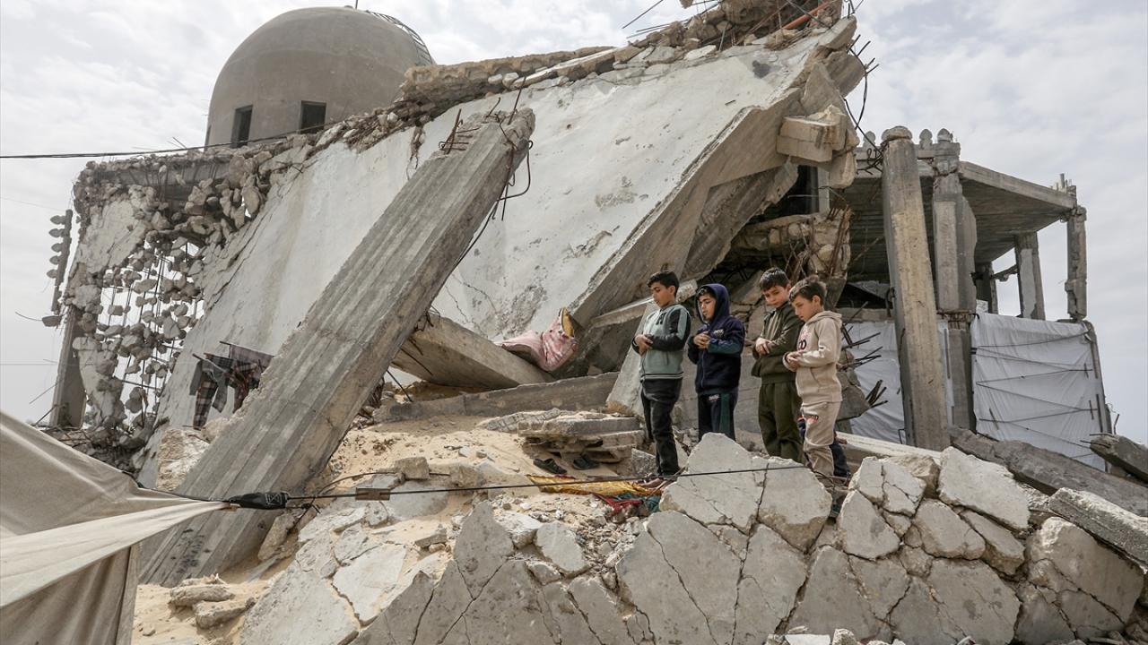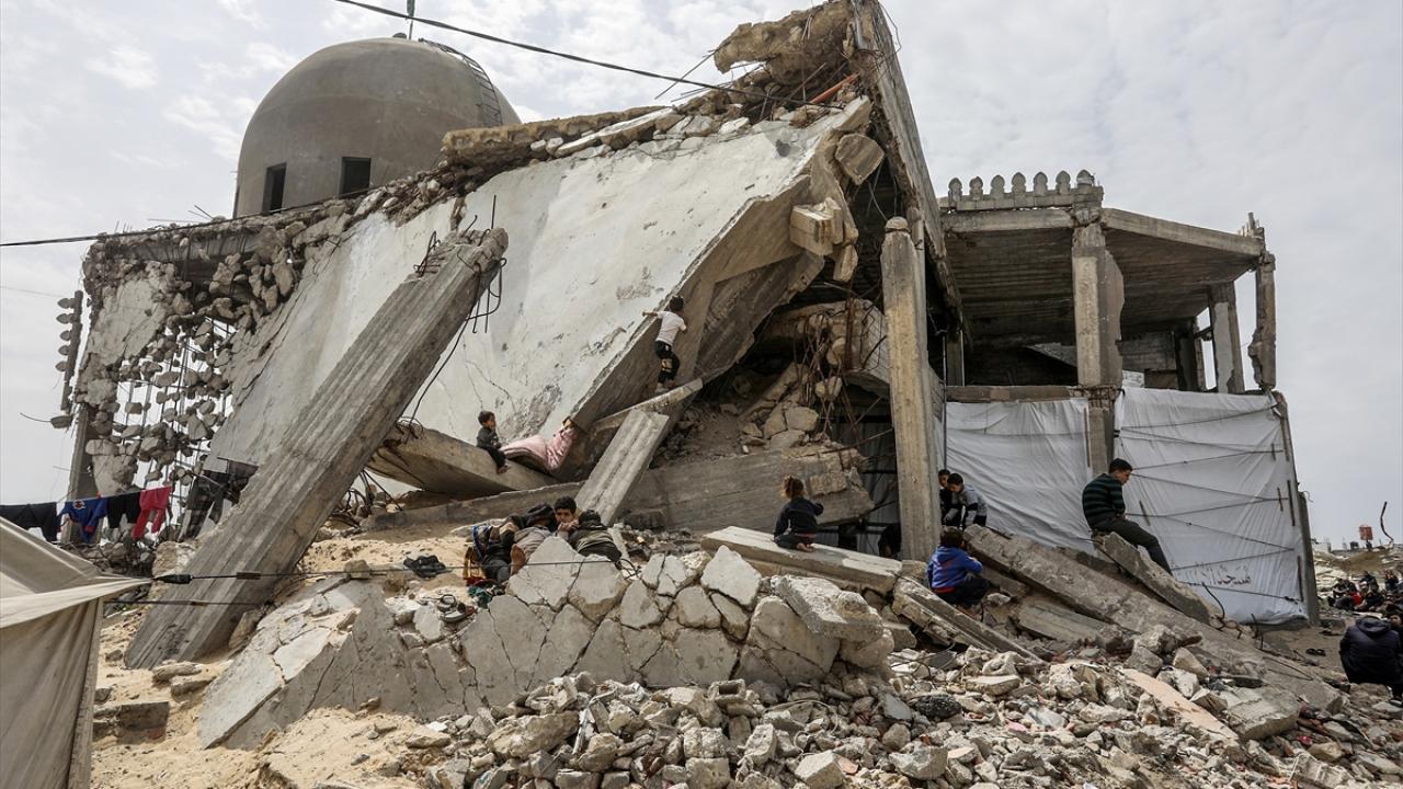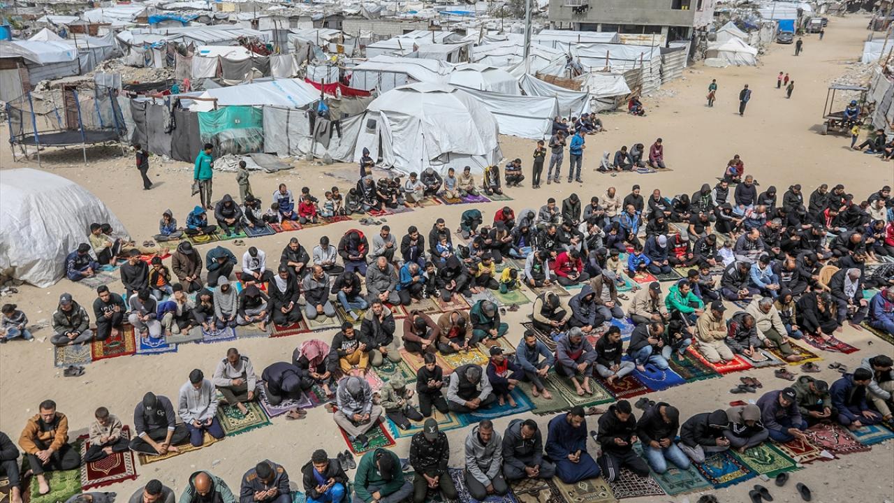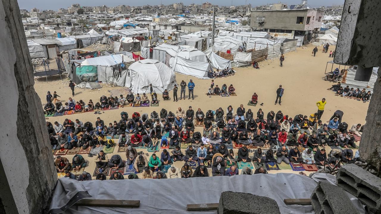 Gazze Şeridi'nin güneyindeki Han Yunus kentinde yaşayan Filistinliler, ramazan ayının son cuma namazını el-Elbani Camii enkazında ve çevresinde kıldı.