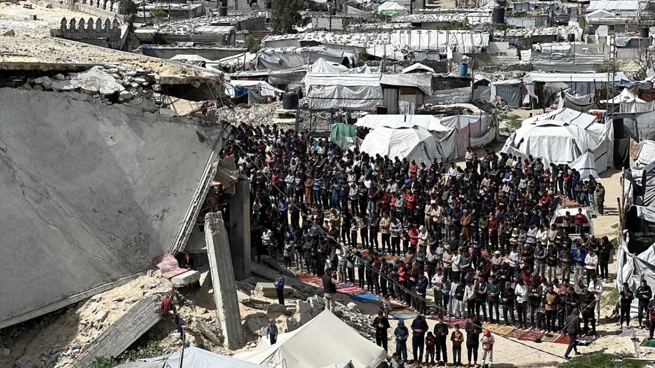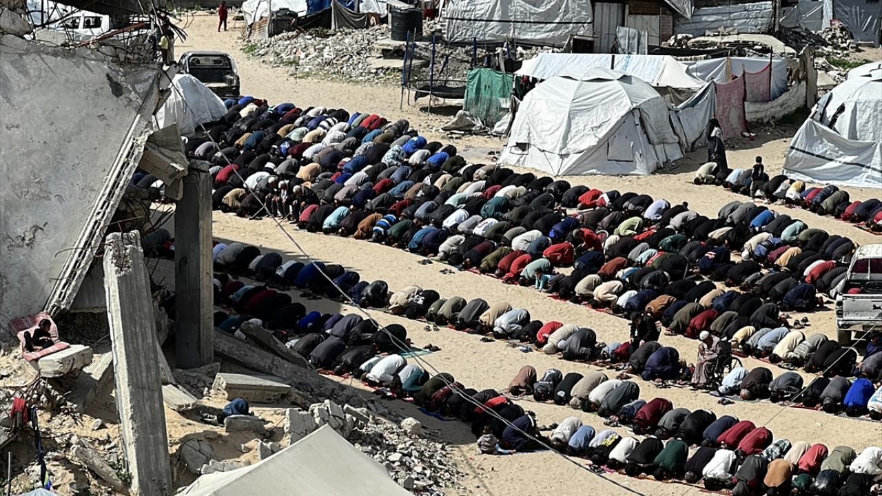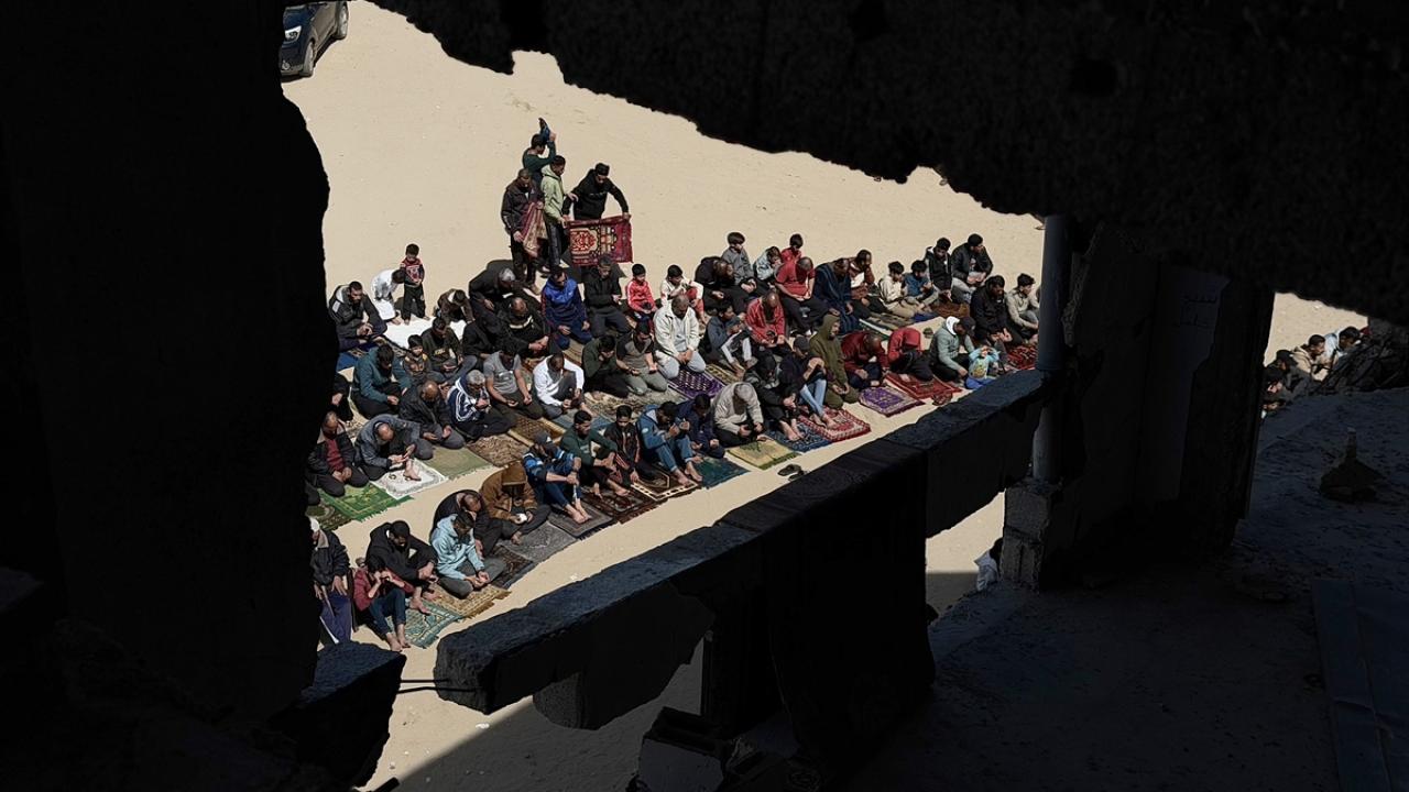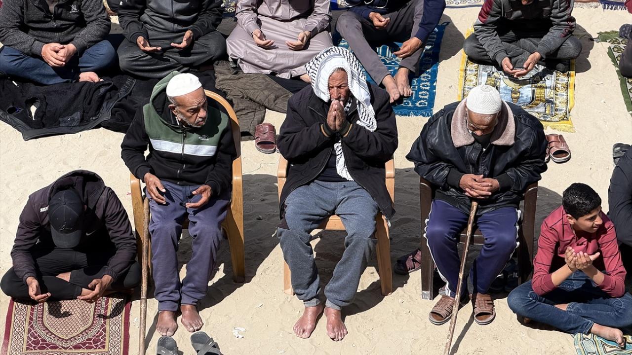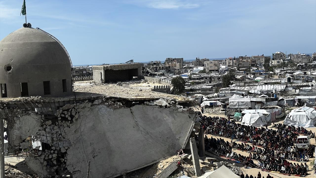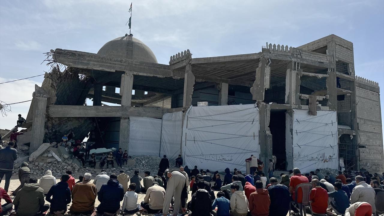 Gazze Şeridi'nin güneyindeki Han Yunus kentinde yaşayan Filistinliler, ramazan ayının üçüncü cuma namazını el-Elbani Camii enkazında ve çevresinde kıldı.