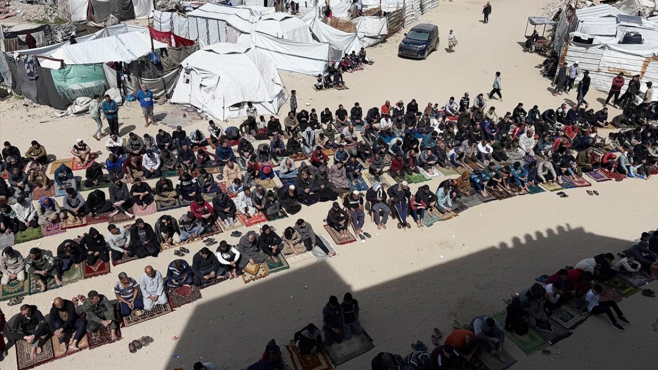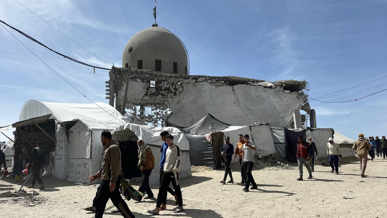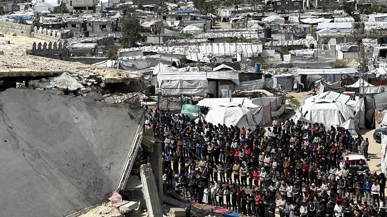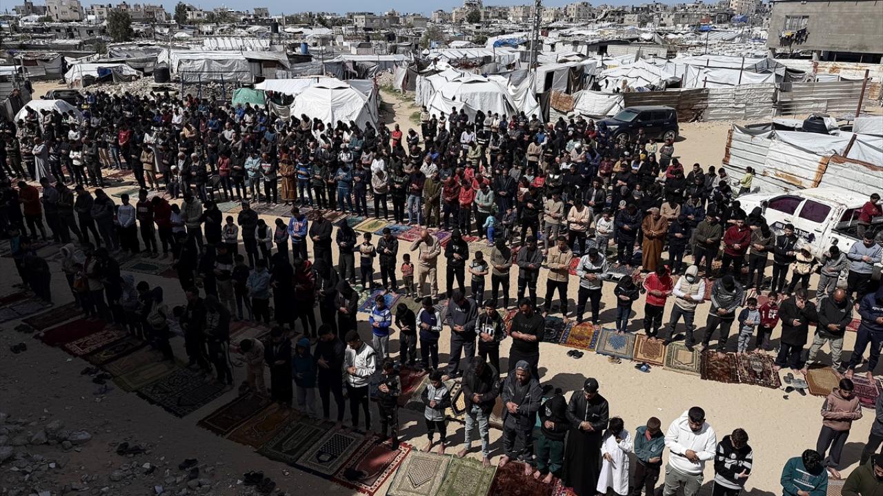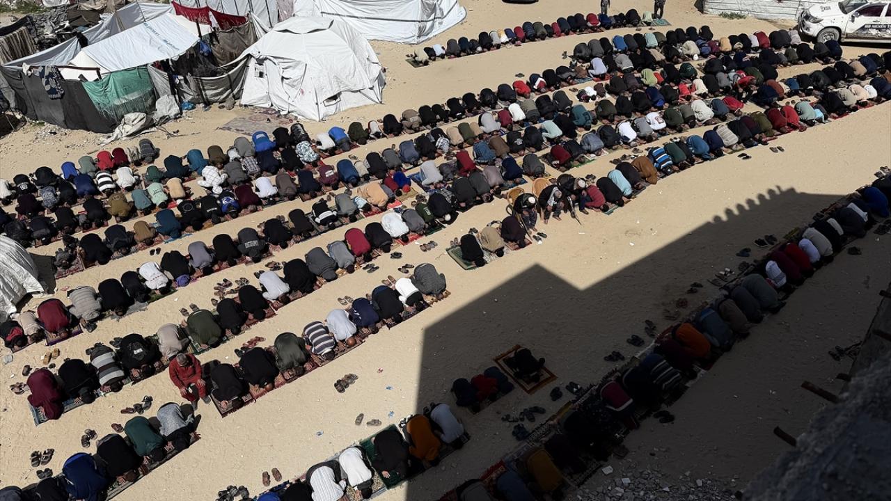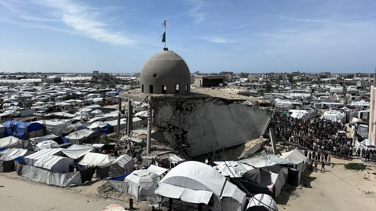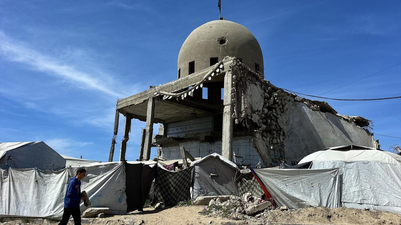 Gazze Şeridi'nin güneyindeki Han Yunus kentinde yaşayan Filistinliler, ramazan ayının üçüncü cuma namazını el-Elbani Camii enkazında ve çevresinde kıldı.
