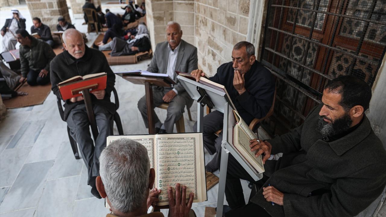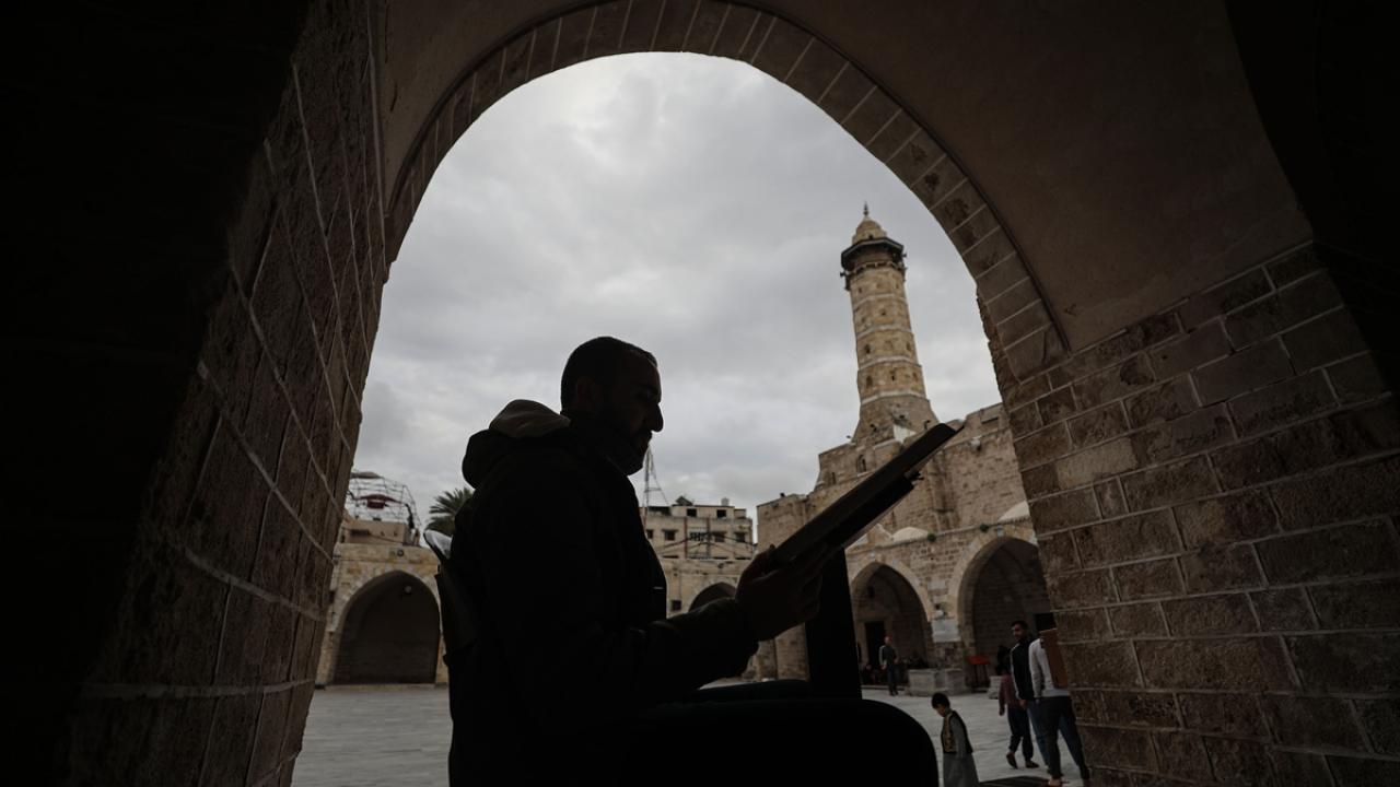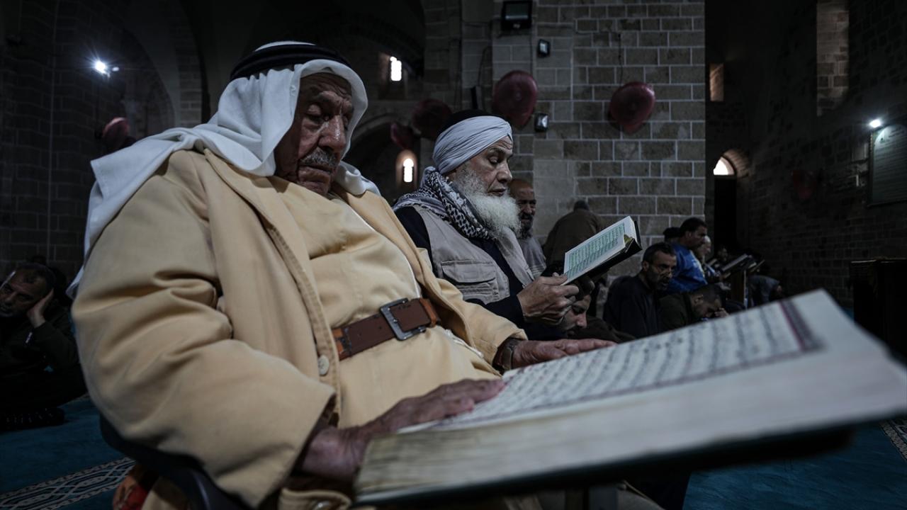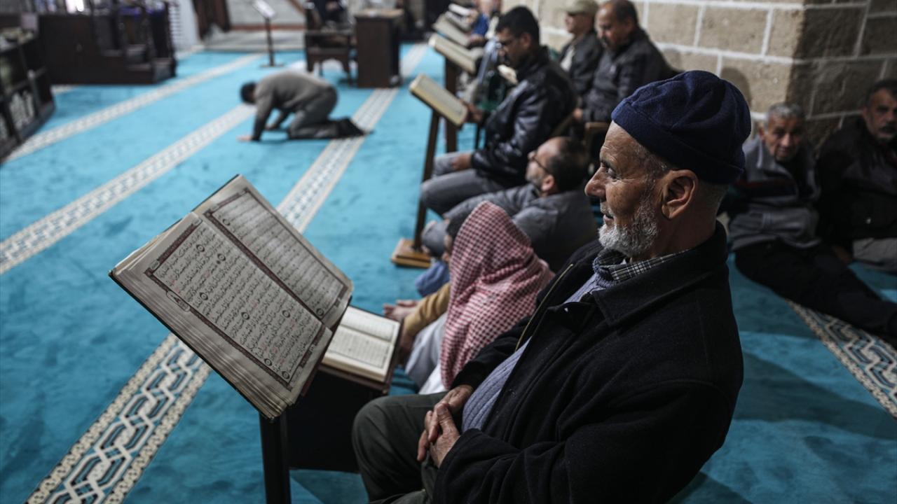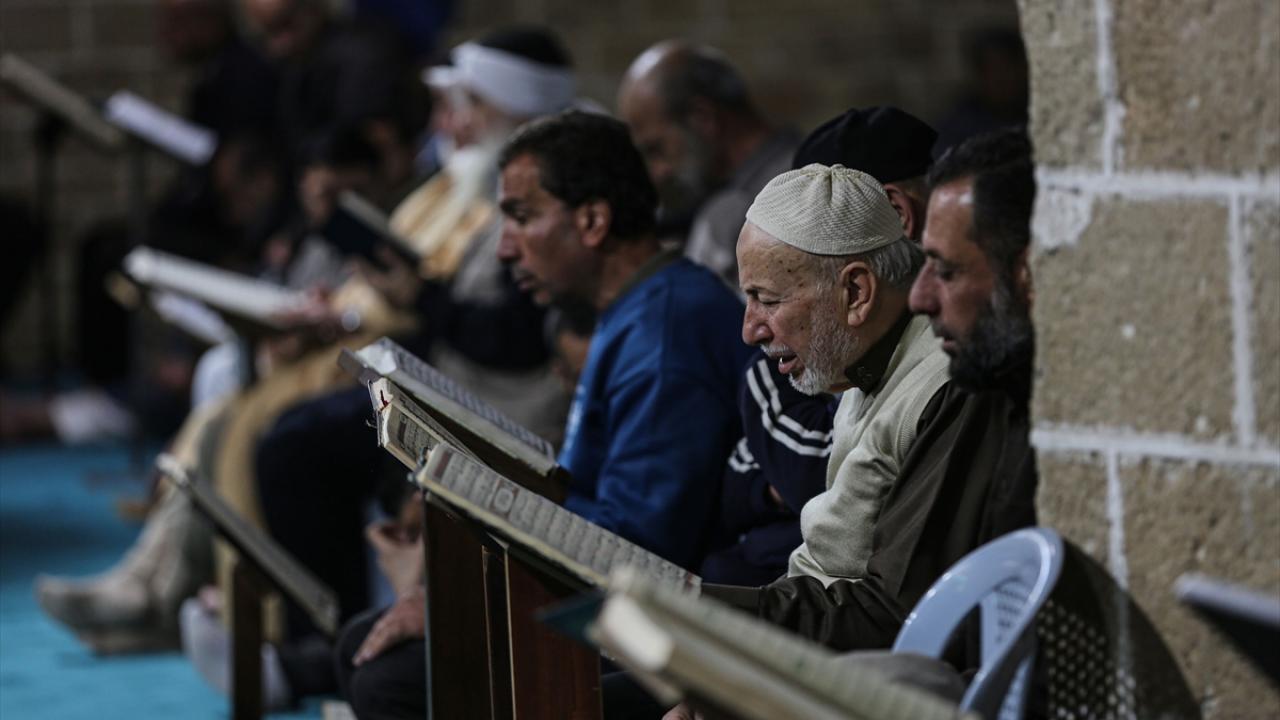 Gazzeliler, ramazan ayının üçüncü gününde kentteki Büyük Ömer Camisi'nde ibadetlerini gerçekleştiriyor.