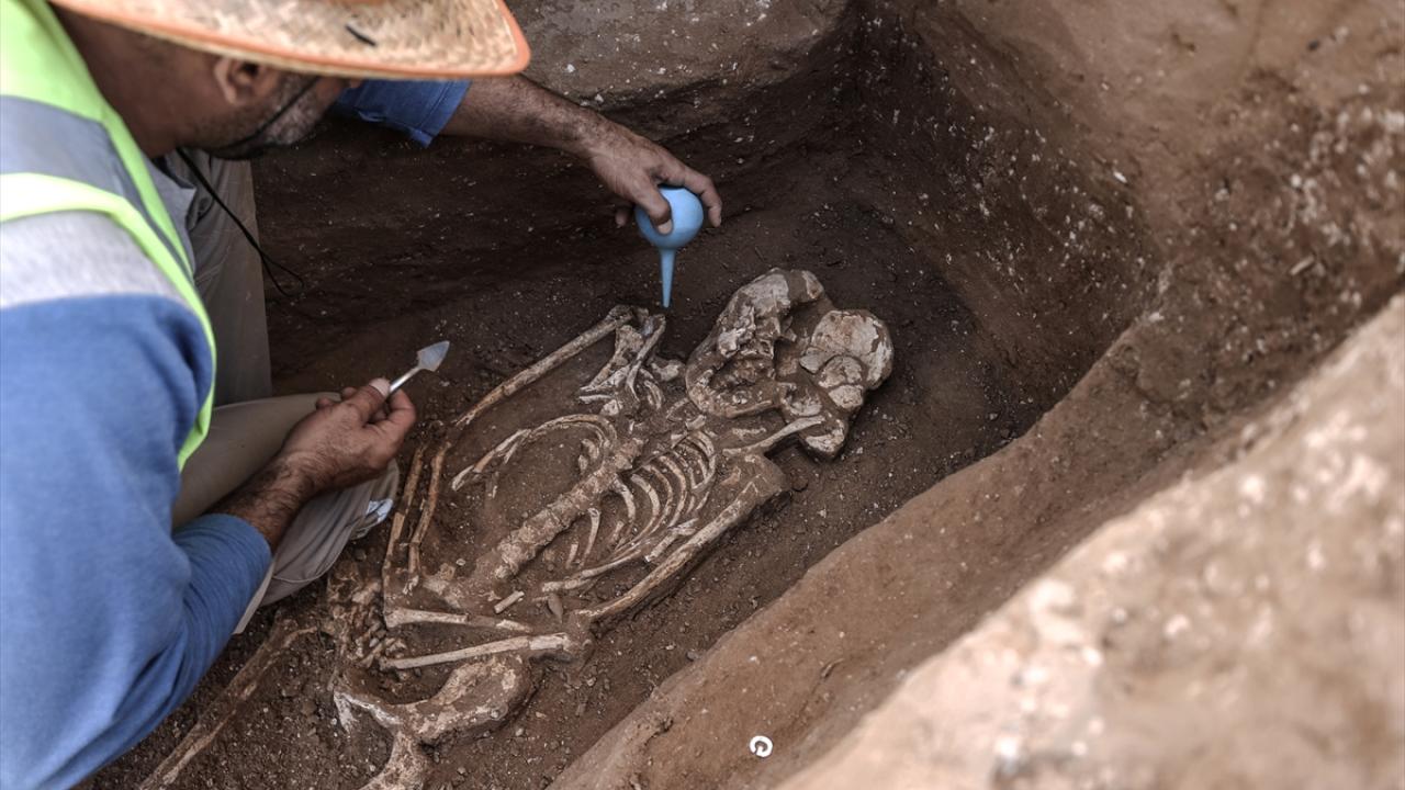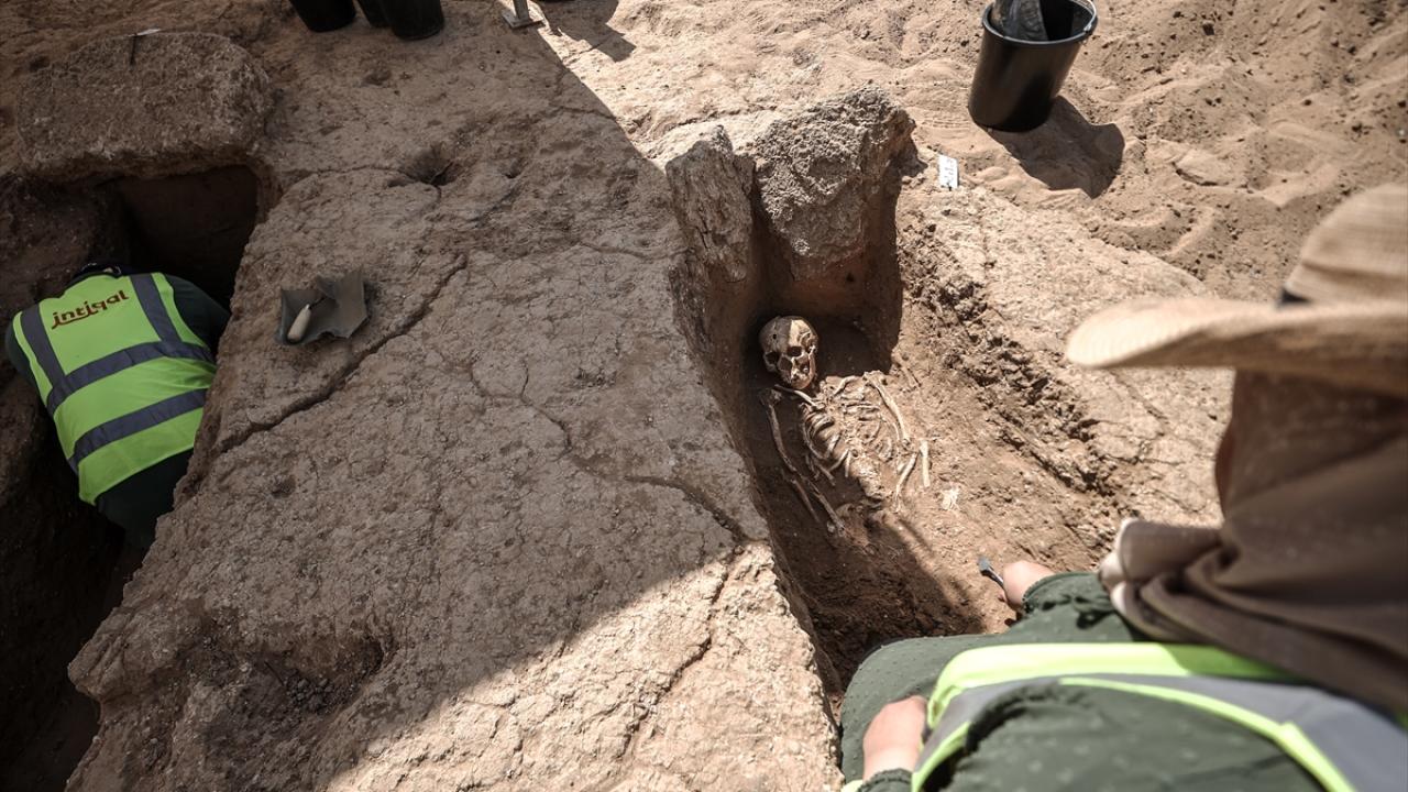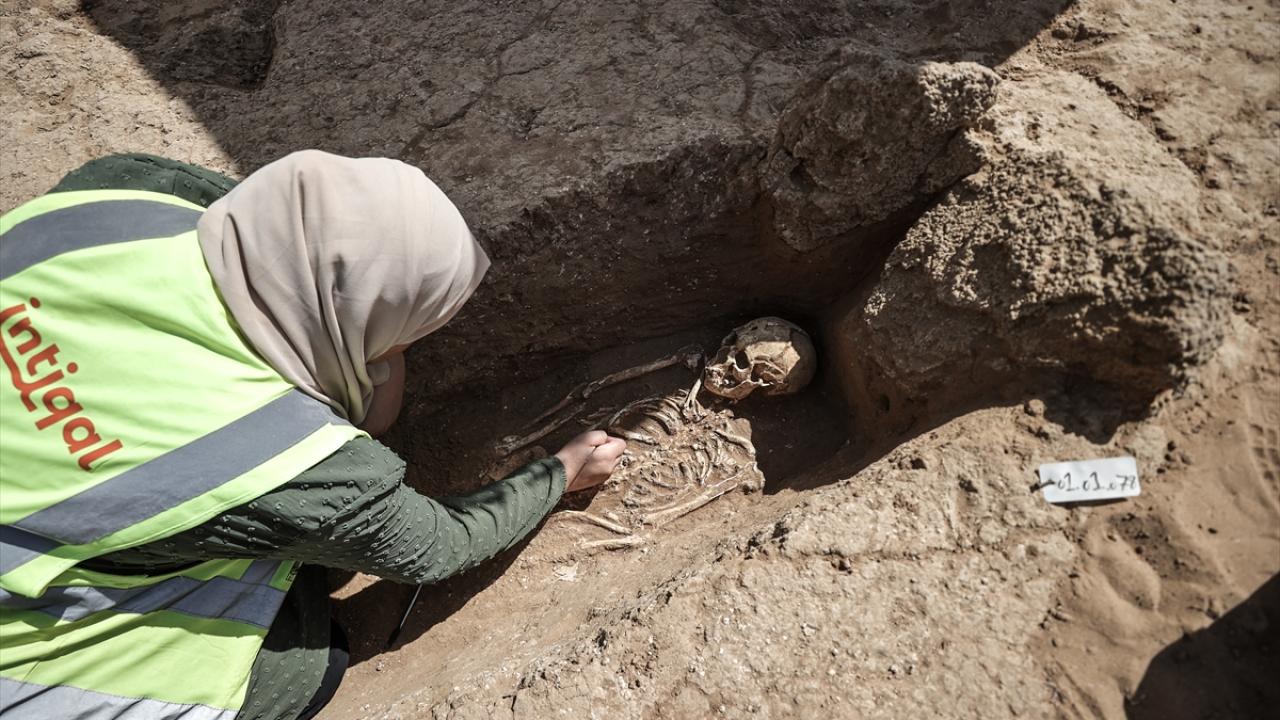 İsrail ablukası altındaki Gazze Şeridi'nin kuzeyinde 2022 yılında keşfedilen Roma dönemine ait mezarda kazı ve temizlik çalışmaları devam ediyor.