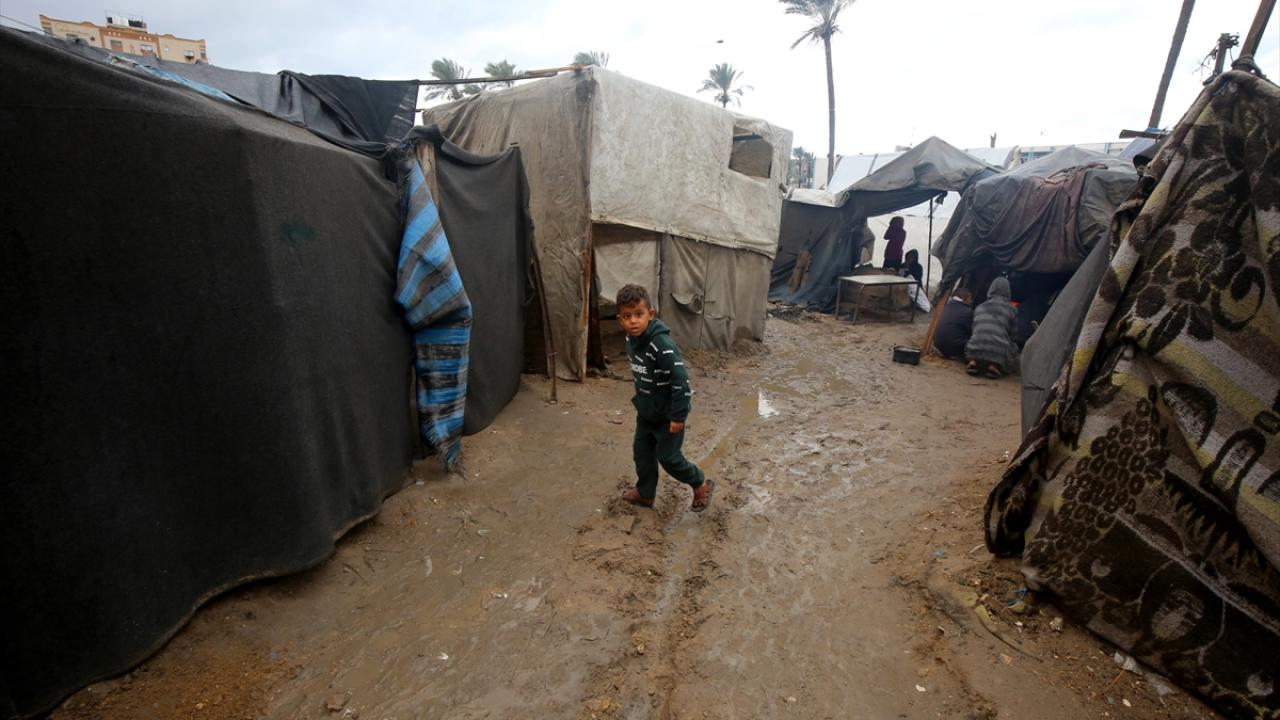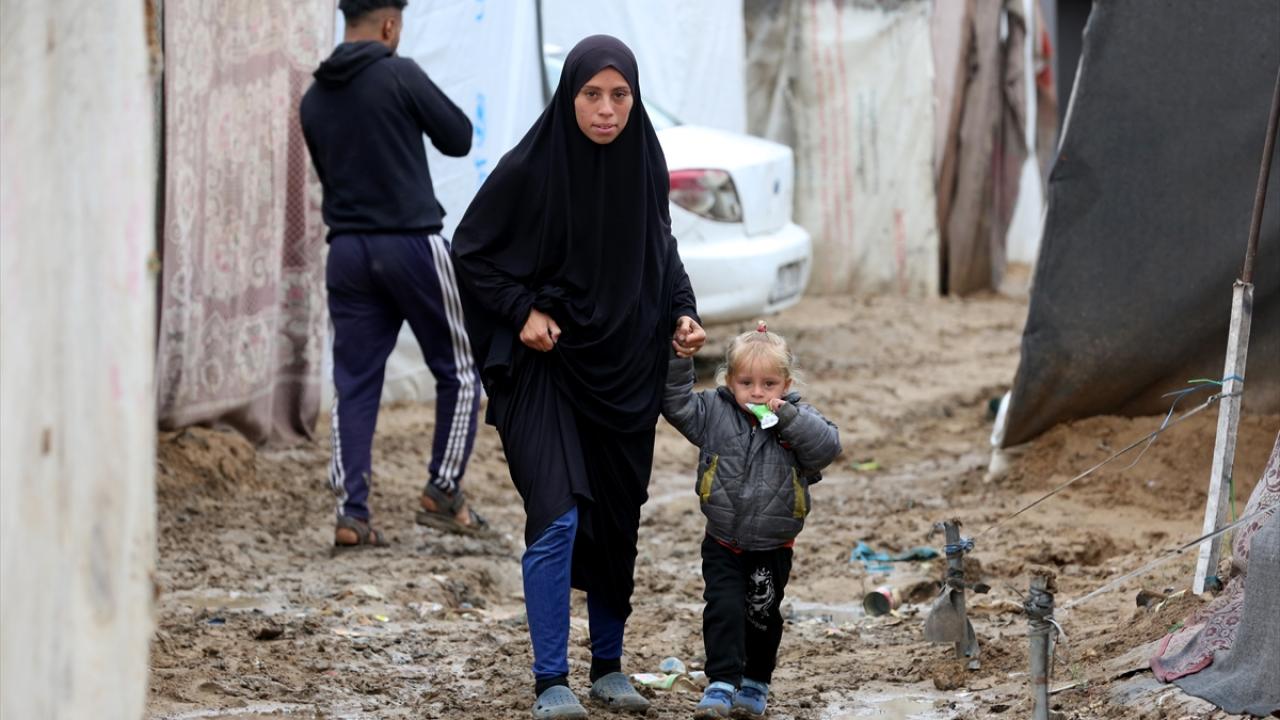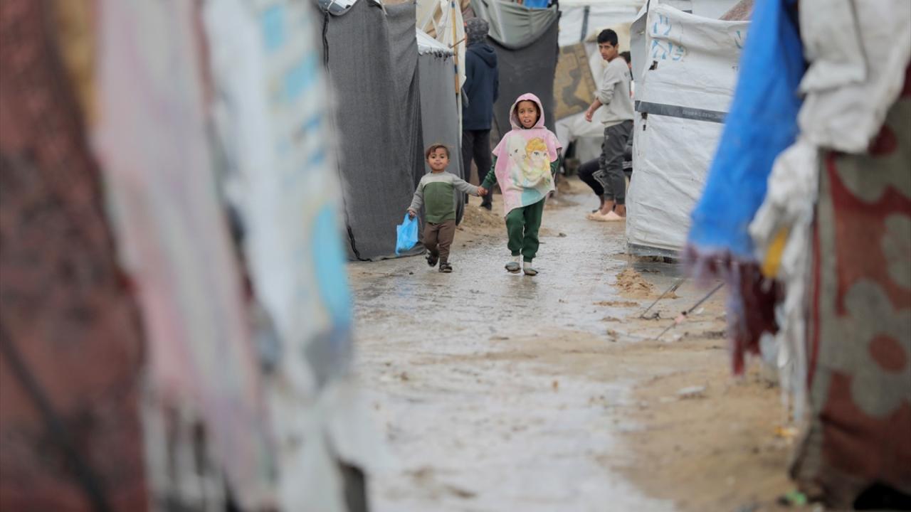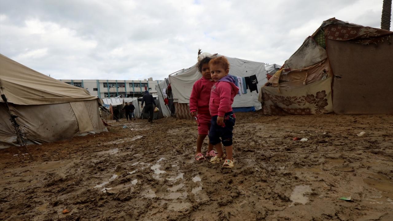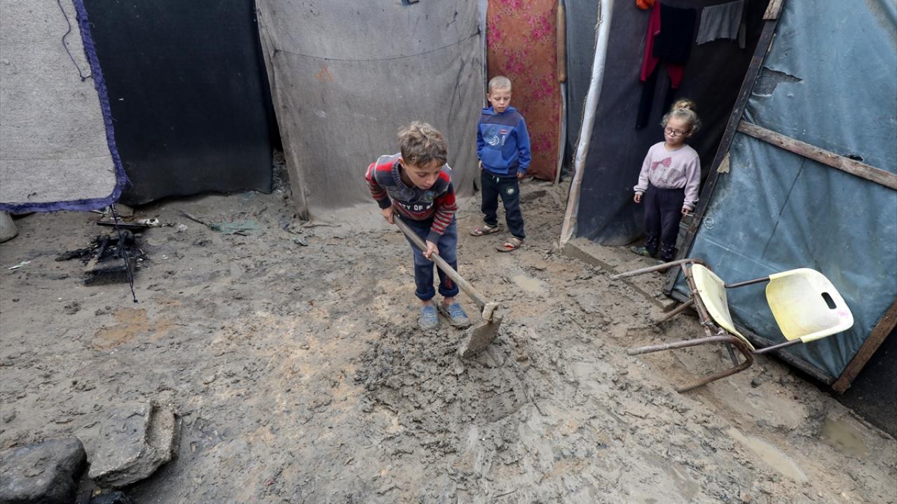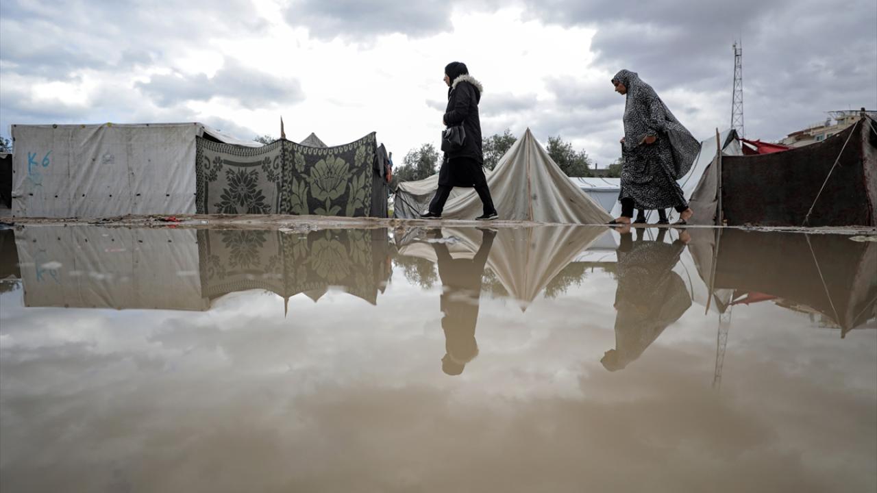 İsrail'in saldırılarını sürdürdüğü Gazze Şeridi'nde etkili olan şiddetli yağışlar, binlerce insanın sığındığı çadır kamplarında su baskınlarına yol açtı.