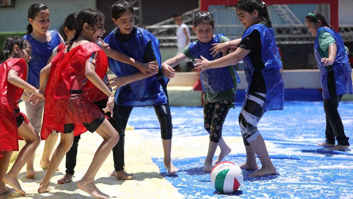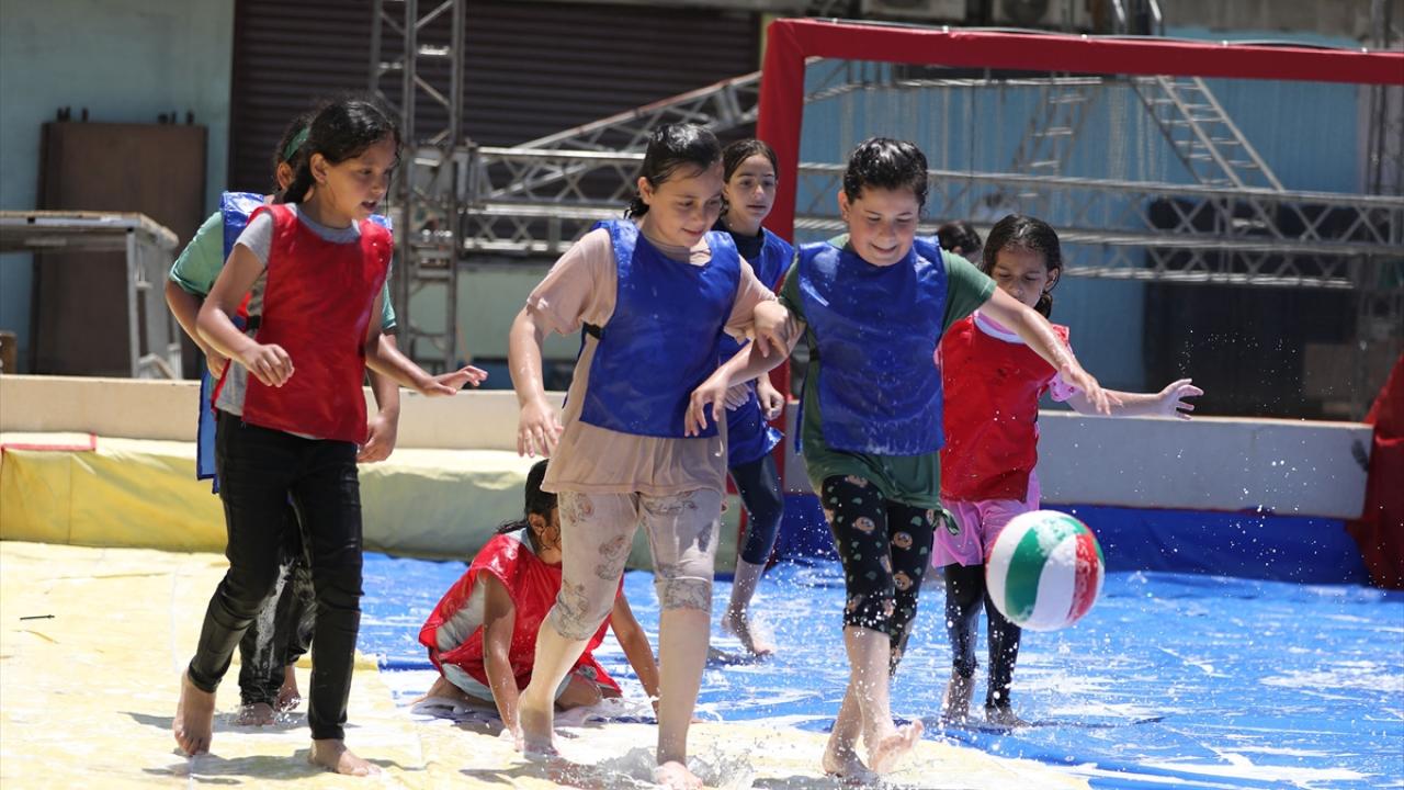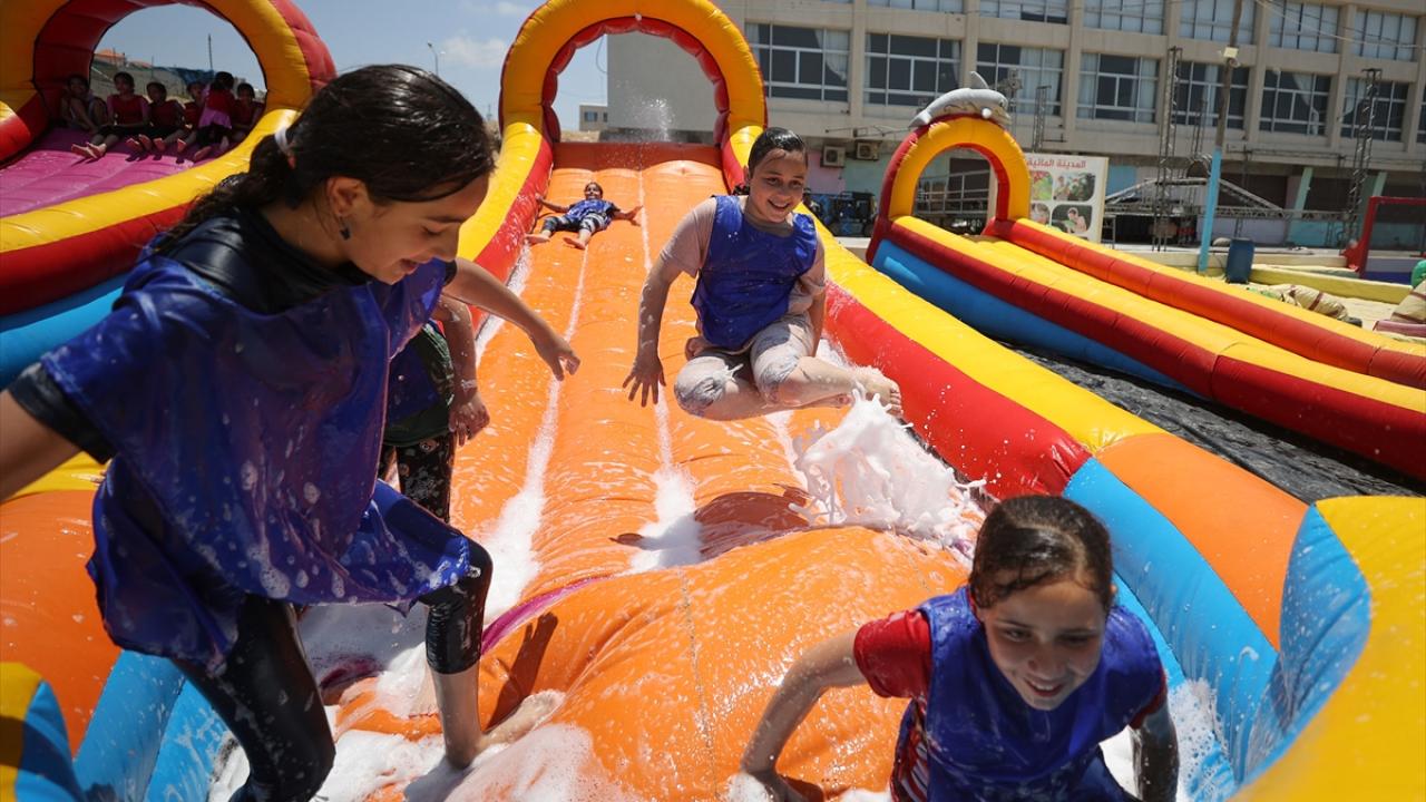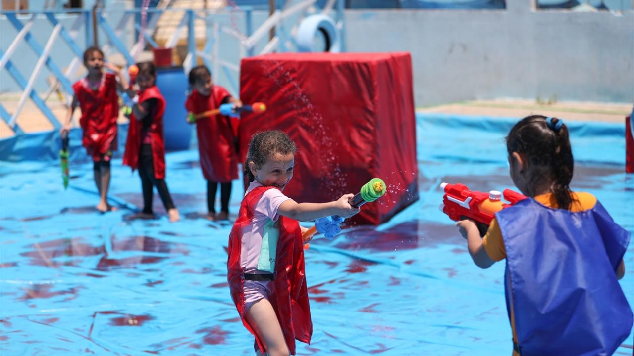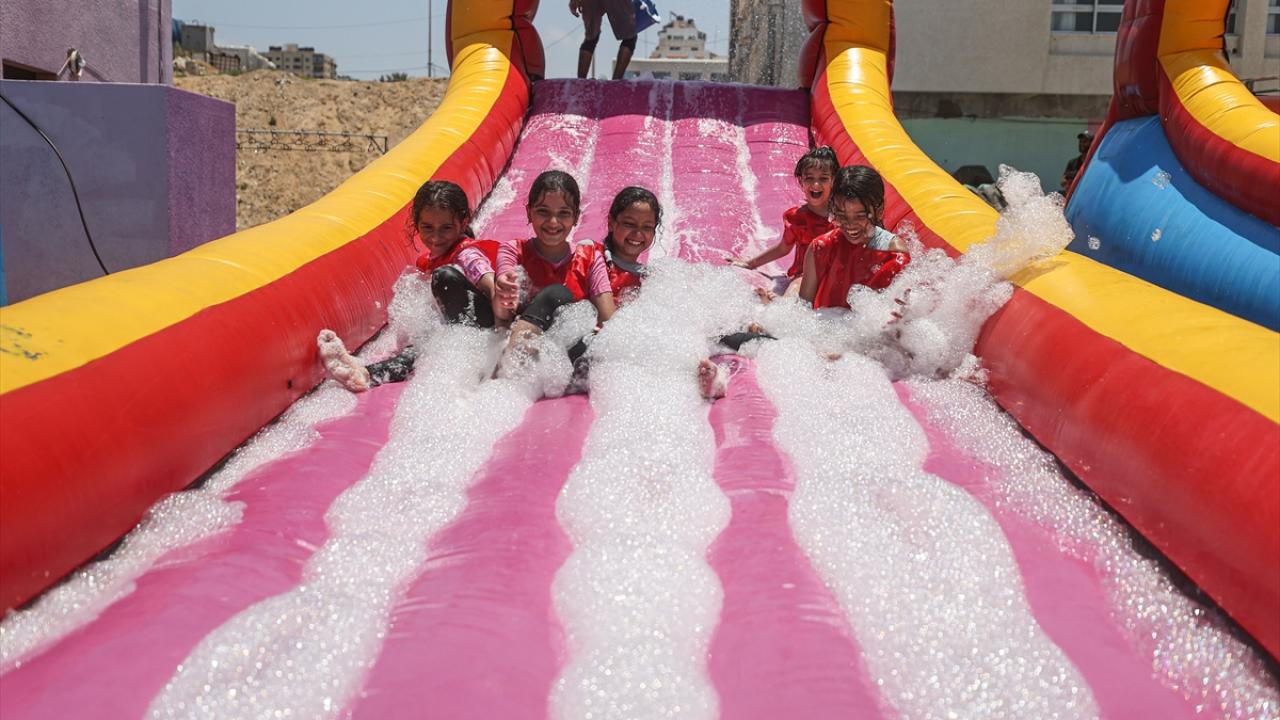 Gazze'de sıcaktan bunalan çocuklar, su parklarına akın ediyor