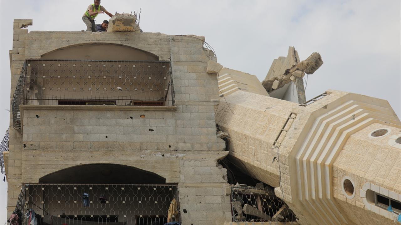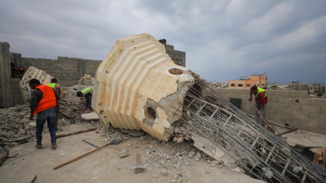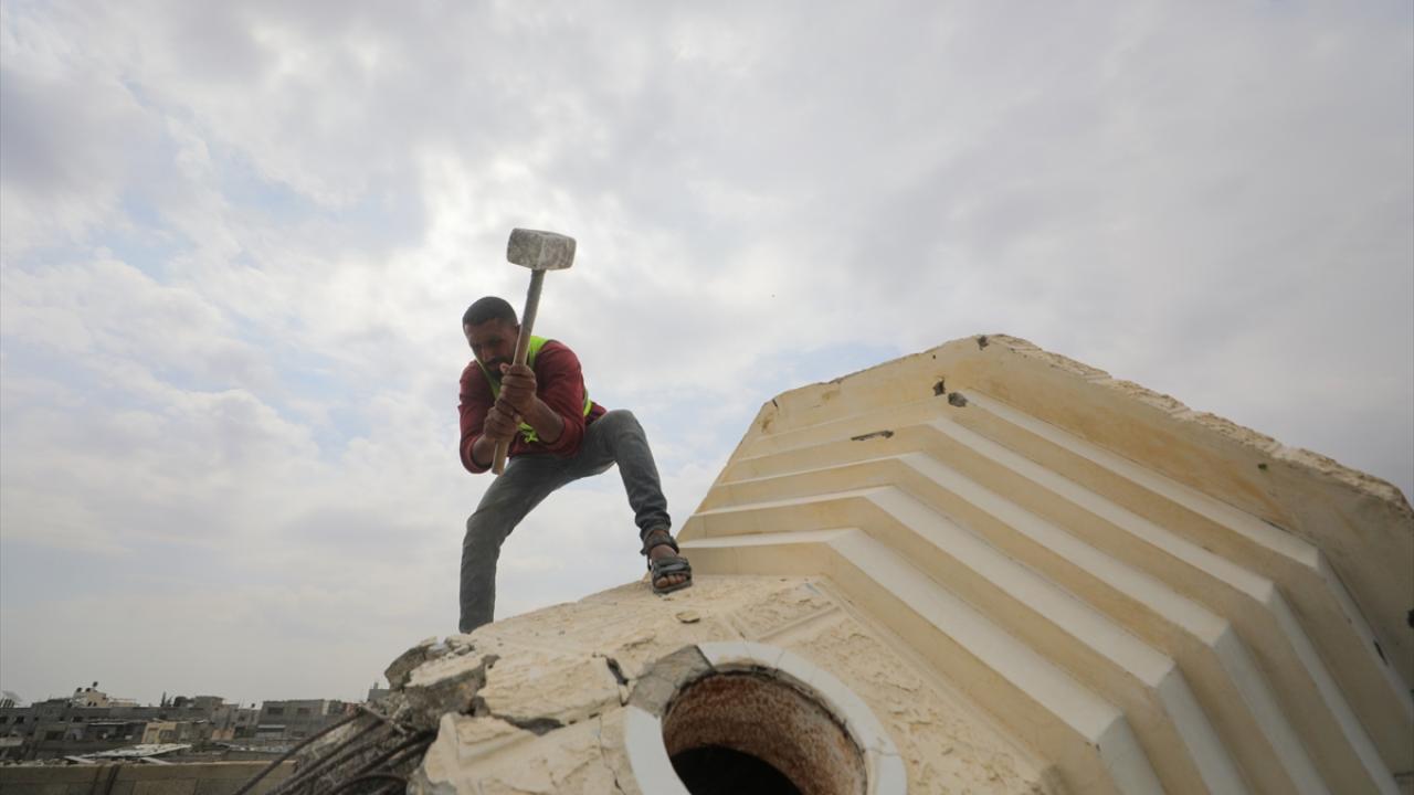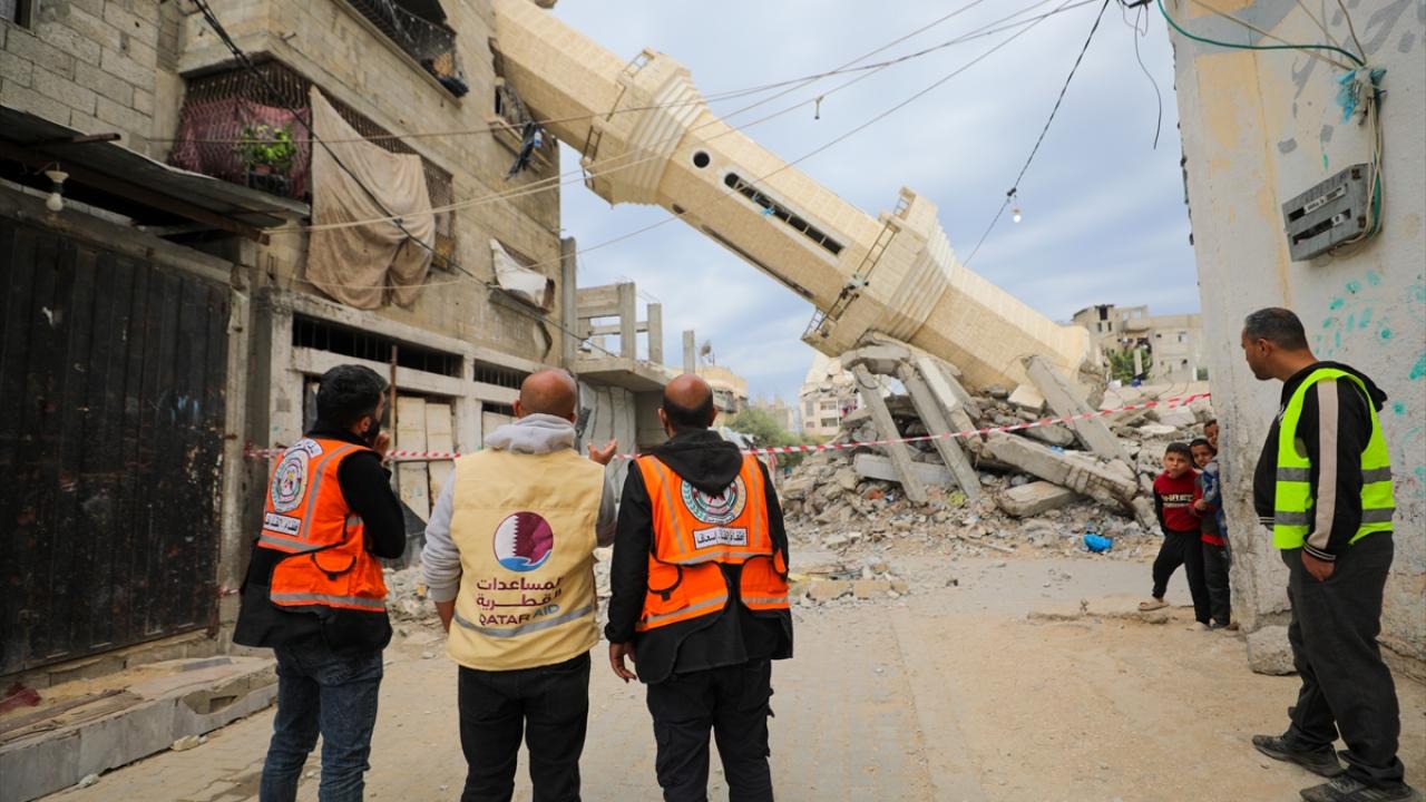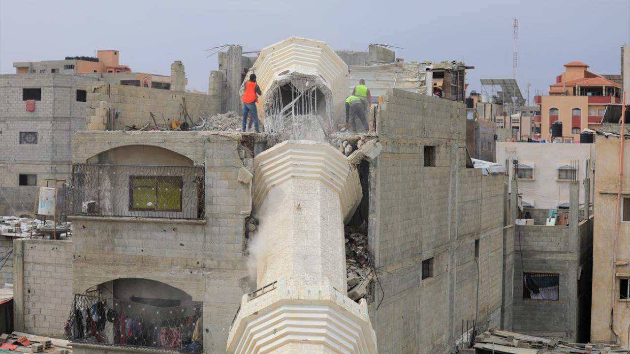 Gazze'de sivil savunma ekipleri Katar Gazze'yi Yeniden İmar Komitesi ile koordinasyonlu bir şekilde, çevredeki evlerde ağır hasara yol açan ve siviller için tehlike oluşturan Abdullah Azzam Camii minaresinde çalışma başlattı.