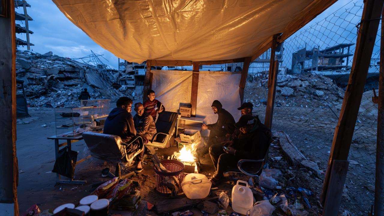 Ateşkesin ardından Gazze Şeridi'nin kuzeyinde bulunan Cibaliye Mülteci Kampı'ndaki Filistinliler, yıkılan binaların arasına kurdukları çadırlarda yaşamlarını sürdürmeye devam ediyor.