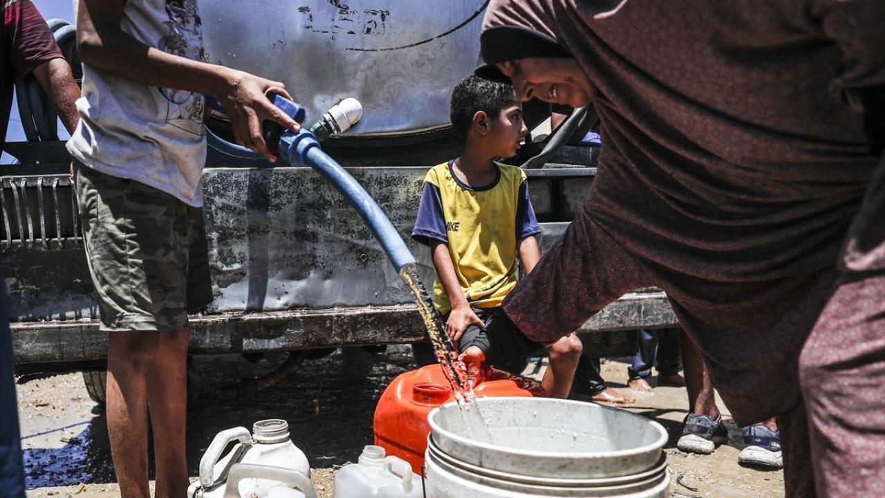 İsrail saldırıları sonucu altyapısı büyük ölçüde zarar gören Gazze kentinde, Filistinliler temiz içme suyuna ulaşmakta güçlük çekiyor.