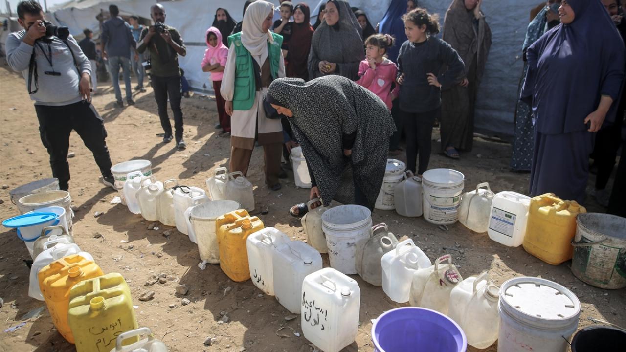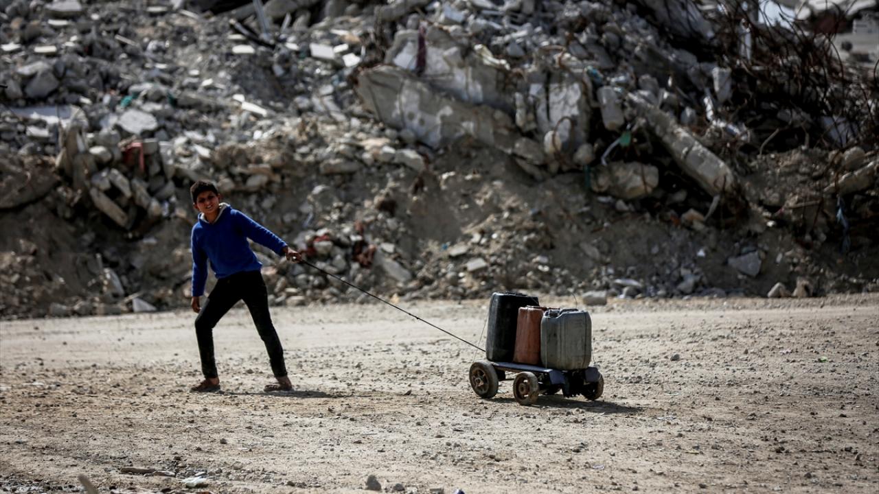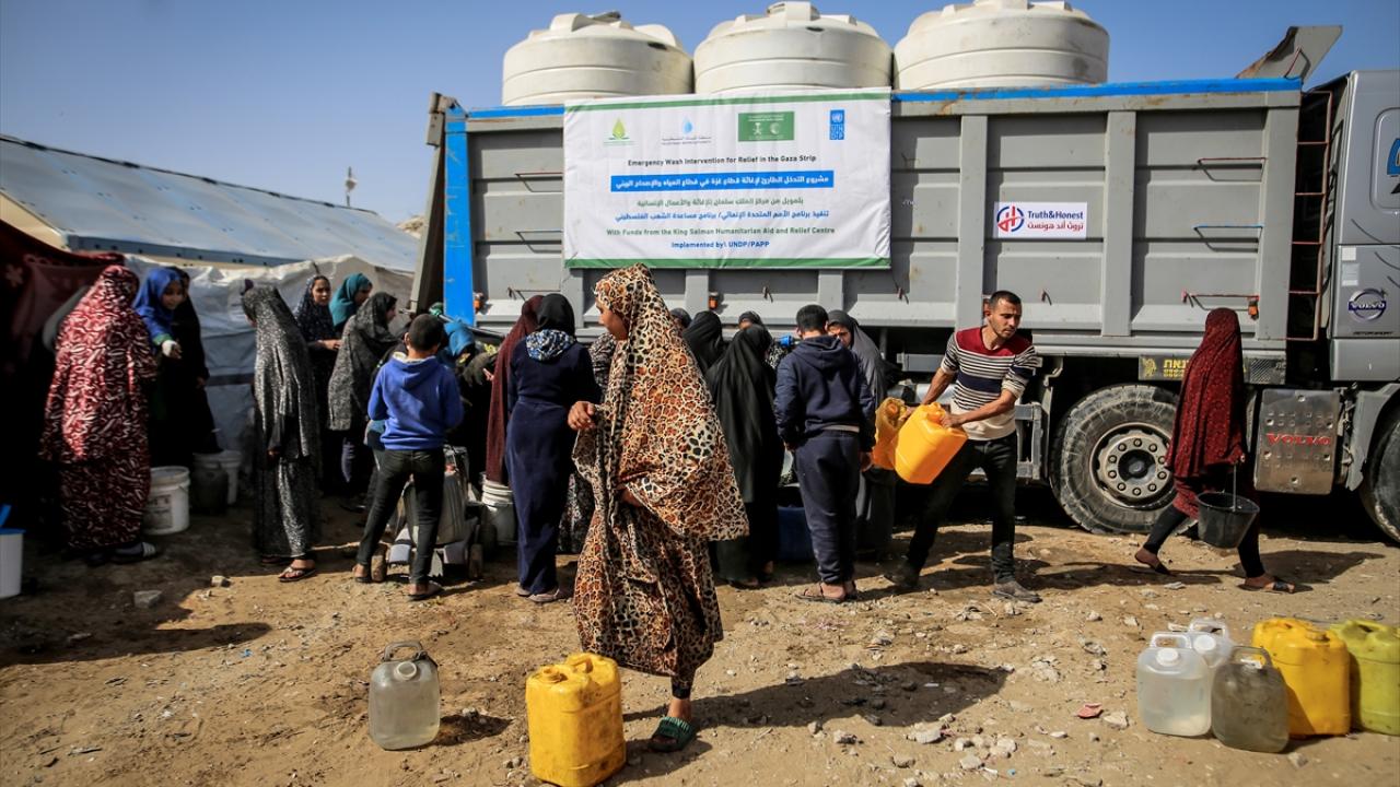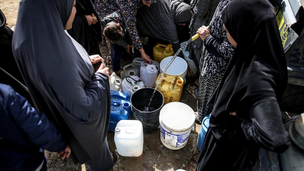 İsrail saldırıları sonucu altyapının ağır hasar görmesi sebebiyle su krizinin yaşandığı Gazze Şeridi'nin kuzeyindeki Gazze kentinde yaşayan Filistinliler, tankerlerin dağıttığı suları bidonlara doldurarak yaşam alanlarına taşıdı.