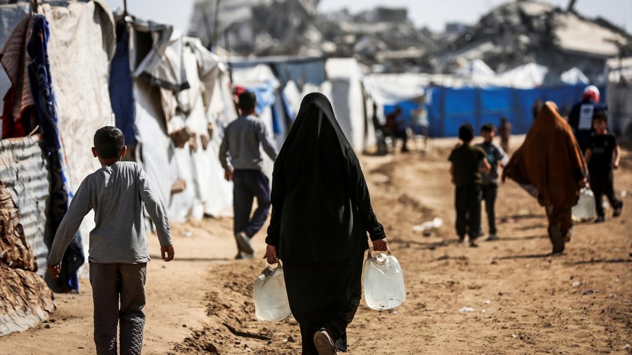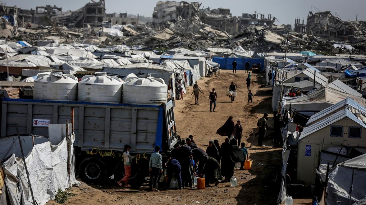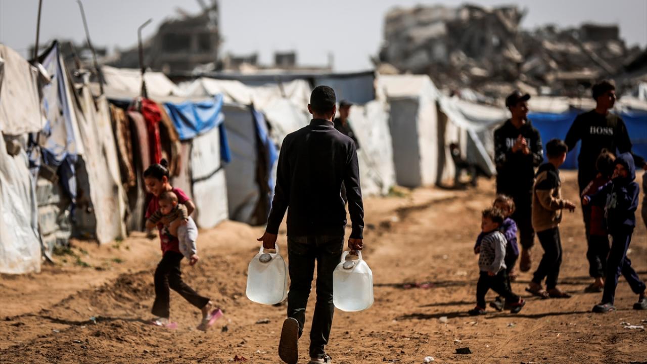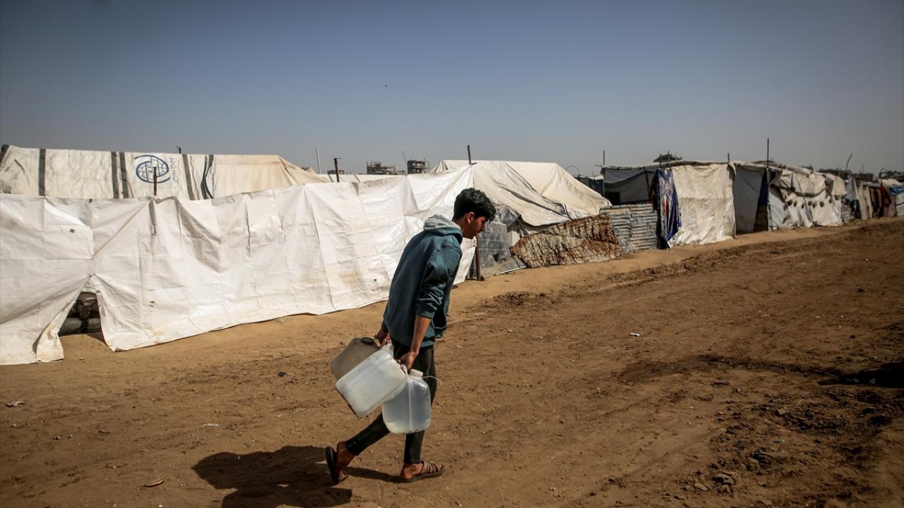 İsrail saldırıları sonucu altyapının ağır hasar görmesi sebebiyle su krizinin yaşandığı Gazze Şeridi'nin kuzeyindeki Gazze kentinde yaşayan Filistinliler, tankerlerin dağıttığı suları bidonlara doldurarak yaşam alanlarına taşıdı.
