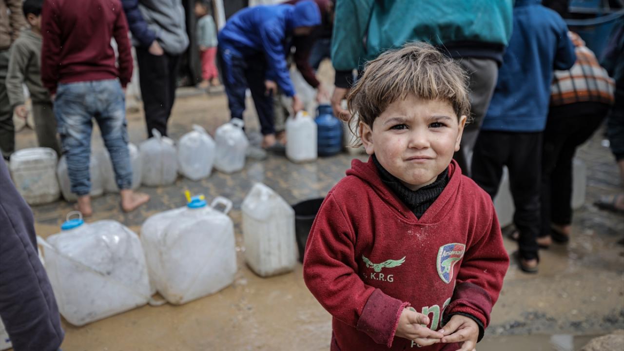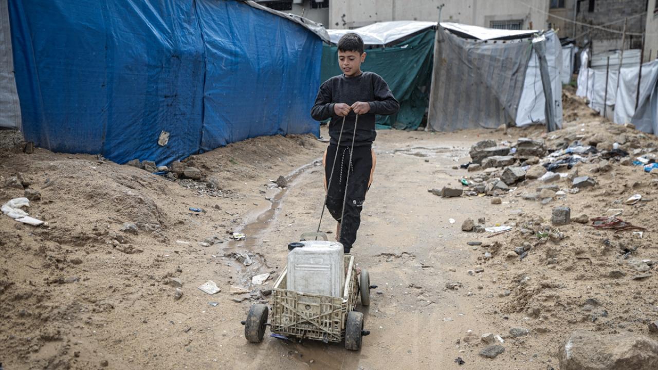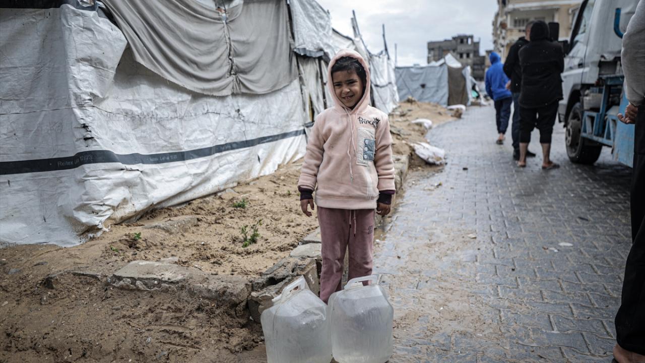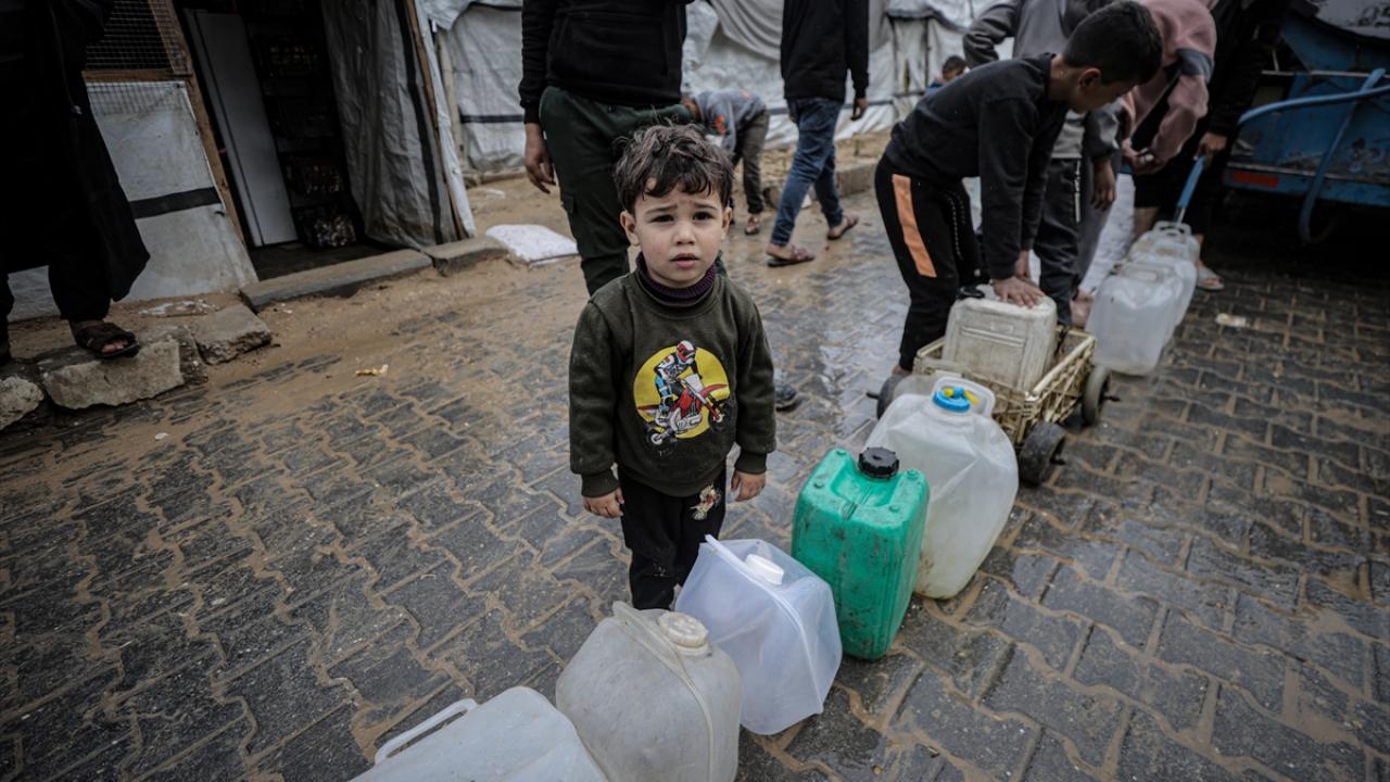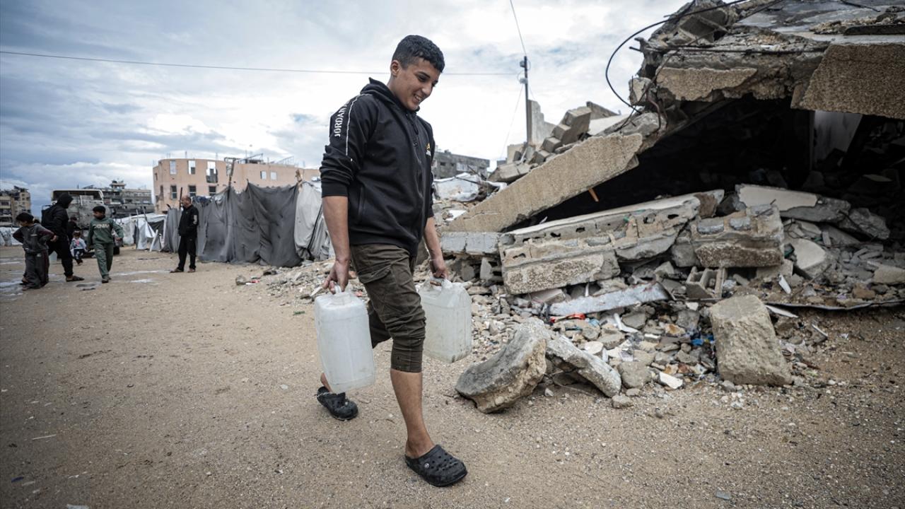İsrail saldırıları sonucu altyapının ağır hasar görmesi sebebiyle su krizinin yaşandığı Gazze kentinin Rimal Mahallesi’nde Filistinliler, tankerlerin dağıttığı suları bidonlara doldurarak yaşam alanlarına taşıdı.