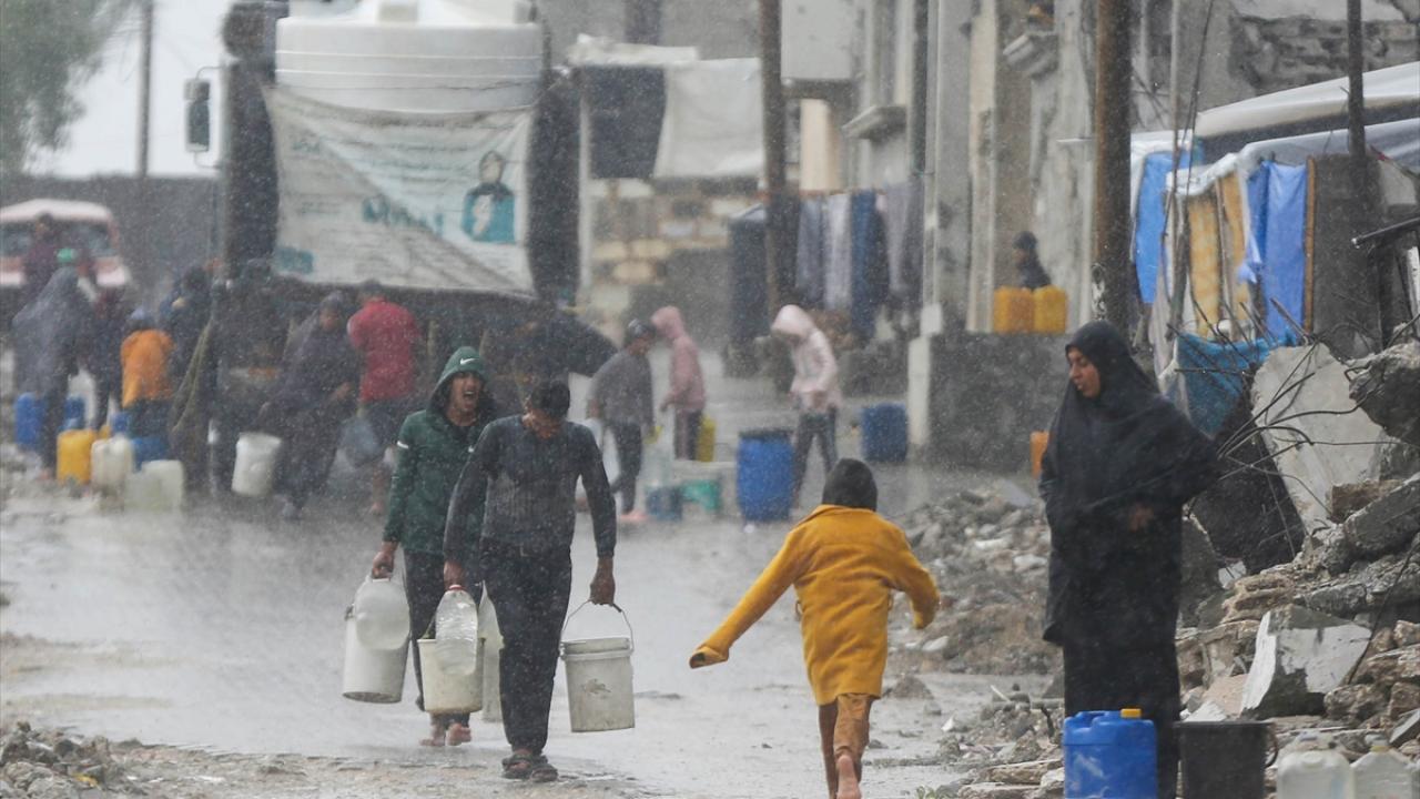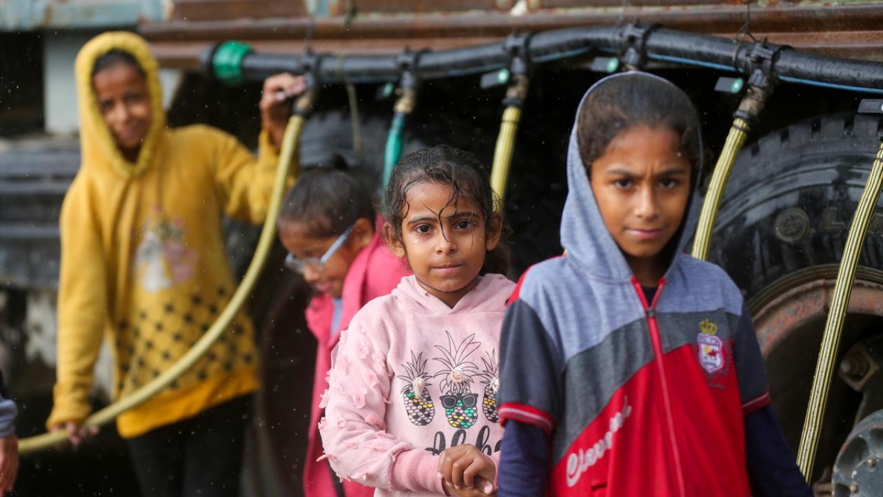 İsrail saldırıları sonucu altyapının ağır hasar gördüğü ve su krizinin yaşandığı Gazze Şeridi’nin orta kesimindeki Deyr Belah kentinde yaşayan Filistinliler, su tankerlerinin dağıttığı suları bidonlara doldurarak yaşam alanlarına taşıdı.